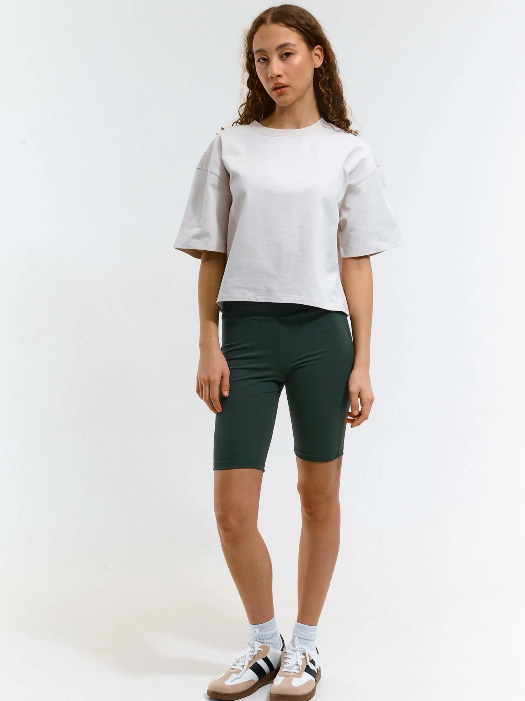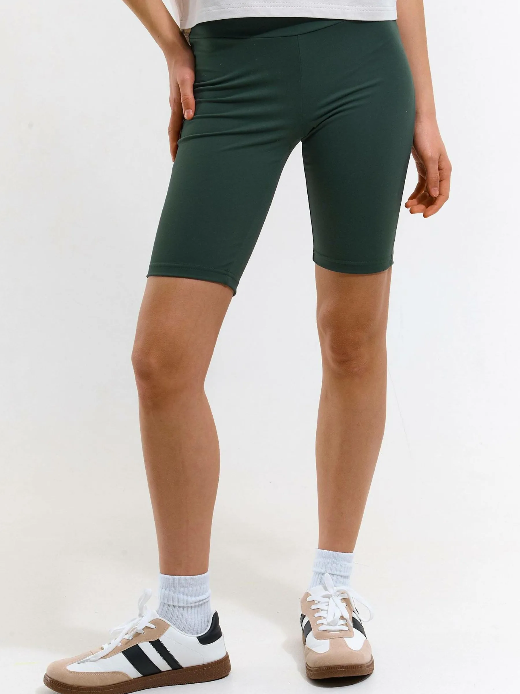 Kolor: zielonyKrój: bikerTyp: spodenkiDługość: krótkiPattern style: pojedynczy kolorMateriał: syntetycznePłeć: k…