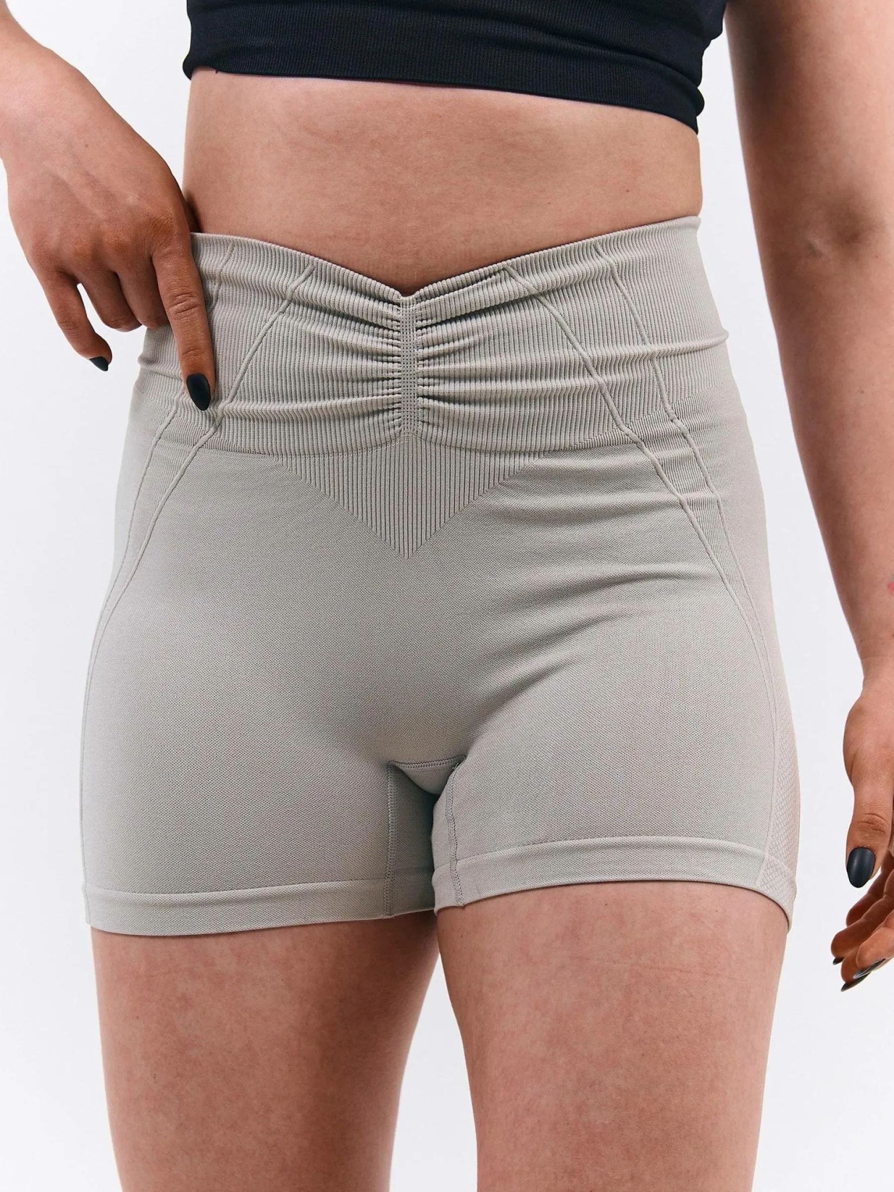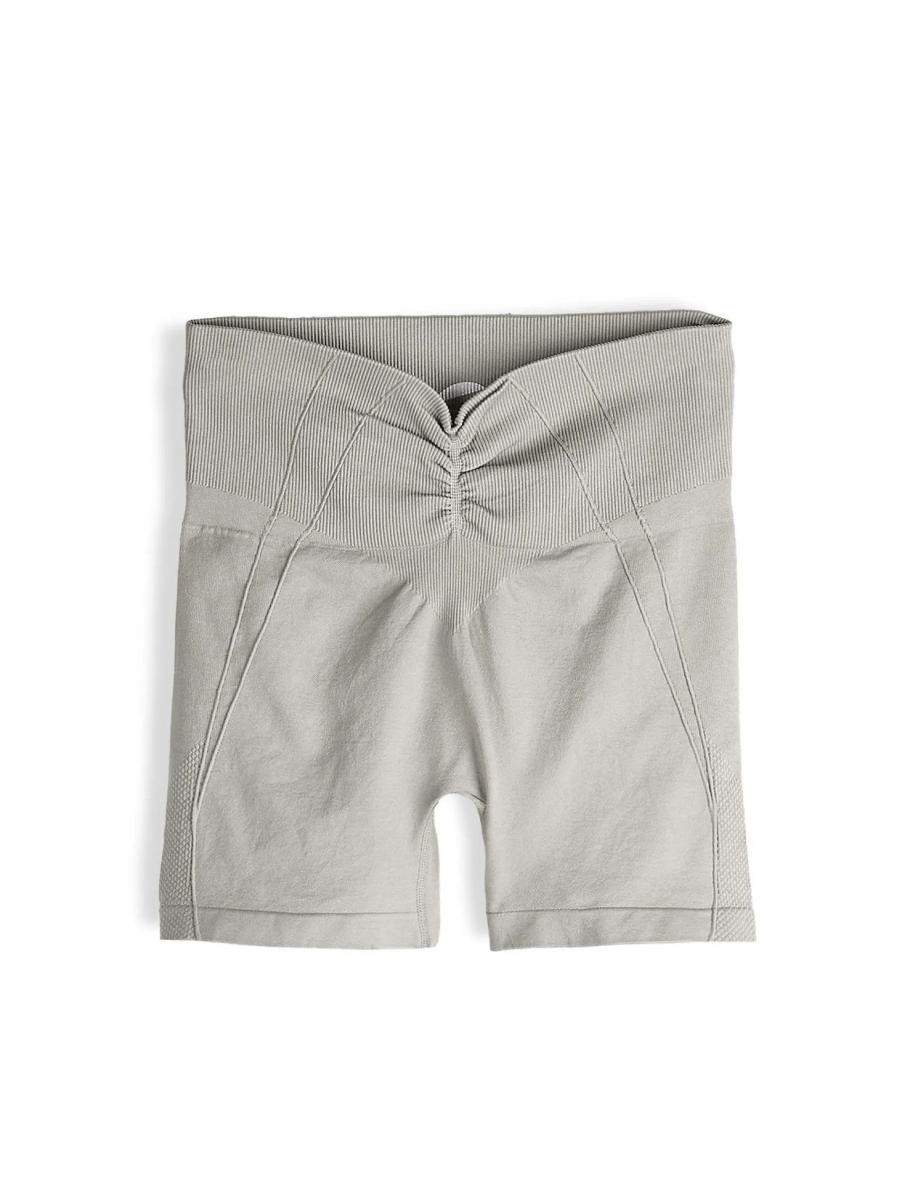 Kolor: szaryKrój: push-up, bikerTyp: spodenkiDługość: krótkiPattern style: pojedynczy kolorDetal: z elastyczną opa…