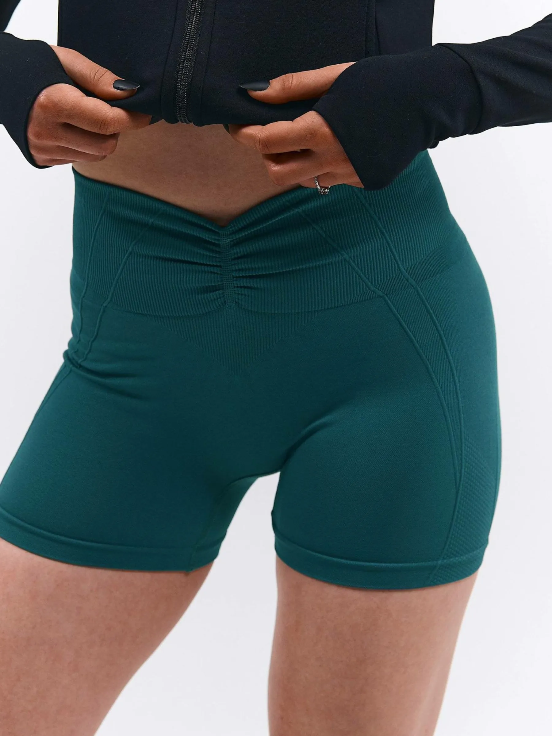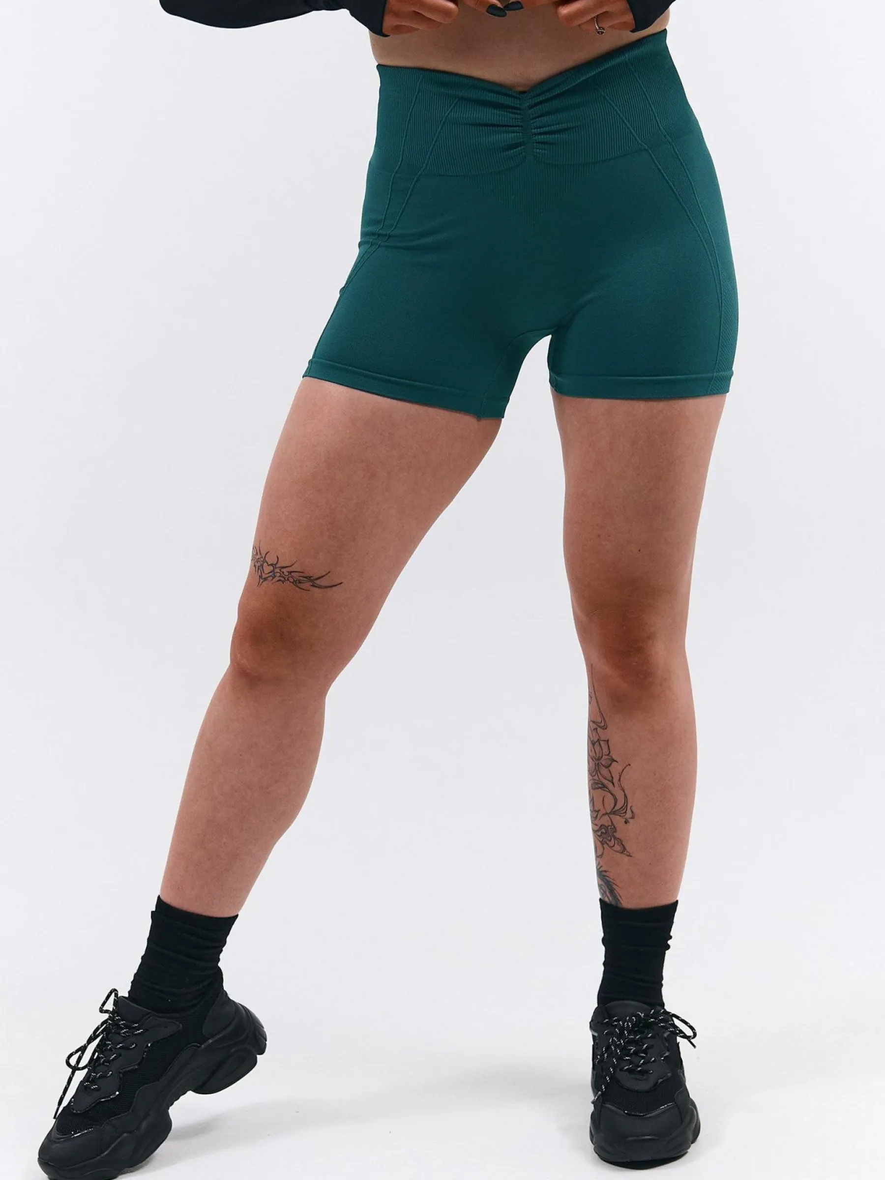Kolor: zielonyKrój: push-up, bikerTyp: spodenkiDługość: krótkiPattern style: pojedynczy kolorDetal: z elastyczną o…