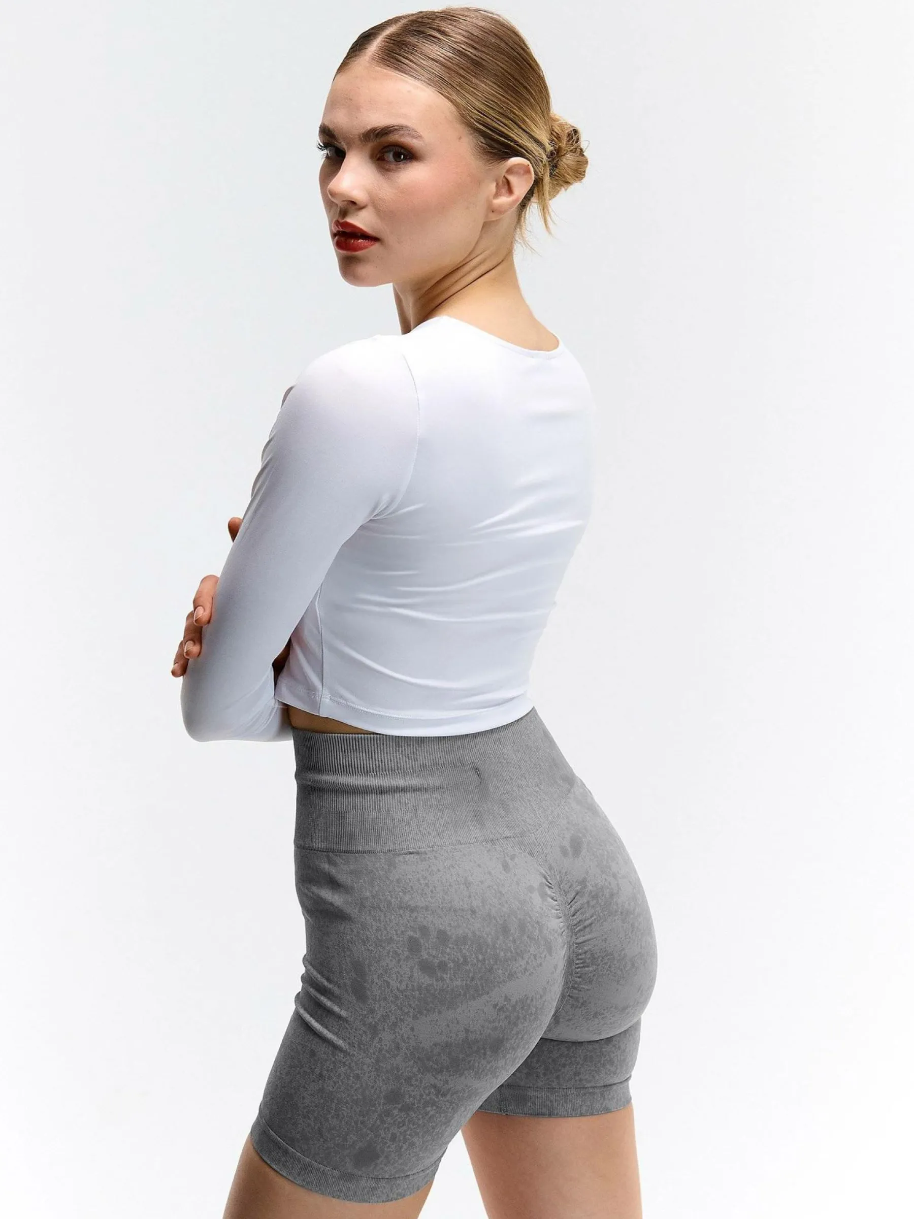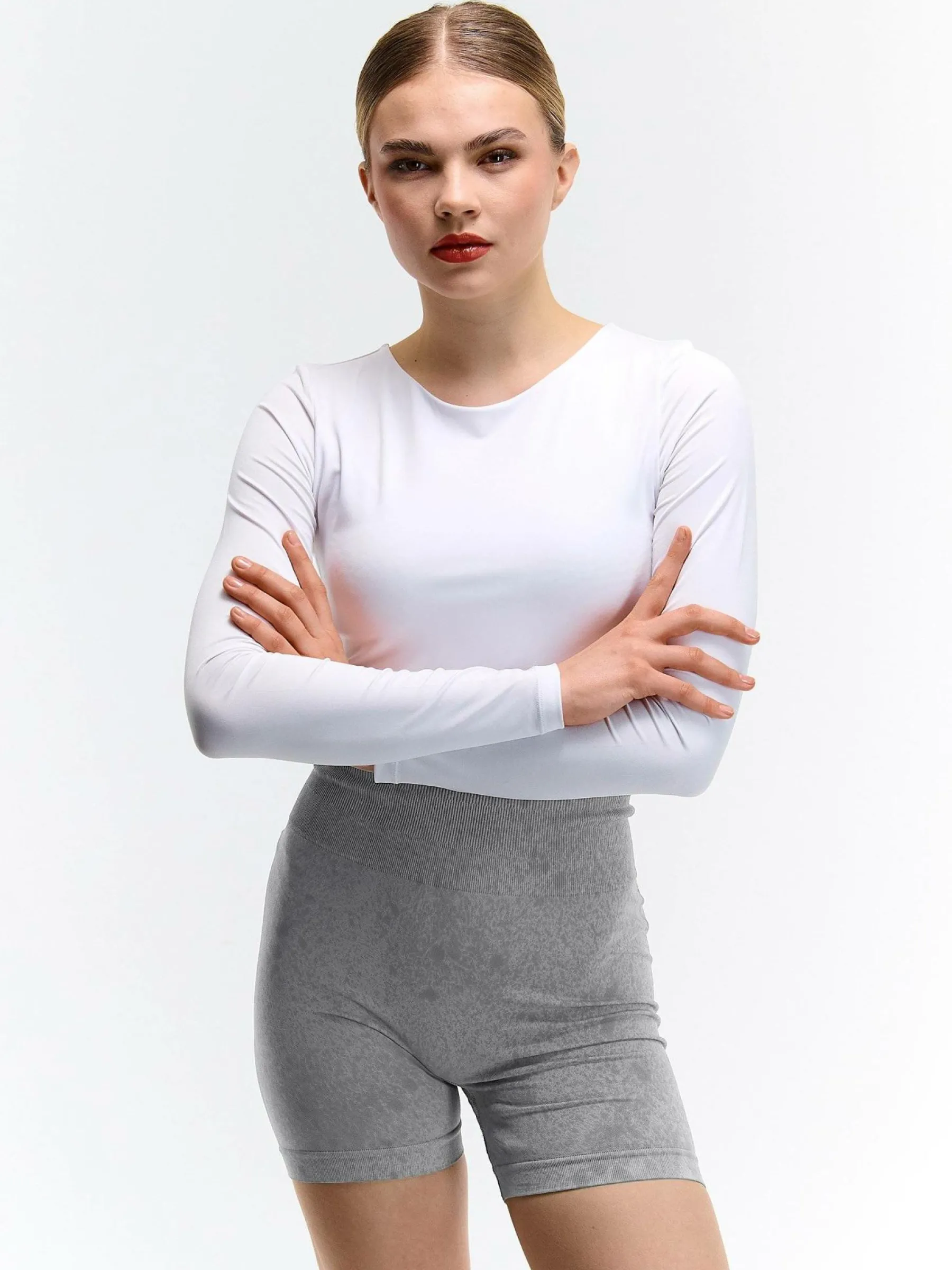 Kolor: szaryKrój: push-up, bikerTyp: spodenkiDługość: krótkiPattern style: pojedynczy kolorDetal: z elastyczną opa…