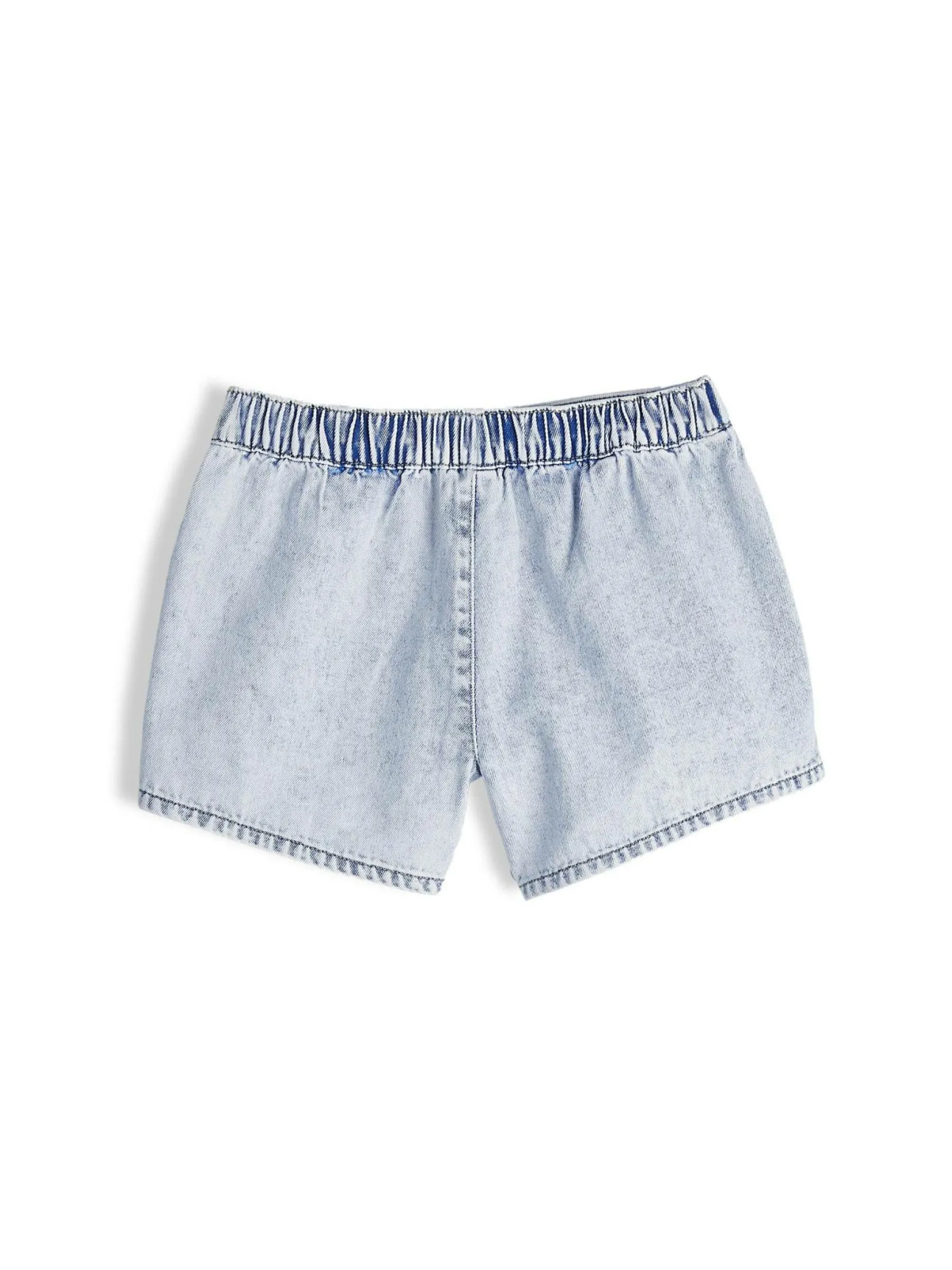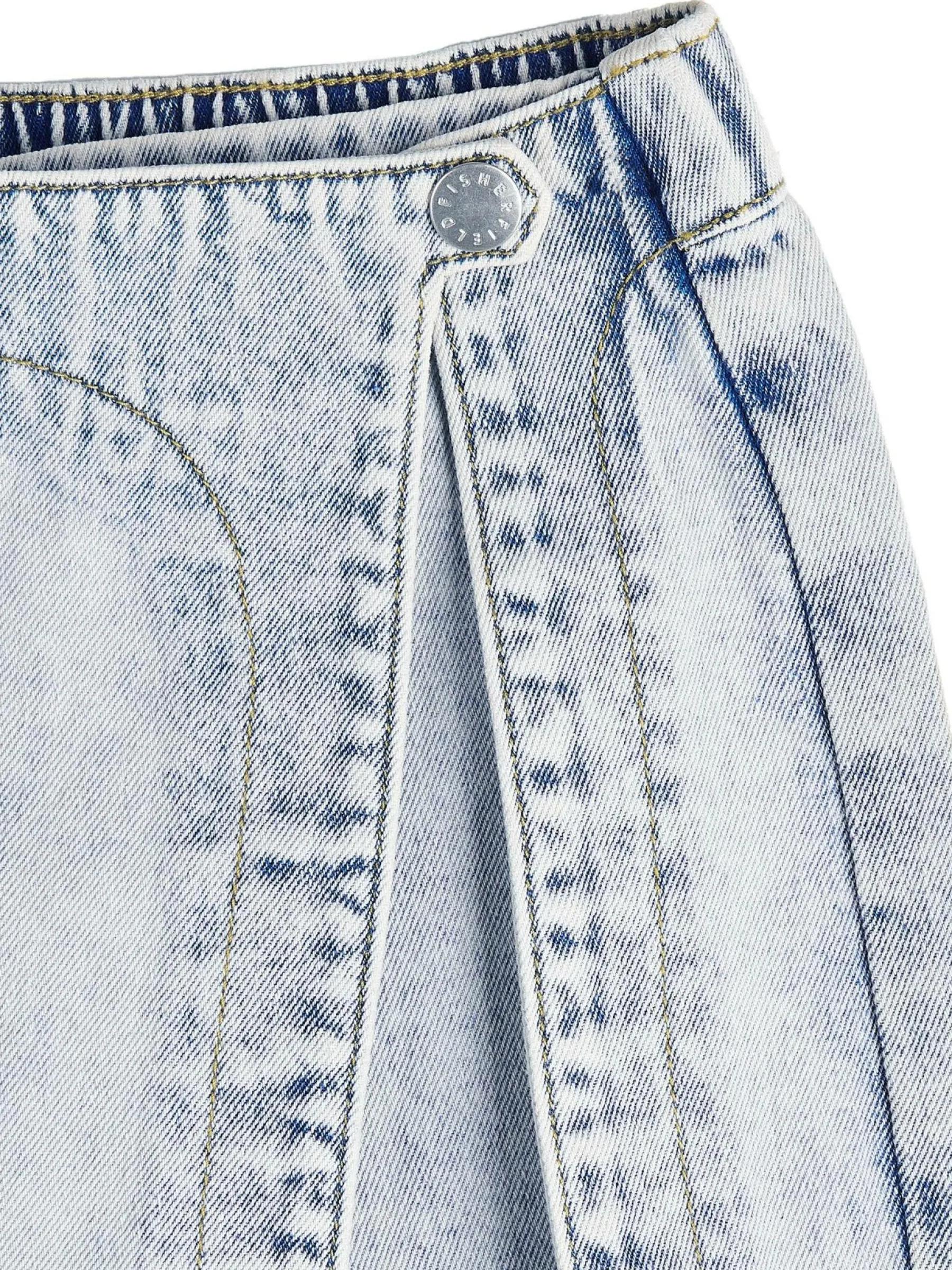 Kolor: niebieskiKrój: kopertówkiTyp: spódnica, spodenkiDługość: miniPattern style: pojedynczy kolorDetal: na guzik…
