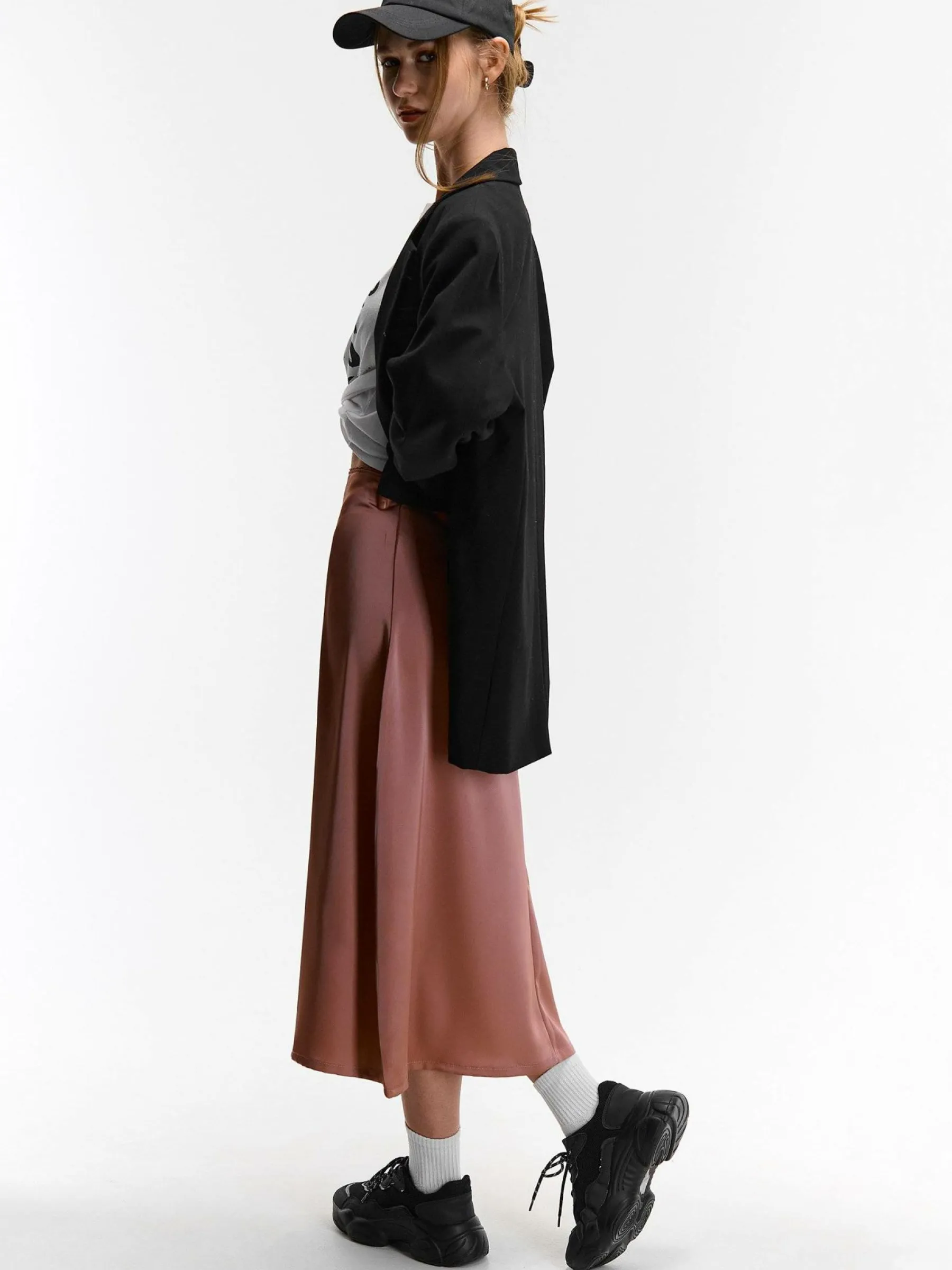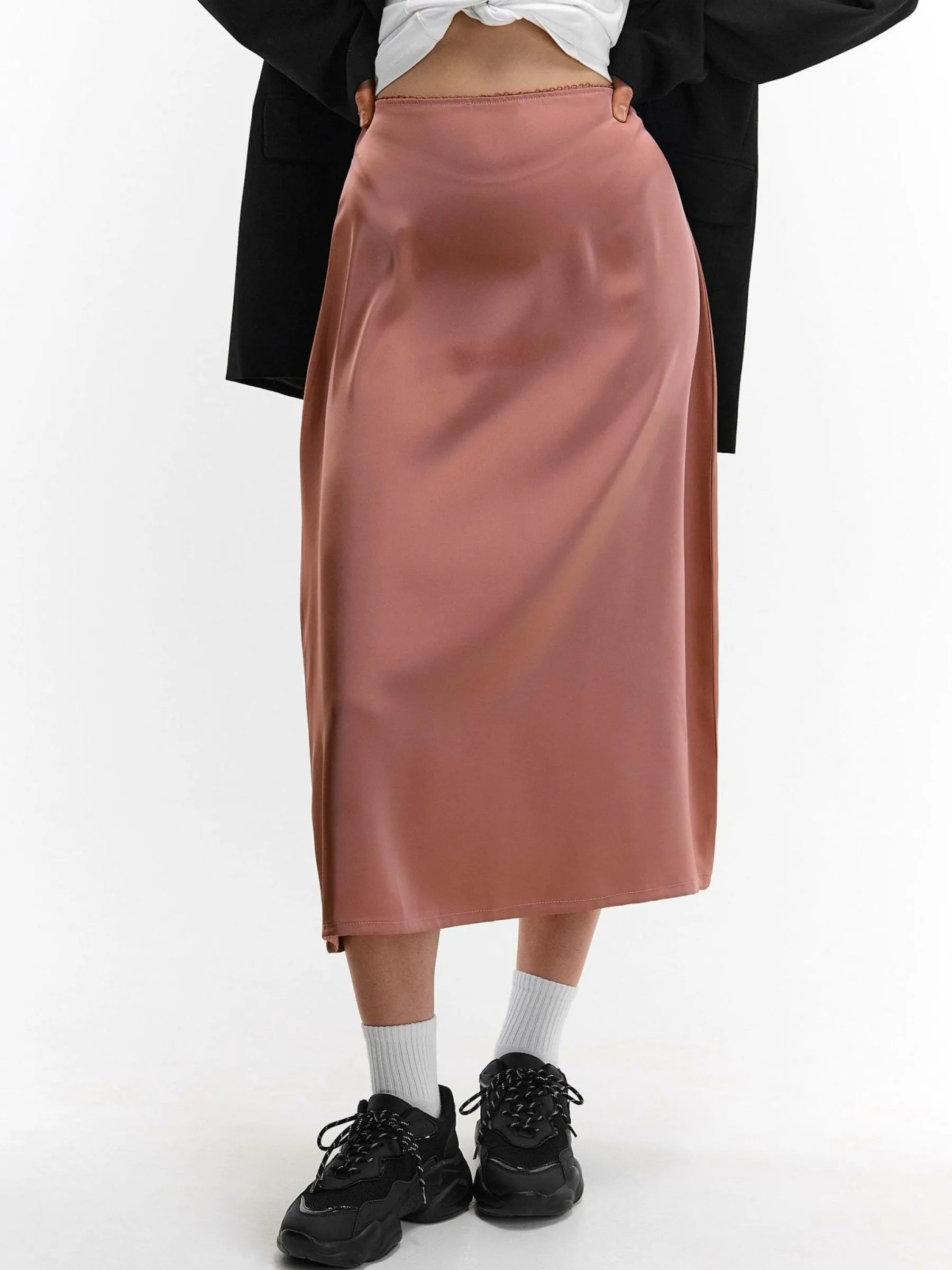 Kolor: różowyKrój: podstawowyTyp: spódnicaDługość: midiPattern style: pojedynczy kolorDetal: na zamekMateriał: s…