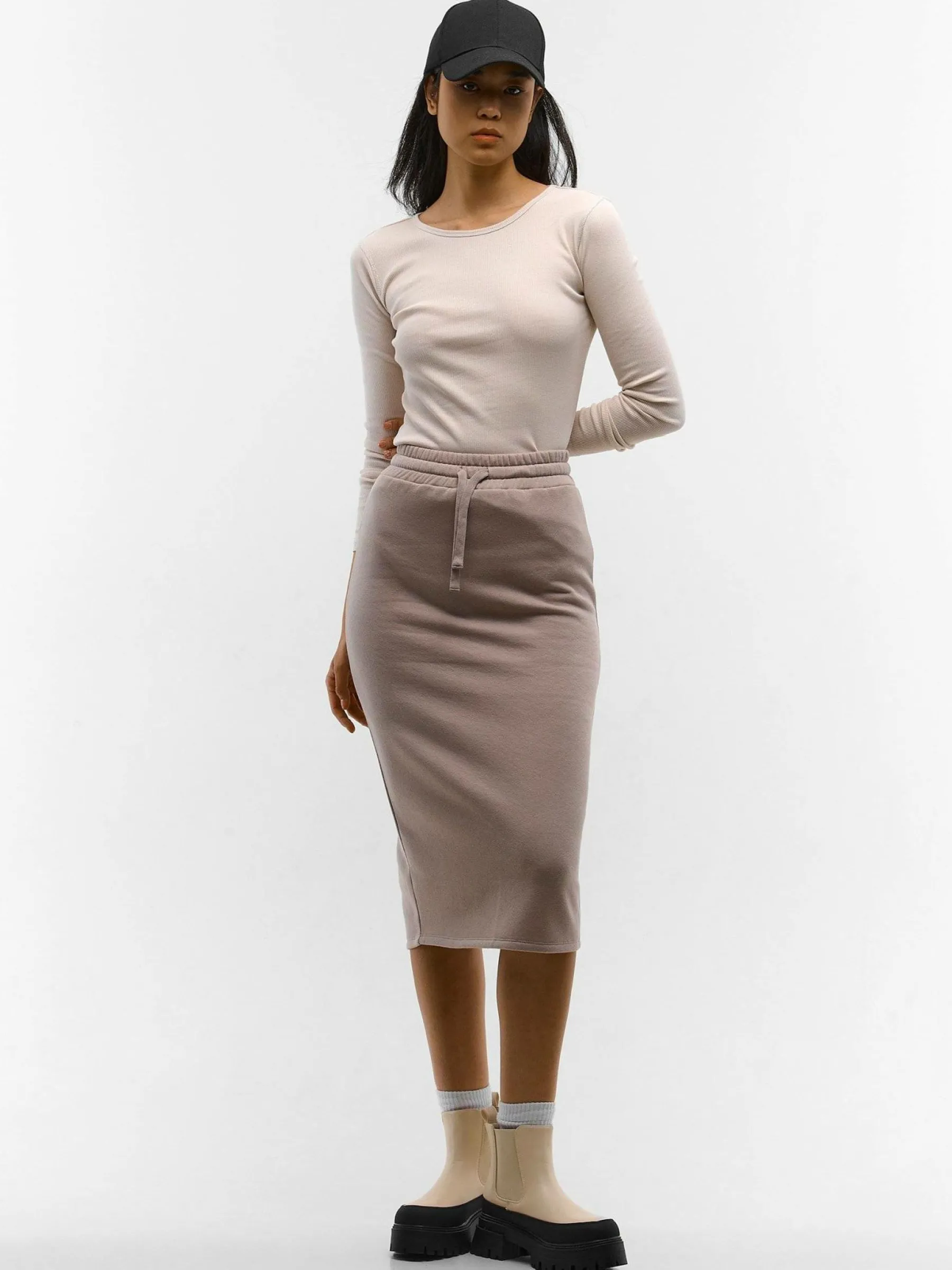 Zdjęcia z modelką mogą nie odpowiadać rzeczywistemu kolorowi produktu.Kolor: beżowyKrój: podstawowyTyp: spódnicaD…