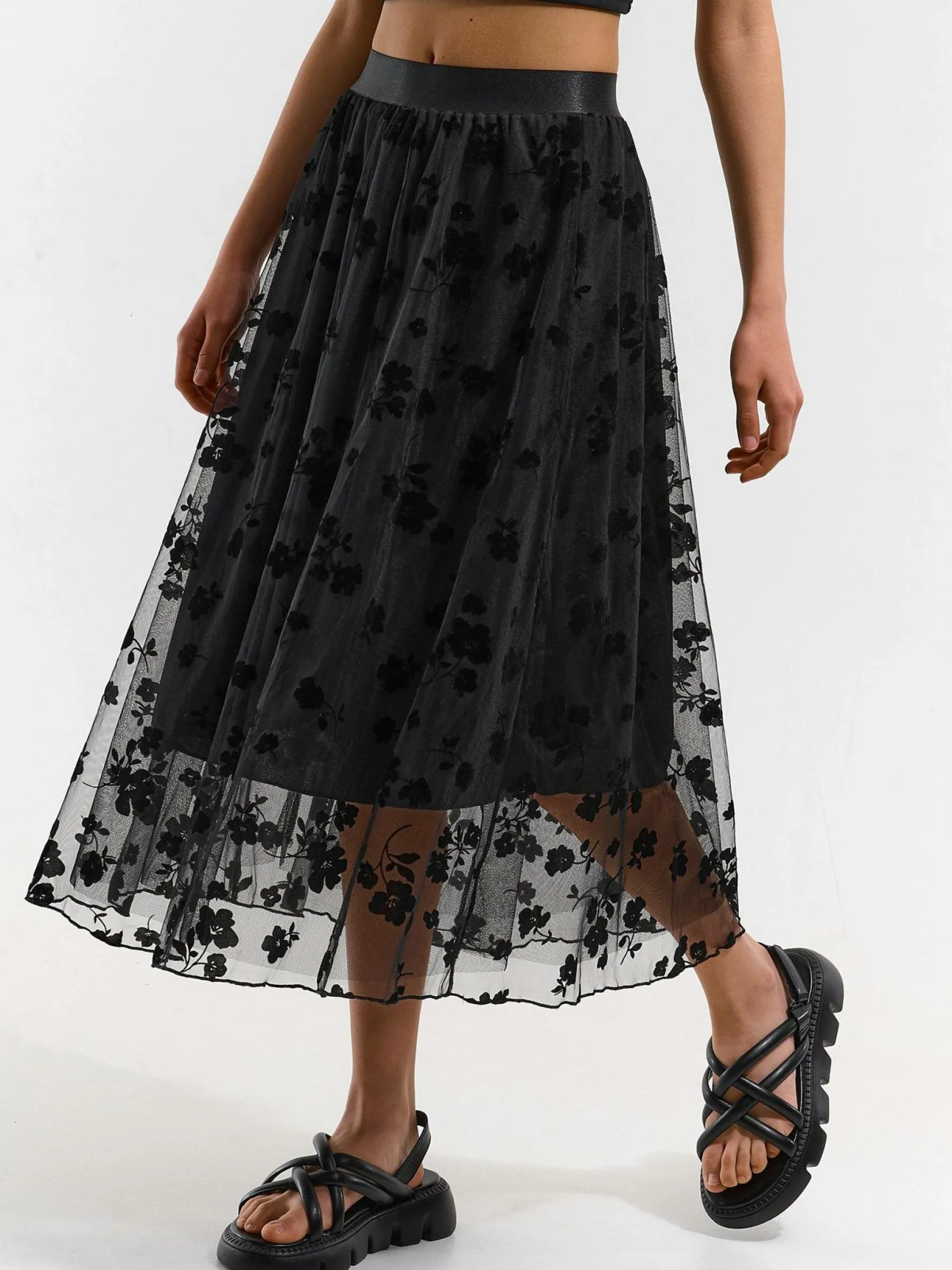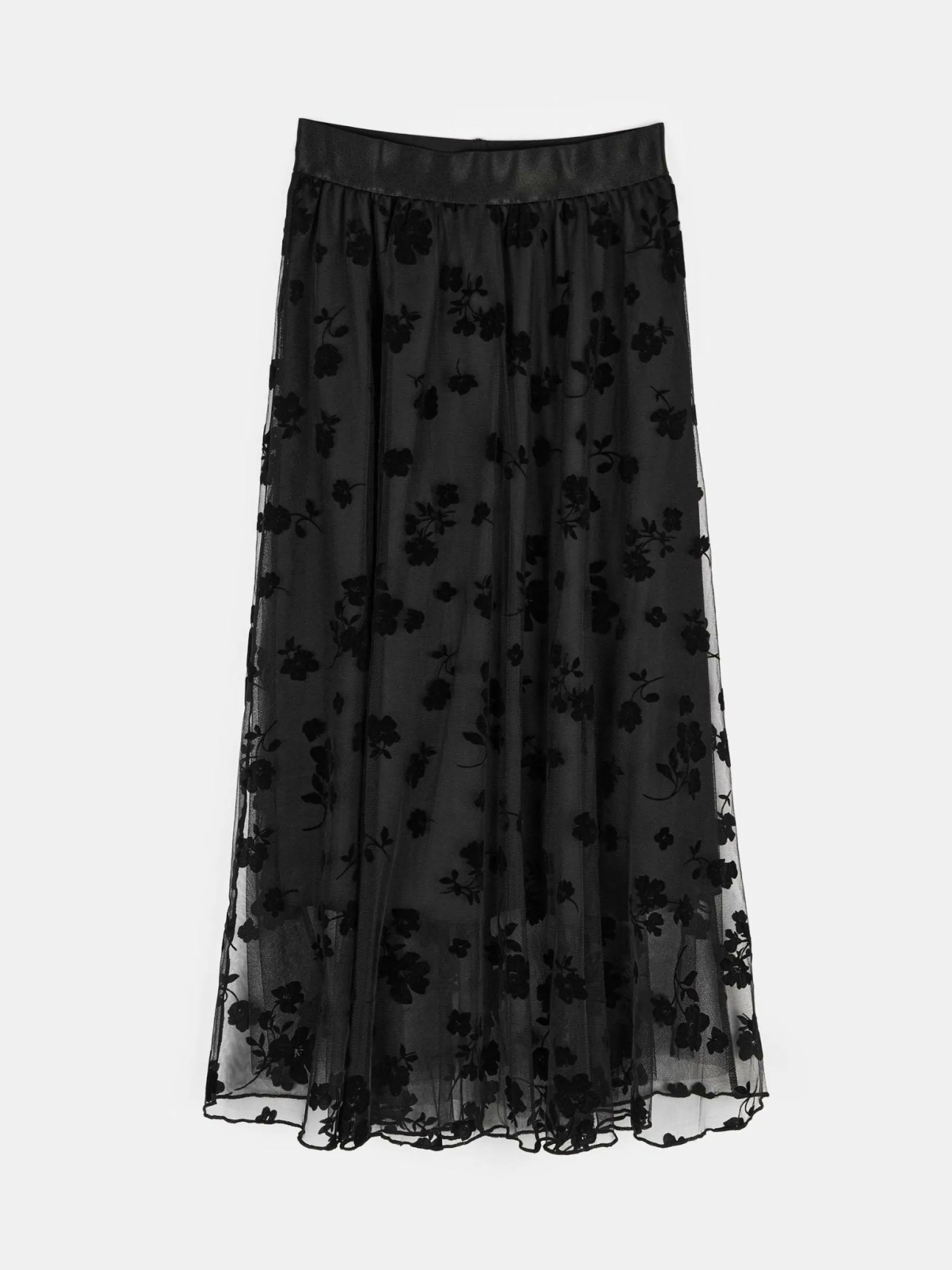 Kolor: czarnyKrój: asyTyp: spódnicaDługość: midiPattern style: kwiatoweDetal: z halkąMateriał: syntetycznePłeć:…