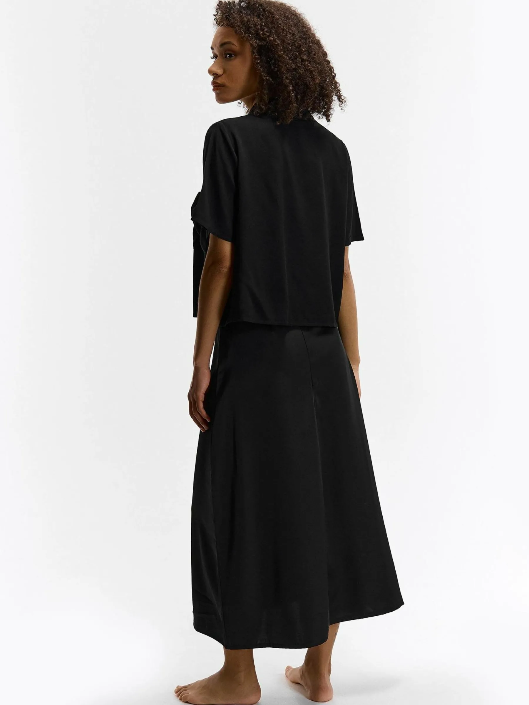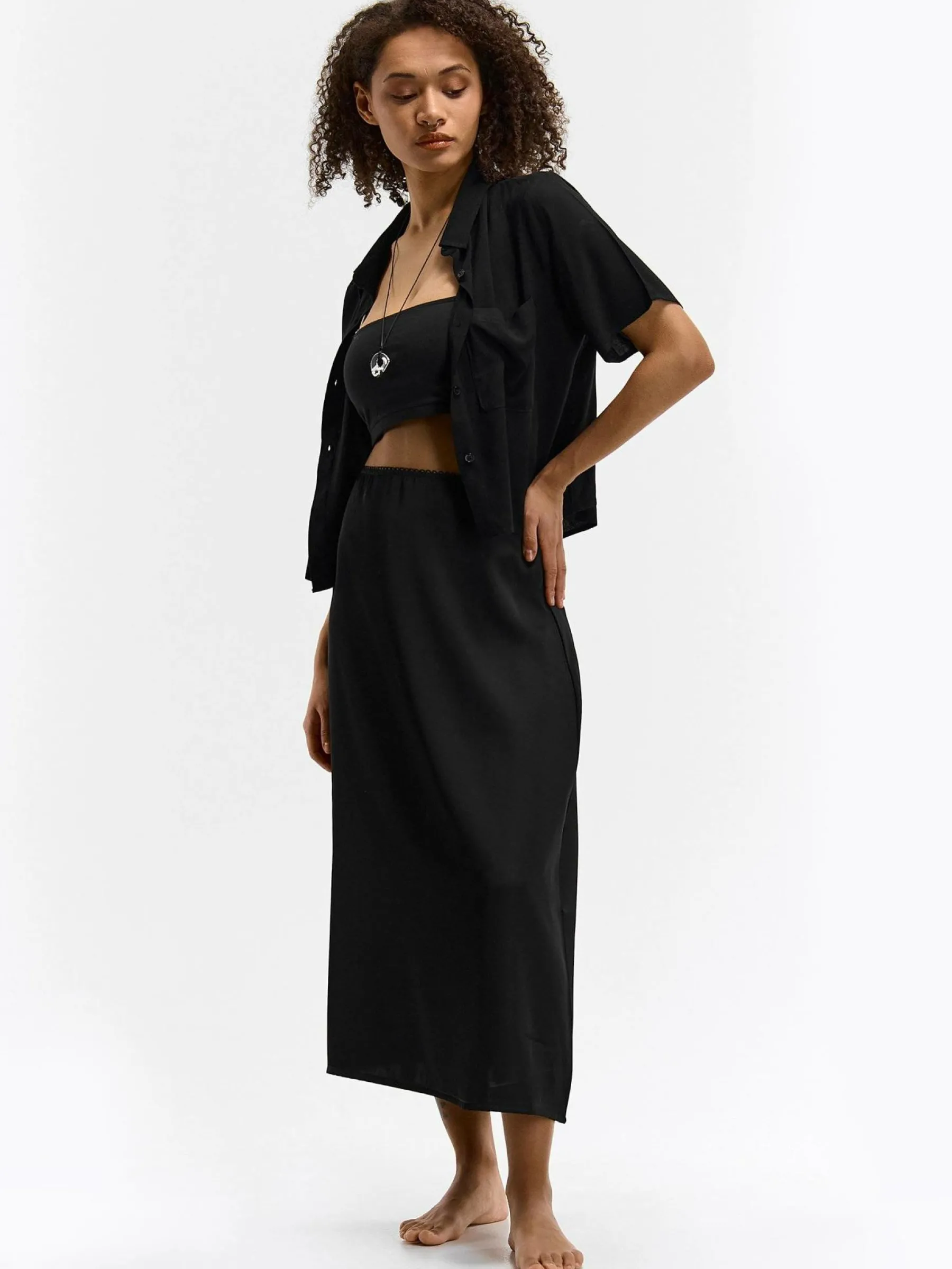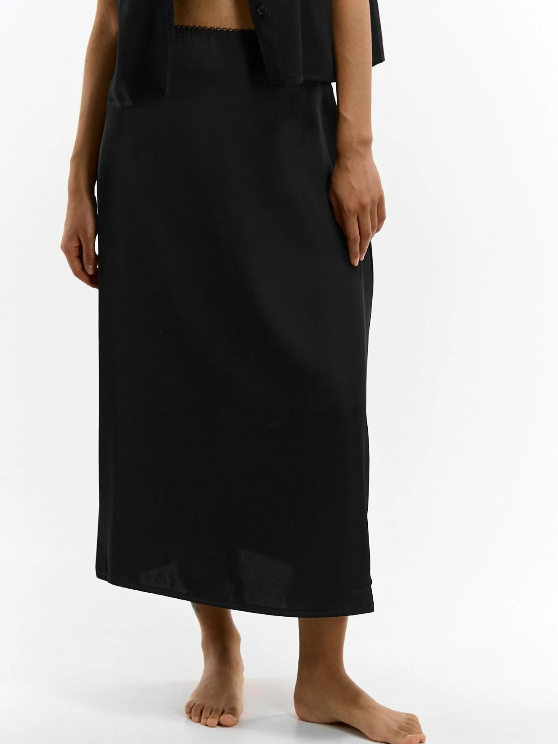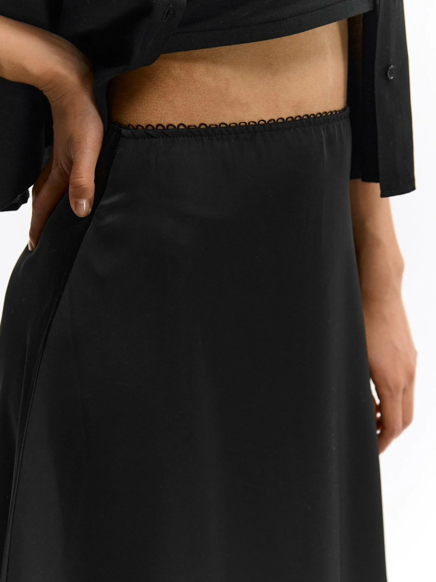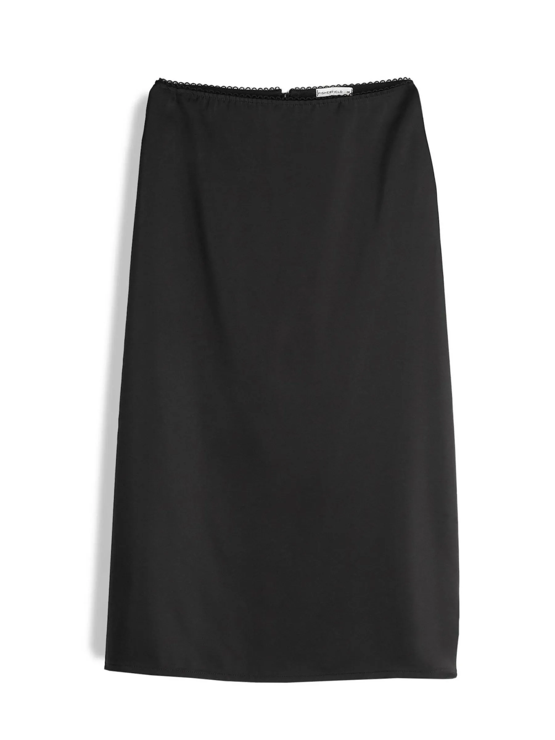Kolor: czarnyKrój: podstawowyTyp: spódnicaDługość: midiPattern style: pojedynczy kolorDetal: na zamekMateriał: sat…