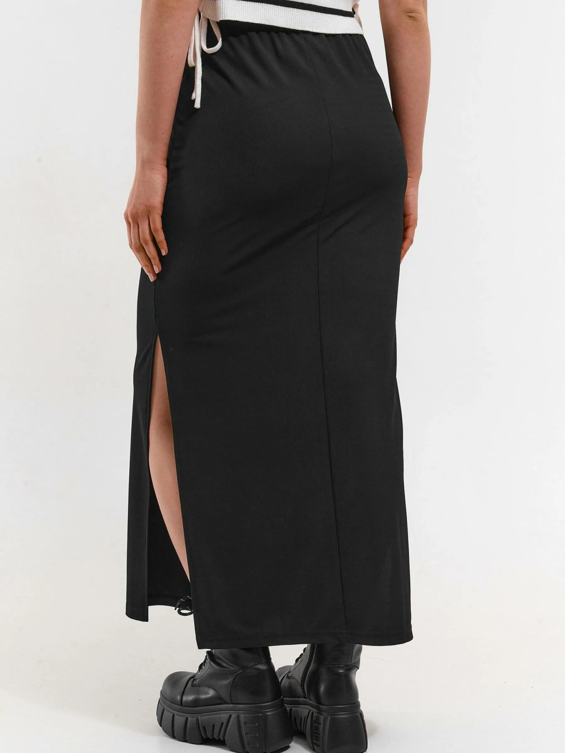 Kolor: czarnyKrój: regularTyp: spódnicaDługość: maxiPattern style: pojedynczy kolorDetal: z elastyczną opaskąMate…