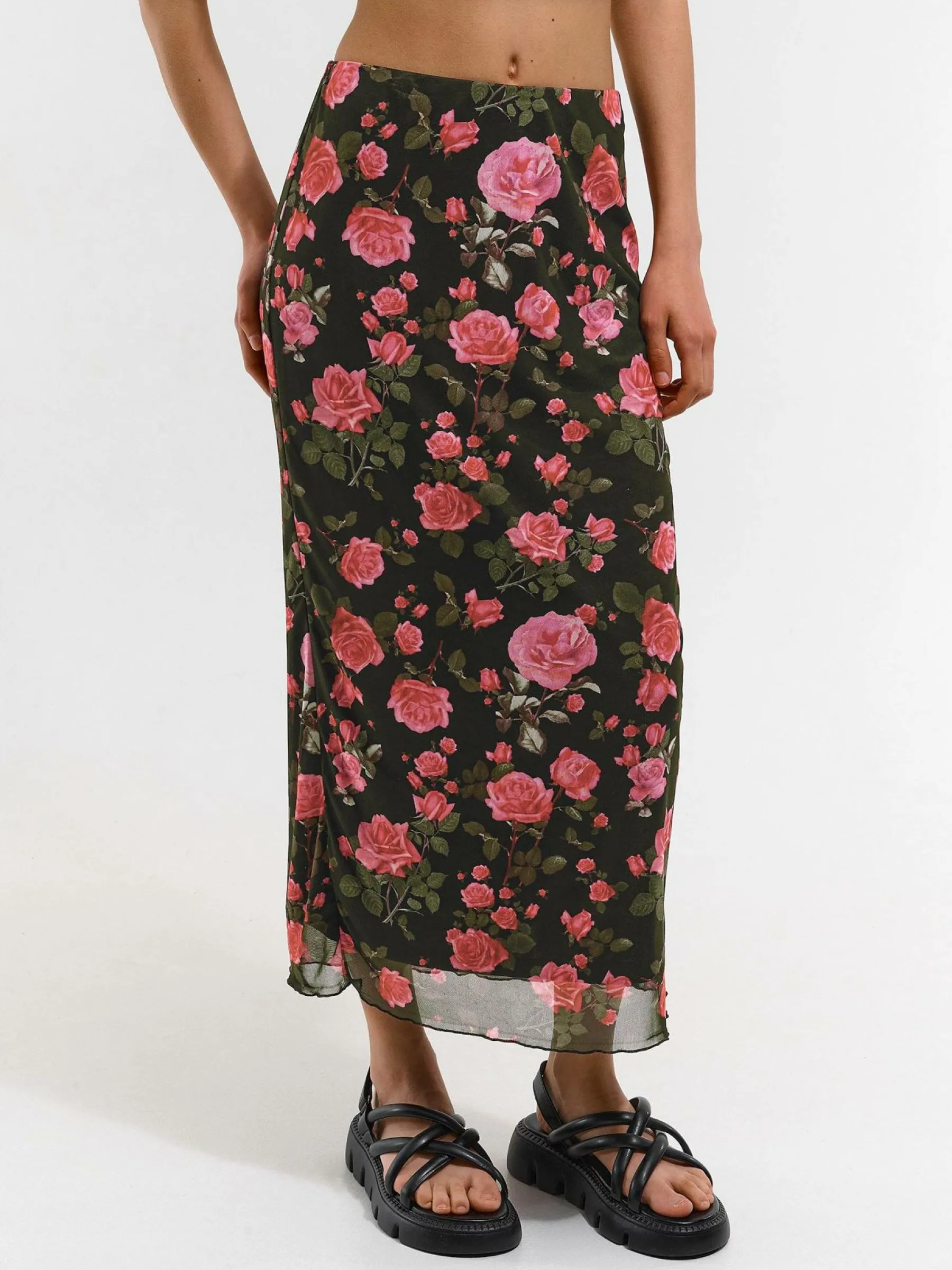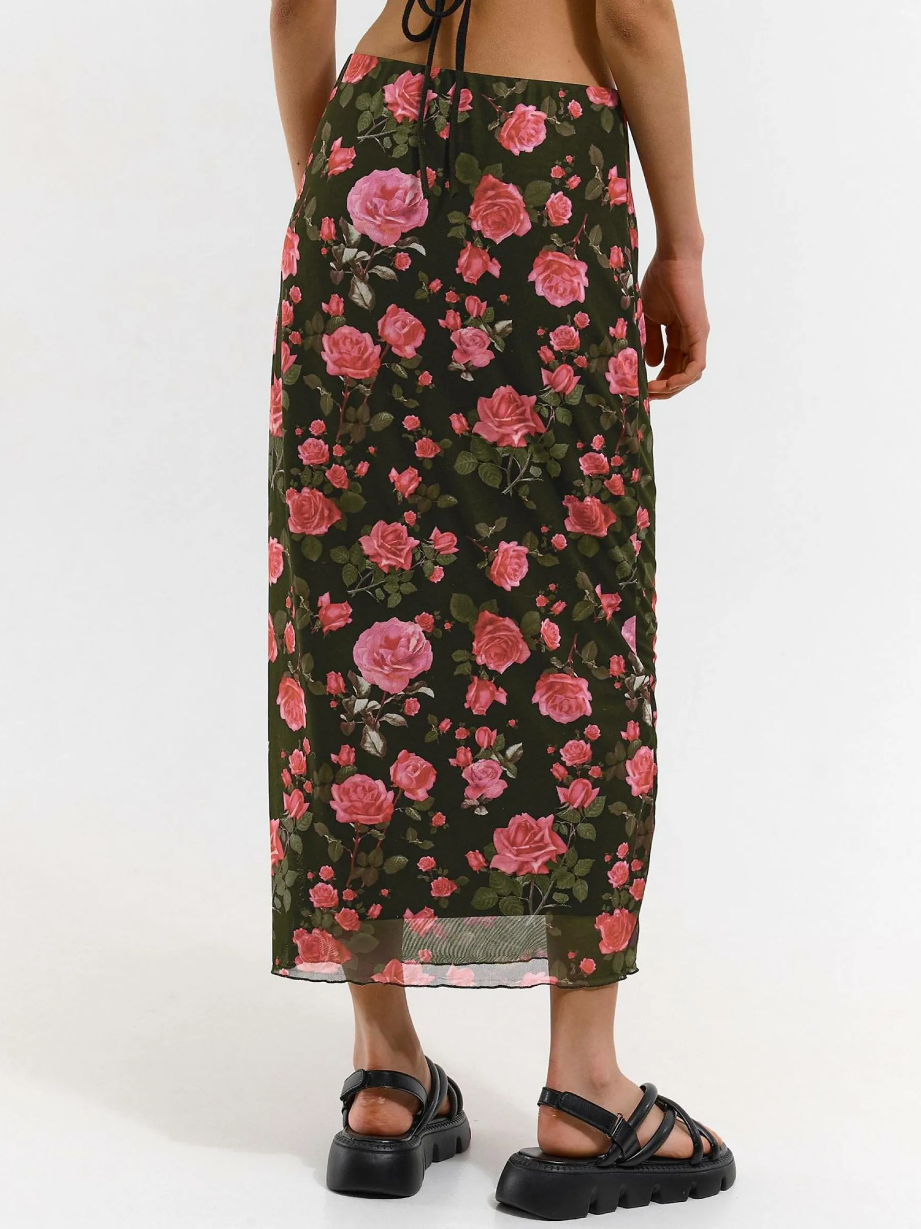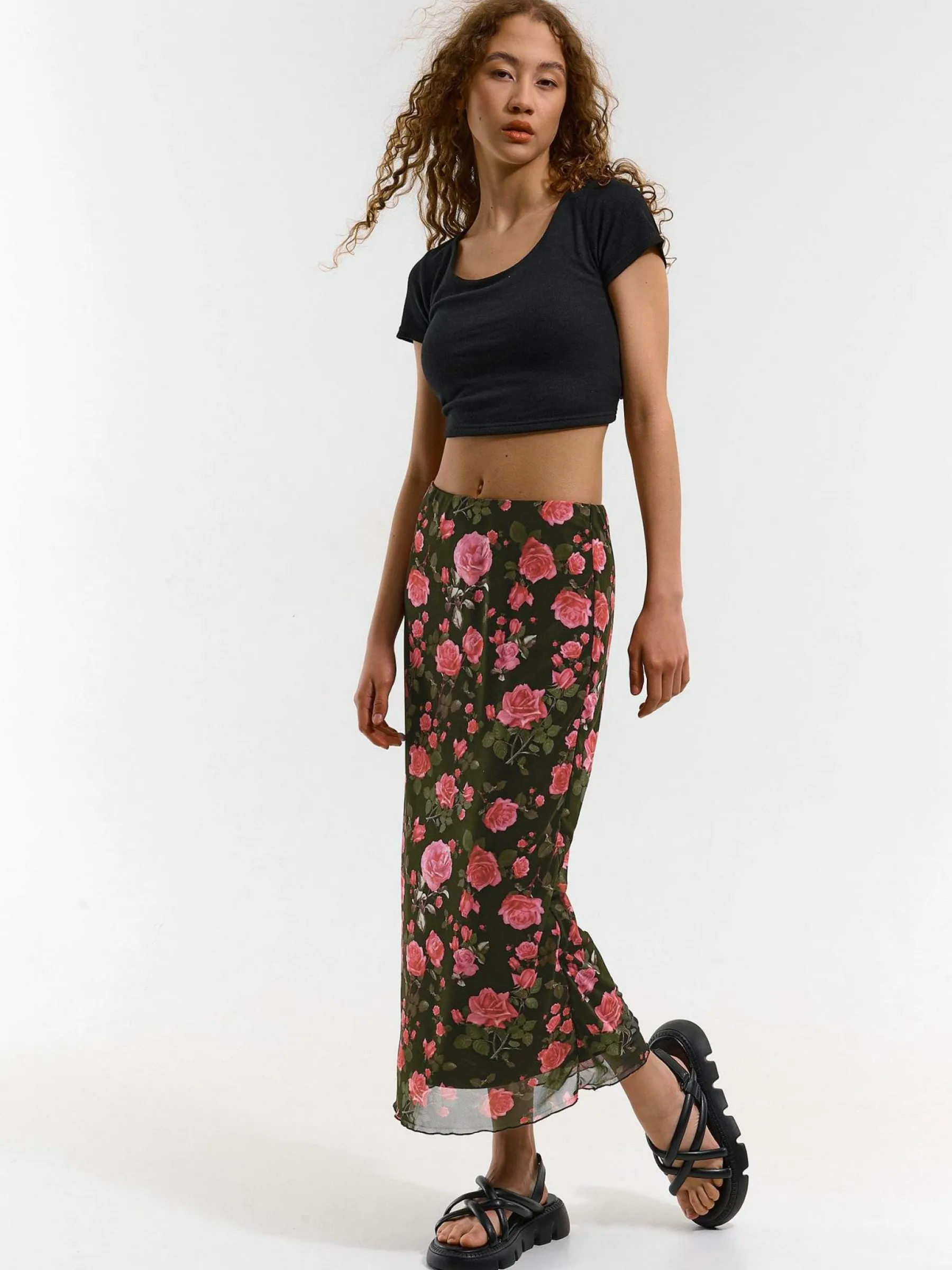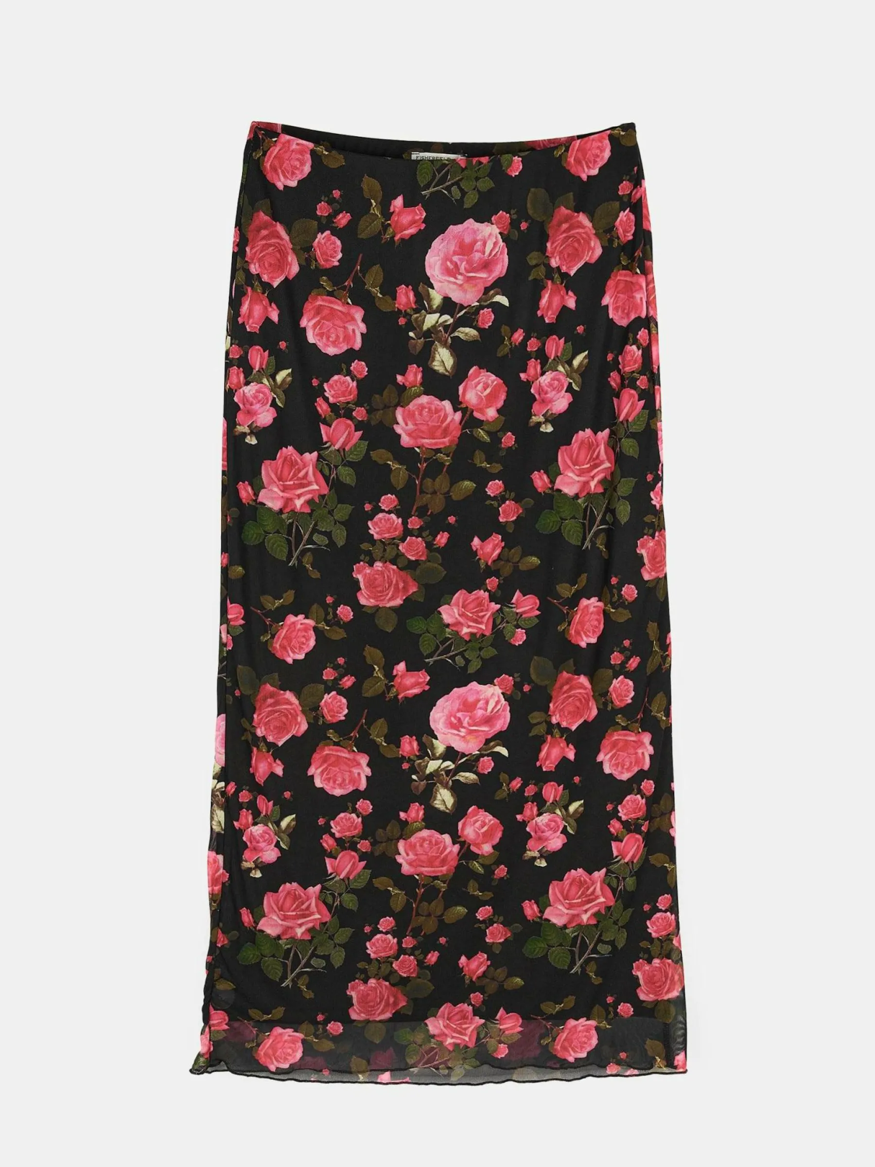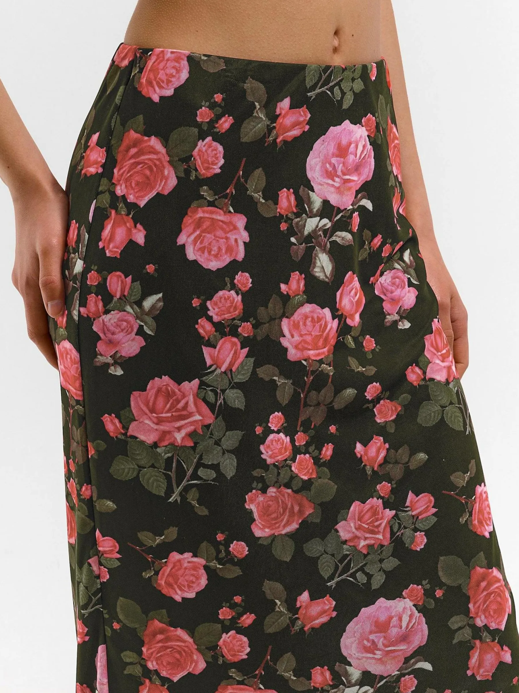Kolor: czarnyKrój: regularTyp: spódnicaDługość: midiPattern style: kwiatoweMateriał: syntetycznePłeć: kobietyOka…