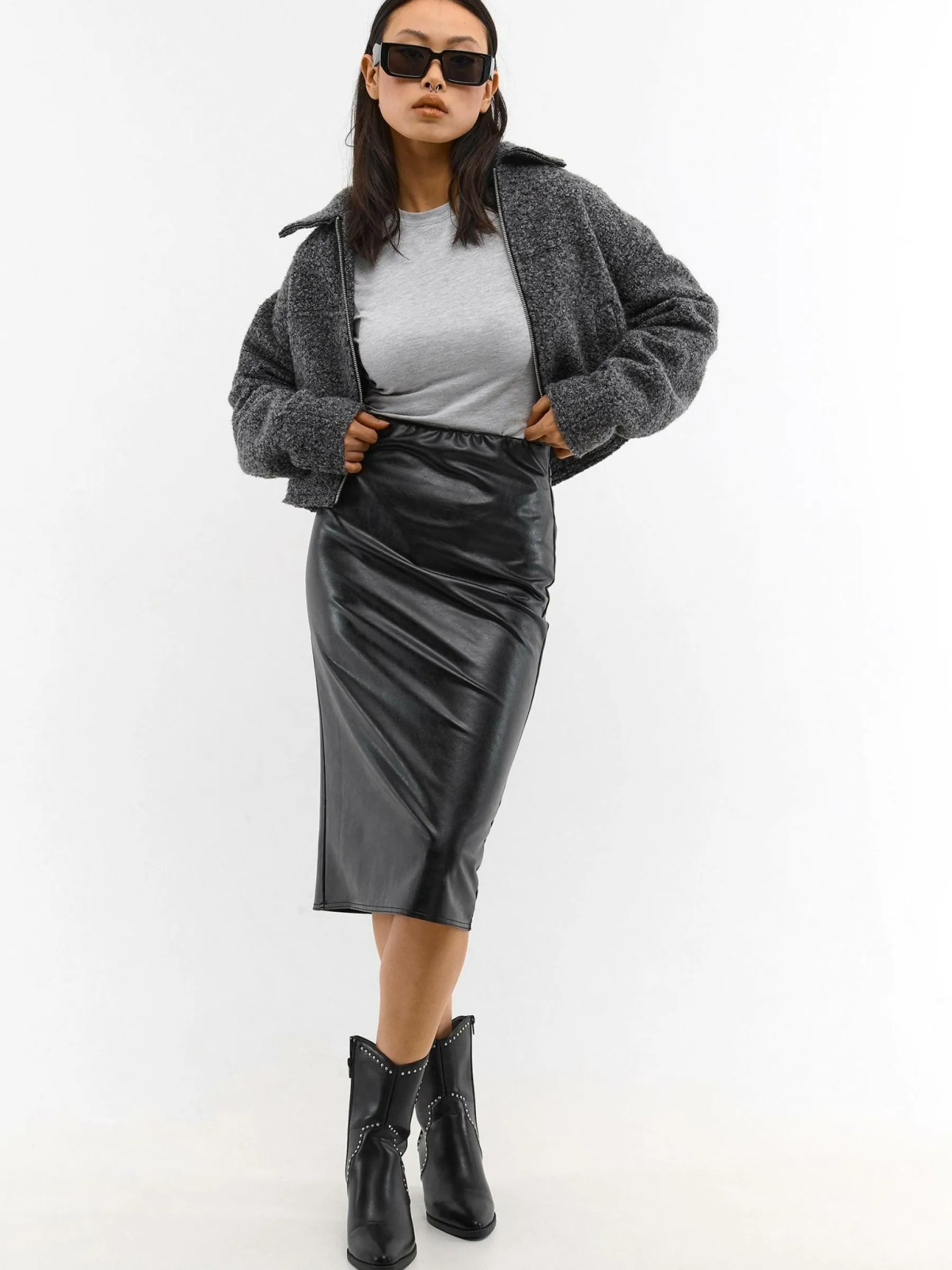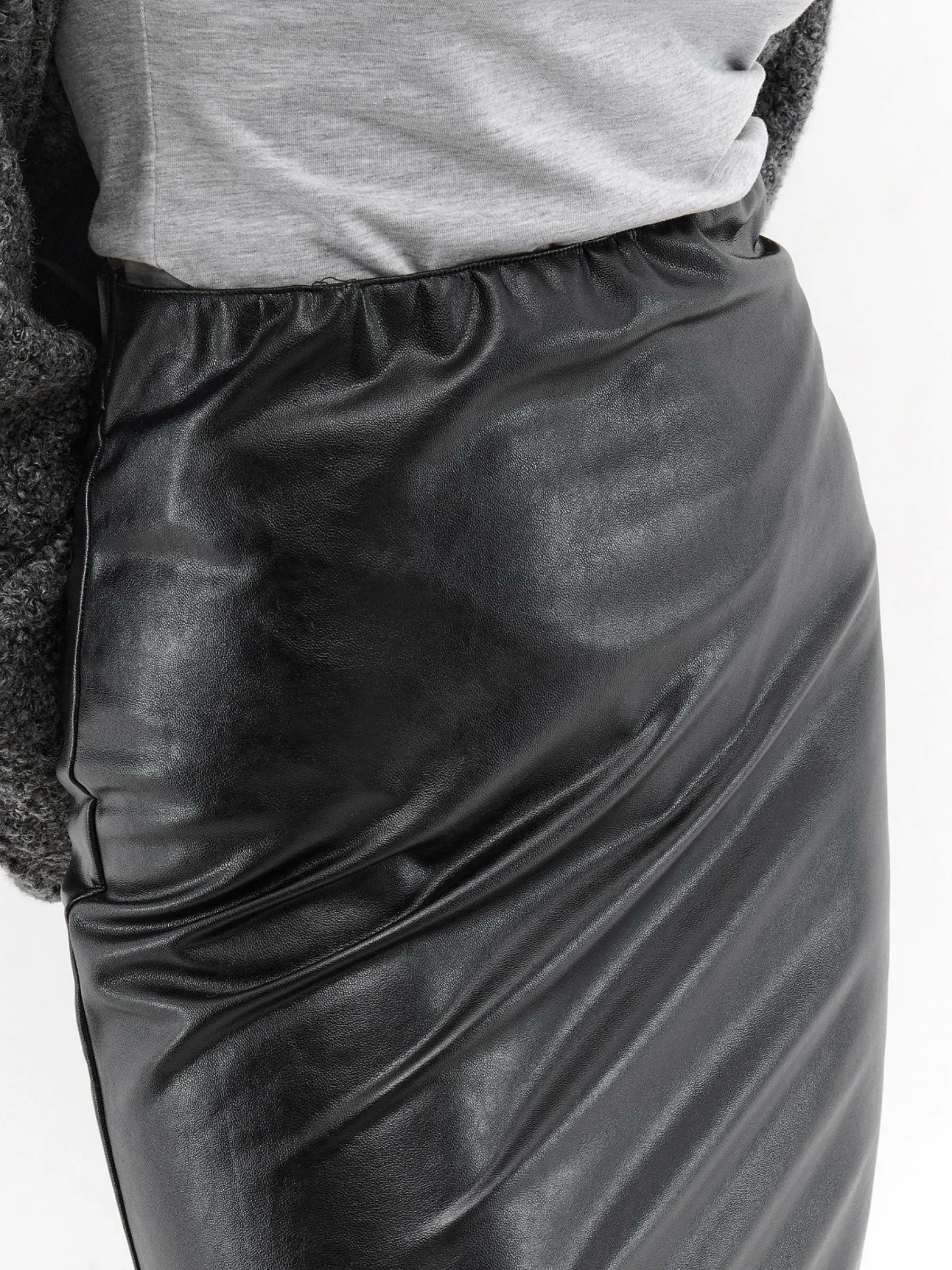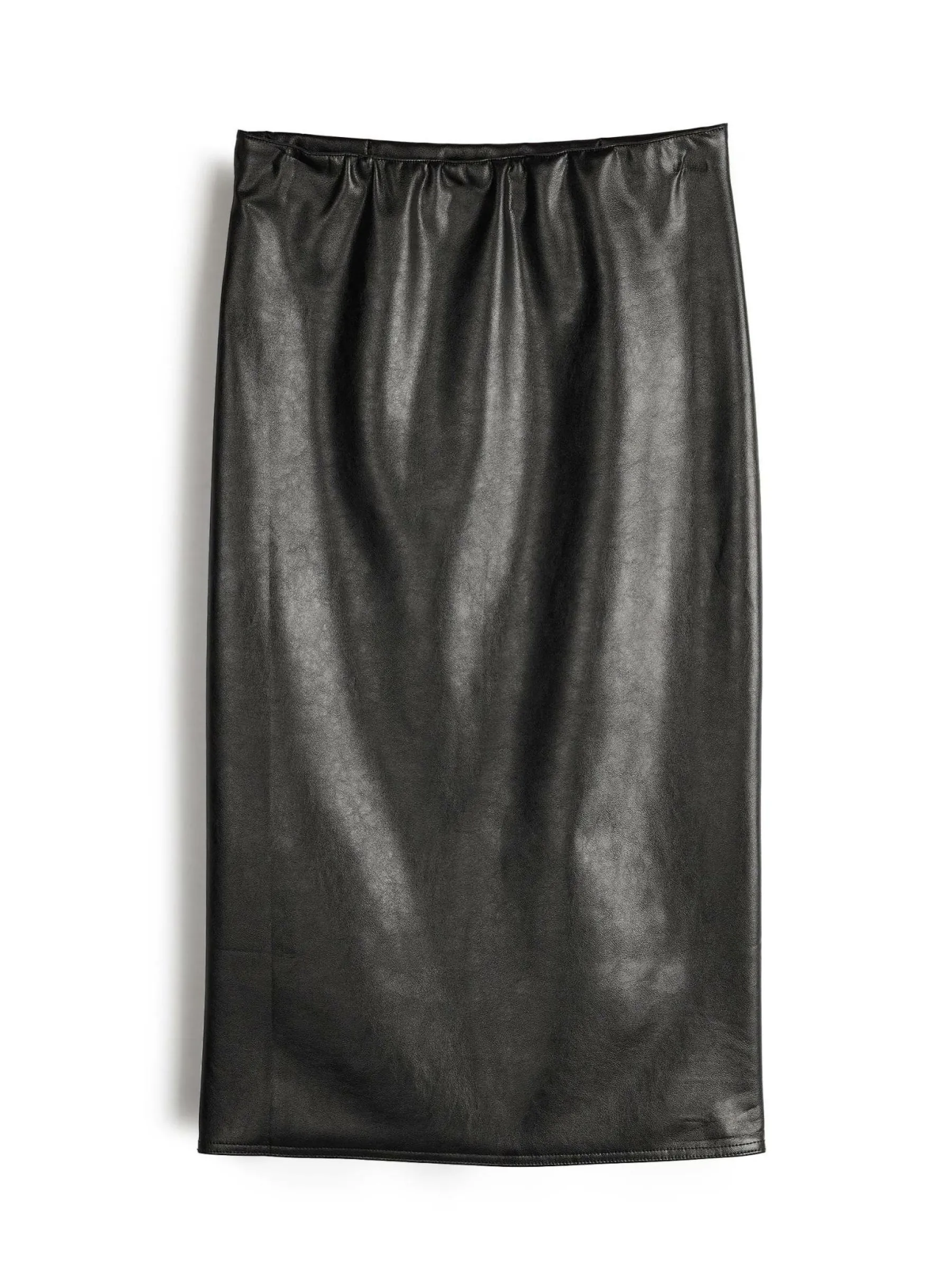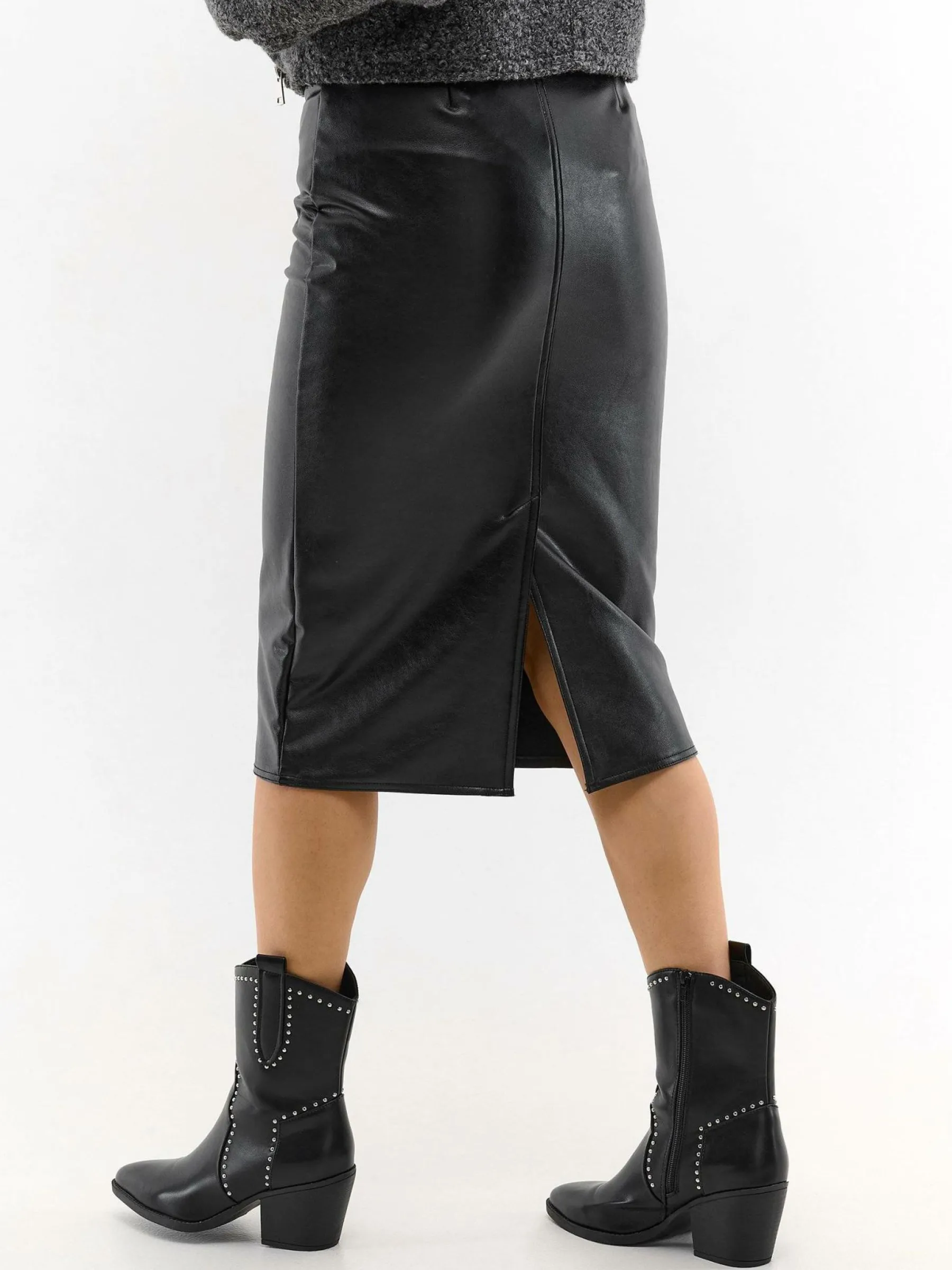 Kolor: czarnyKrój: ołówkoweTyp: spódnicaDługość: midiPattern style: pojedynczy kolorDetal: z rozcięciem, z elast…