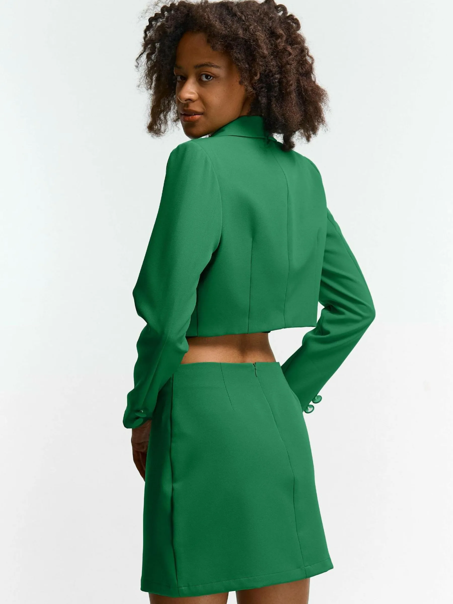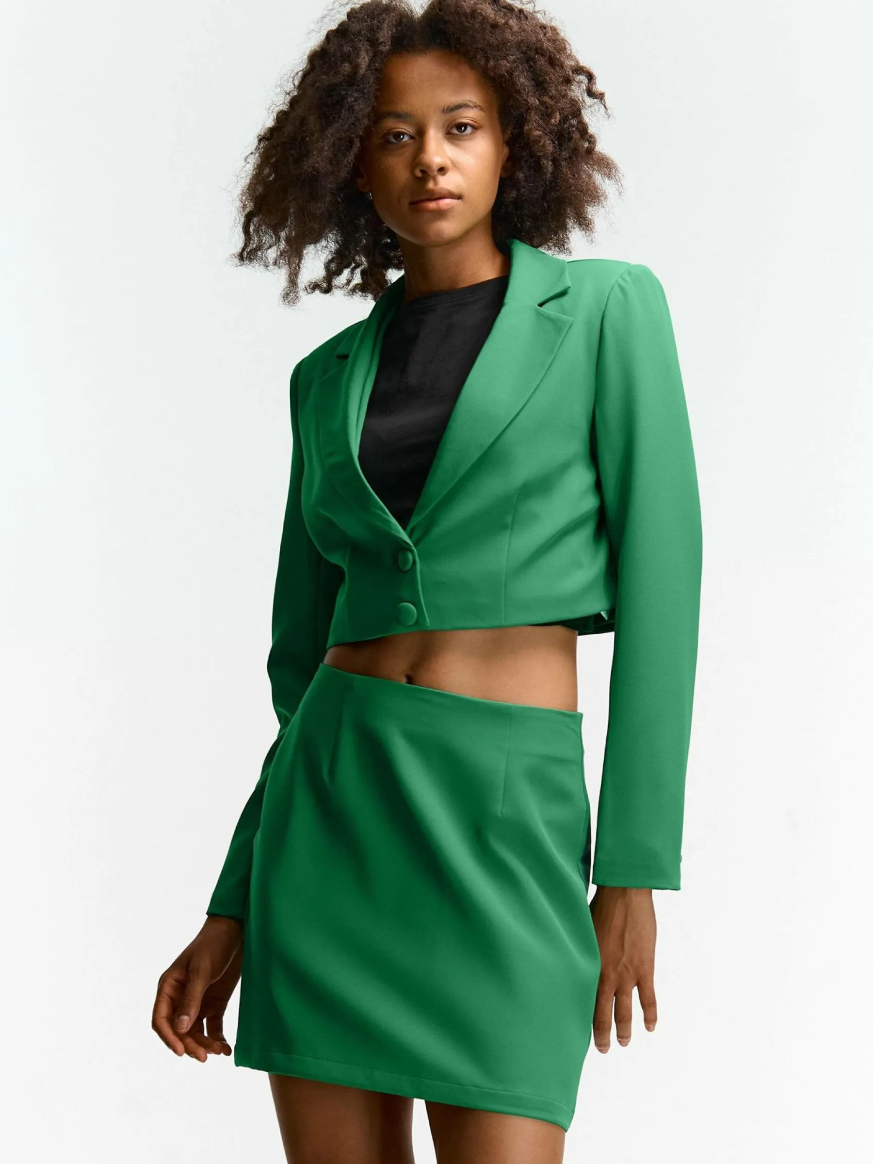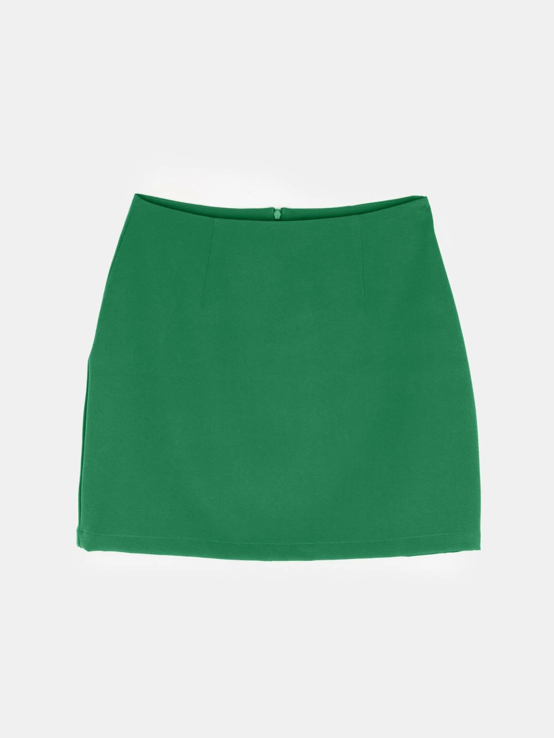 Kolor: zielonyKrój: z wysokim stanem, podstawowyTyp: spódnicaDługość: miniPattern style: pojedynczy kolorDetal: na …