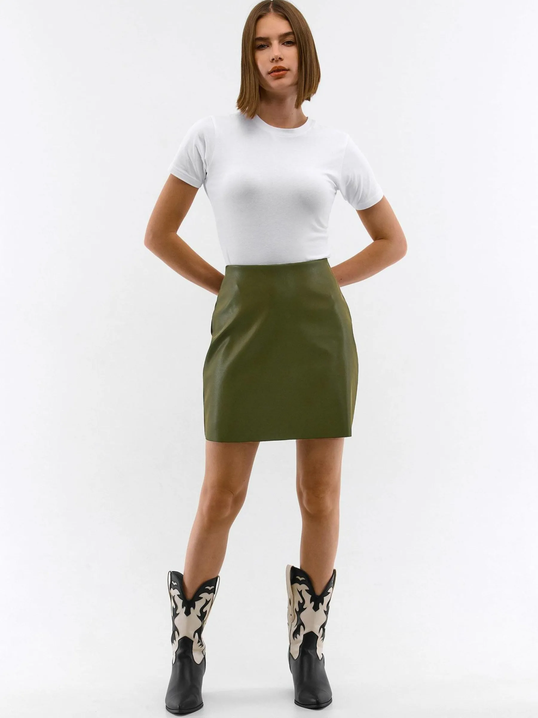 Kolor: khakiKrój: ołówkoweTyp: spódnicaDługość: miniPattern style: pojedynczy kolorMateriał: syntetycznePłeć: …