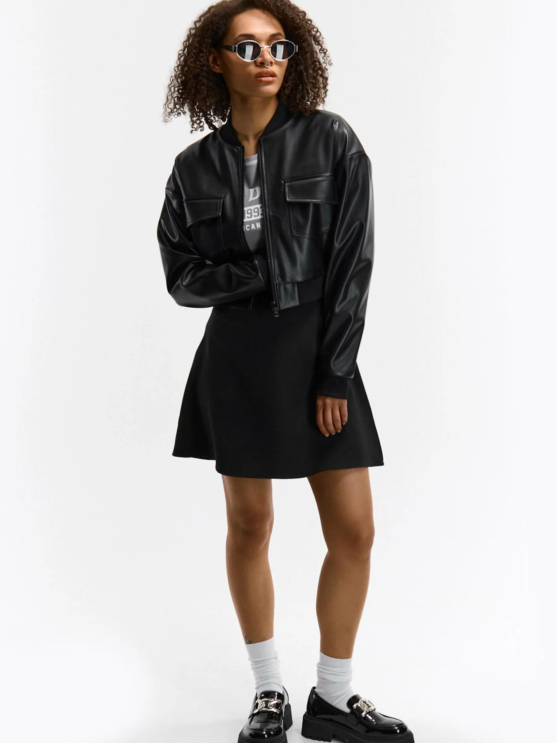 Kolor: czarnyKrój: asyTyp: spódnicaDługość: miniPattern style: pojedynczy kolorDetal: na zamekMateriał: syntetyczn…