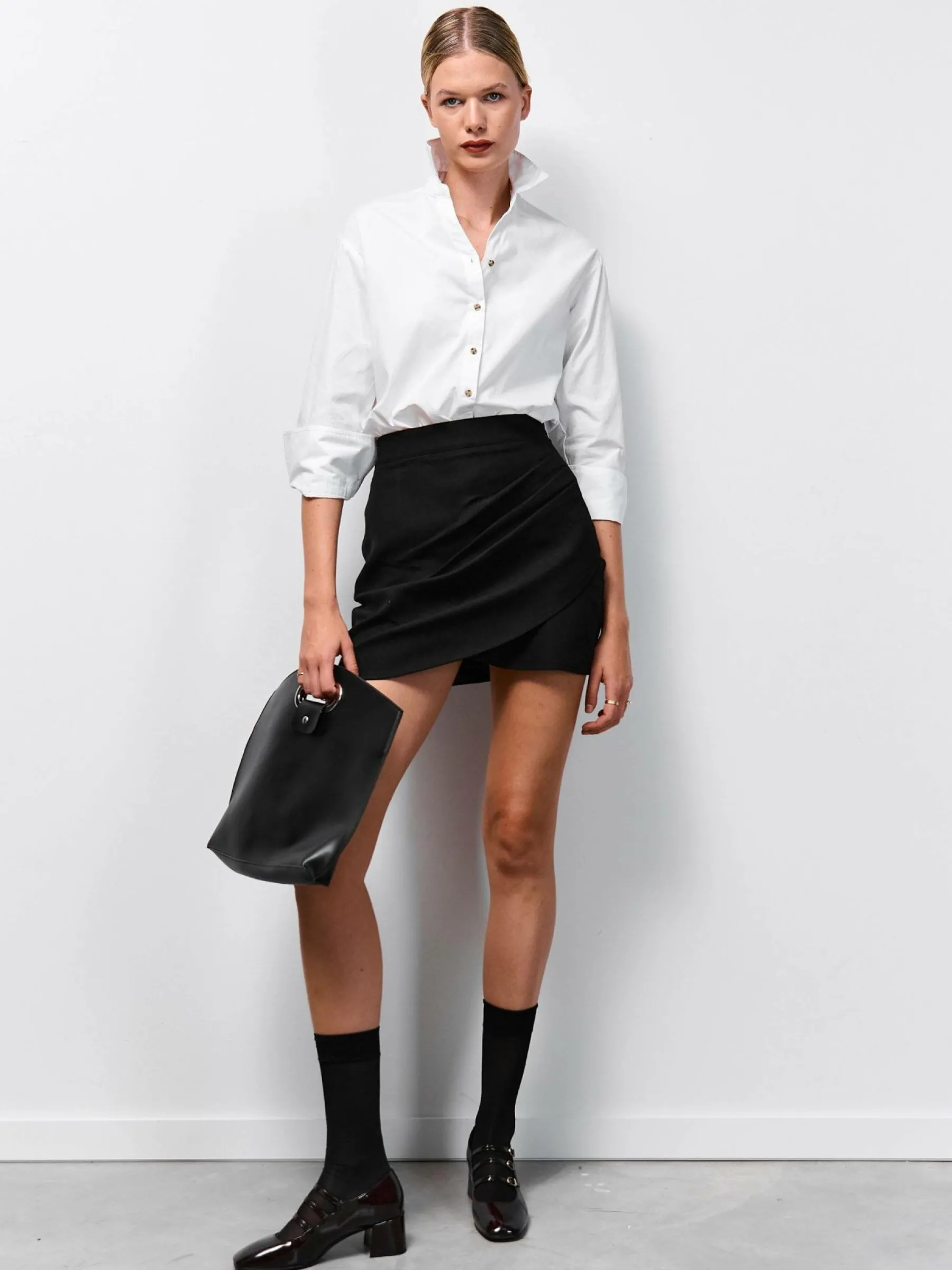 Kolor: czarnyKrój: ołówkowe, kopertówkiTyp: spódnicaDługość: dlugiePattern style: pojedynczy kolorDetal: na zame…