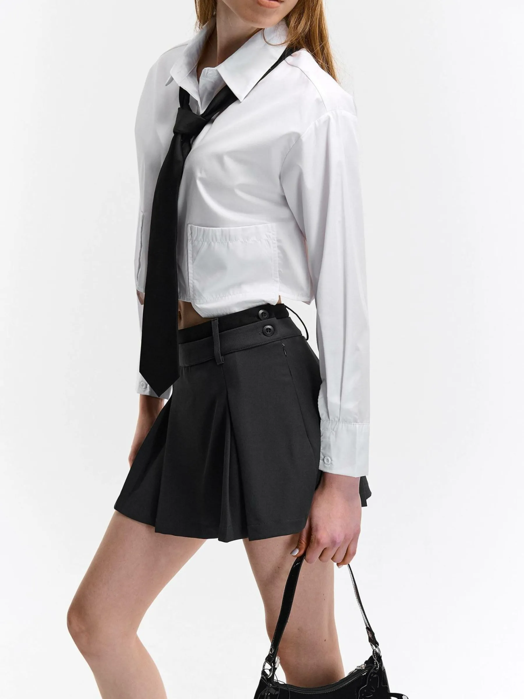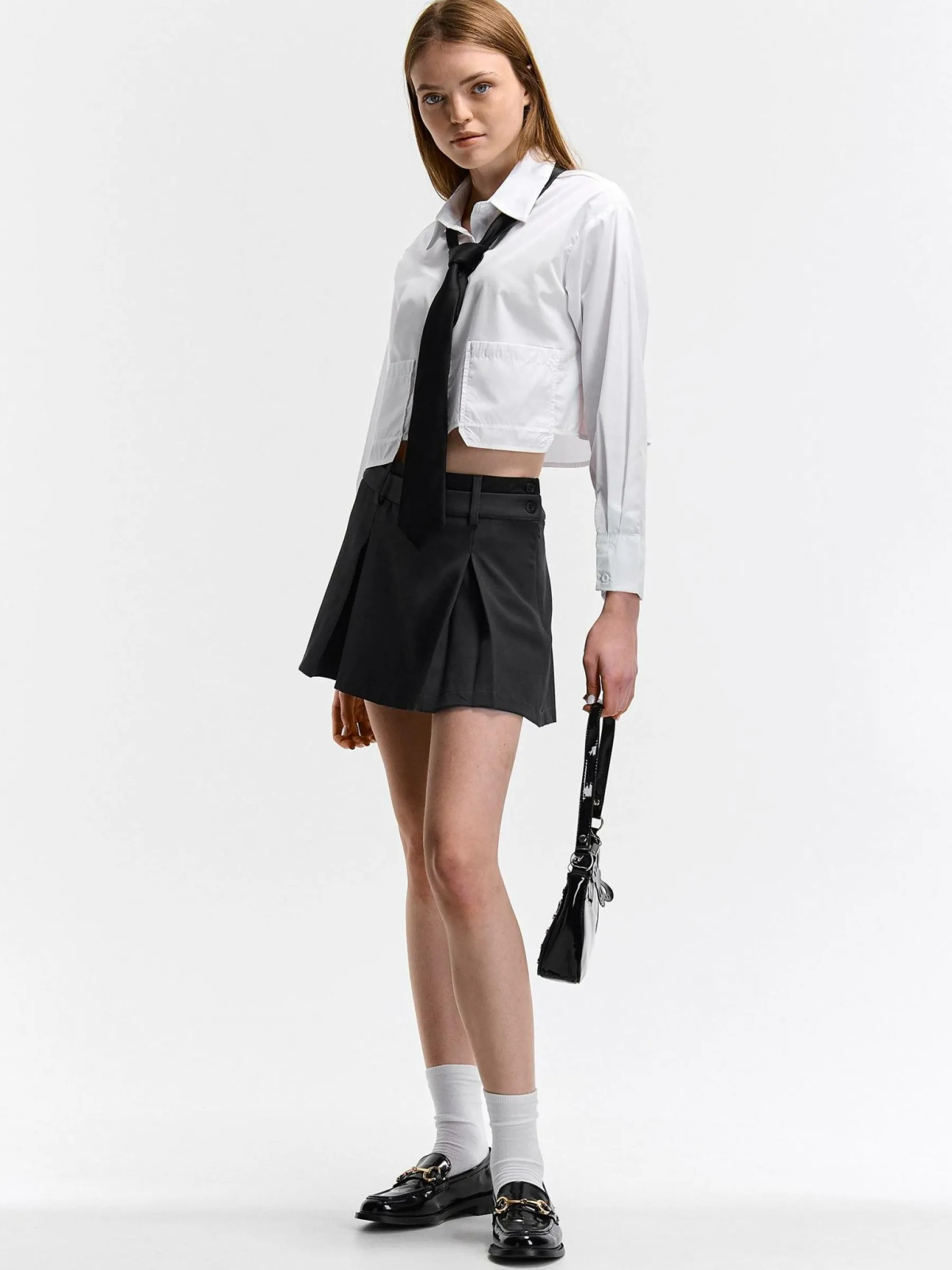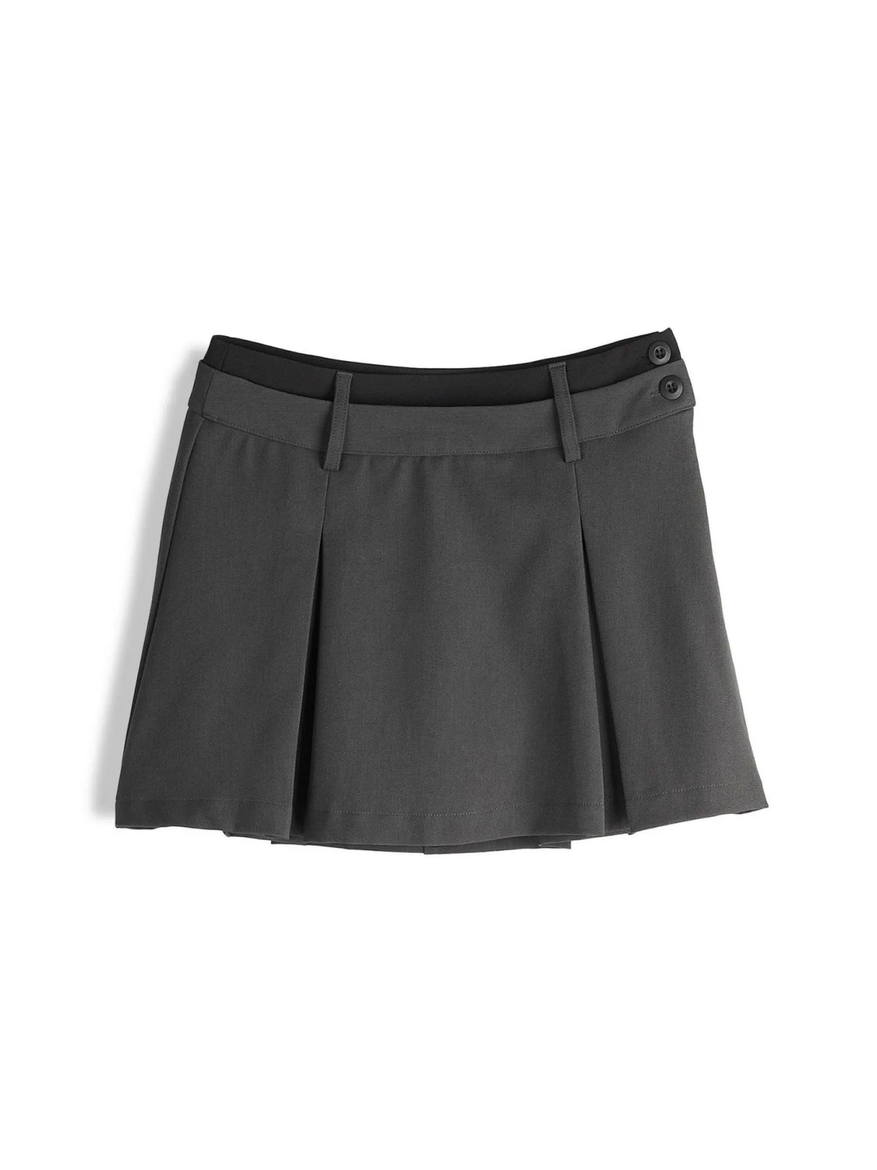 Kolor: szaryKrój: plisowanyTyp: spódnicaDługość: miniPattern style: pojedynczy kolorDetal: na guzikiMateriał: synt…