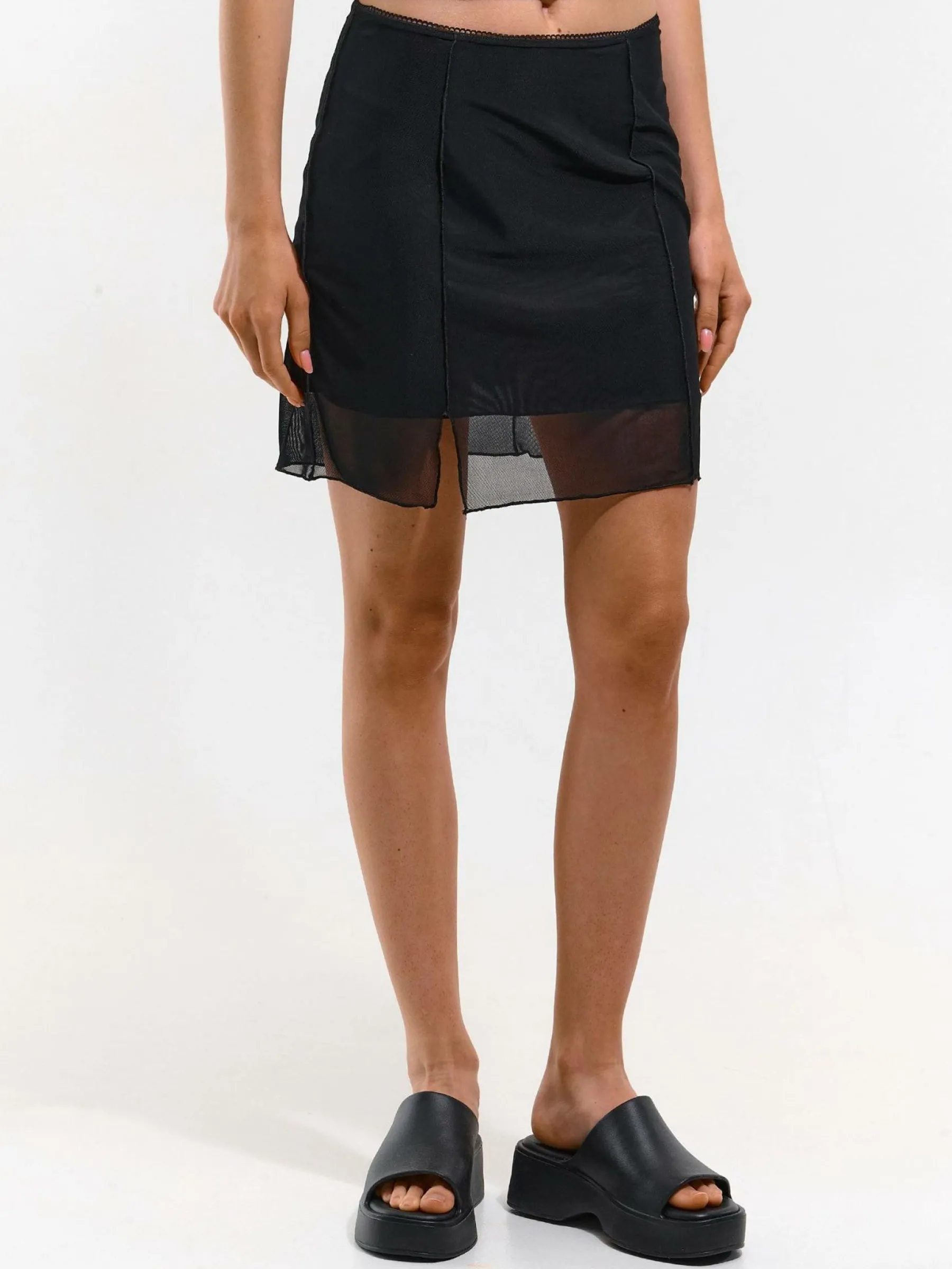 Kolor: czarnyKrój: regularTyp: spódnicaDługość: miniPattern style: pojedynczy kolorDetal: z halkąMateriał: syntet…
