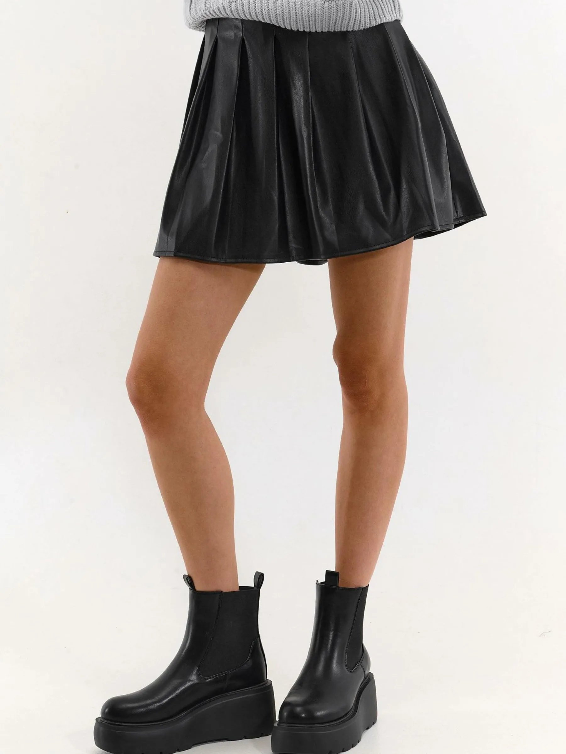 Kolor: czarnyKrój: plisowanyTyp: spódnicaDługość: miniPattern style: pojedynczy kolorDetal: na zamekMateriał: sztu…