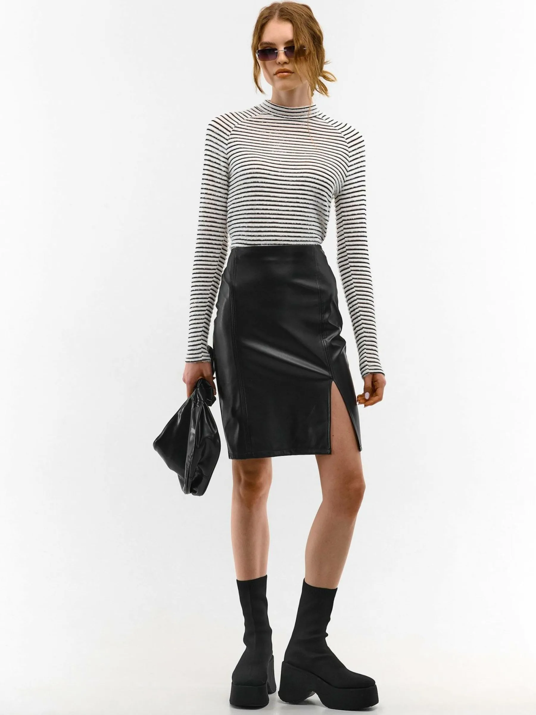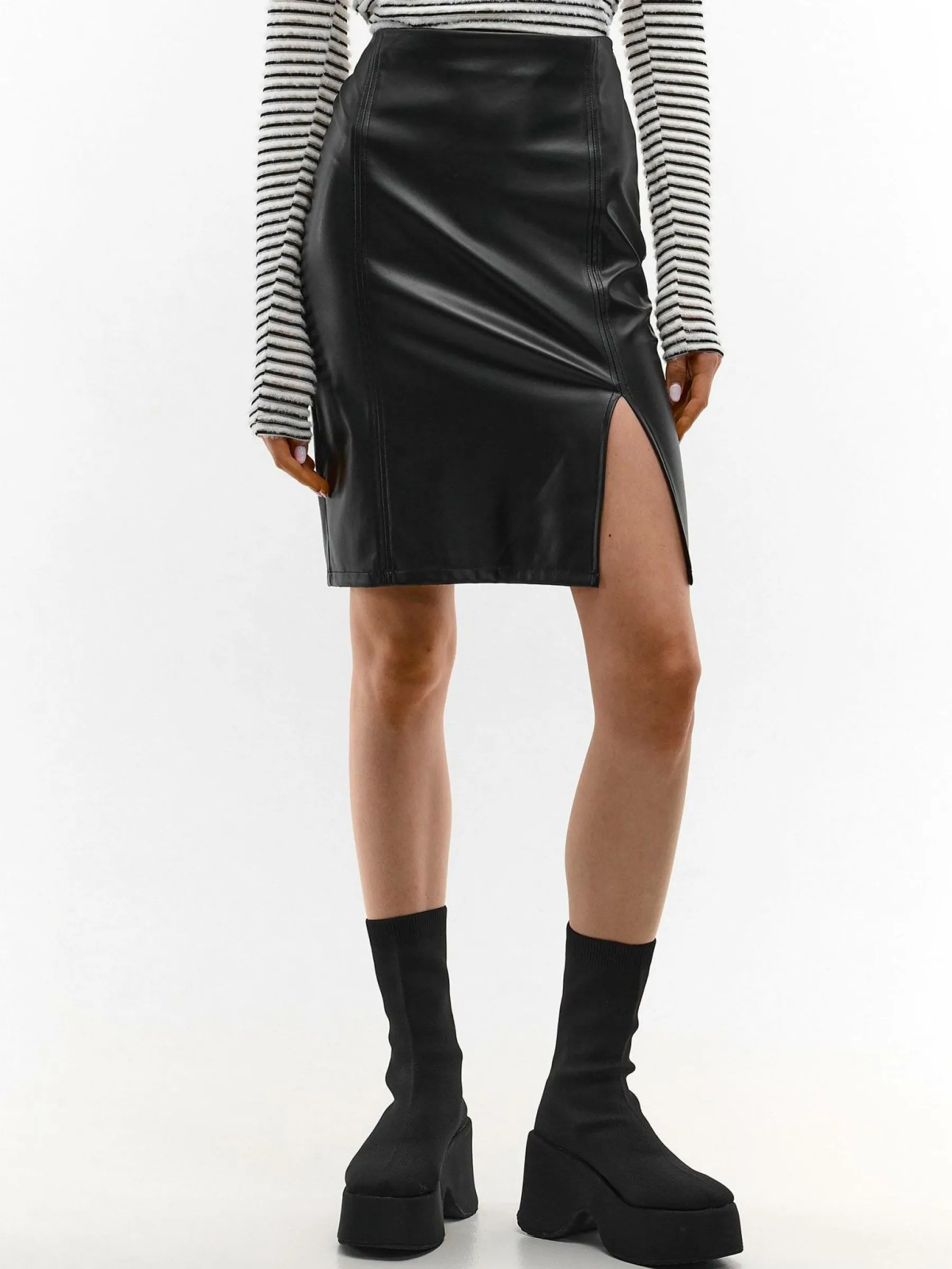 Kolor: czarnyKrój: podstawowyTyp: spódnicaDługość: miniPattern style: pojedynczy kolorDetal: na zamek, z rozcięcie…