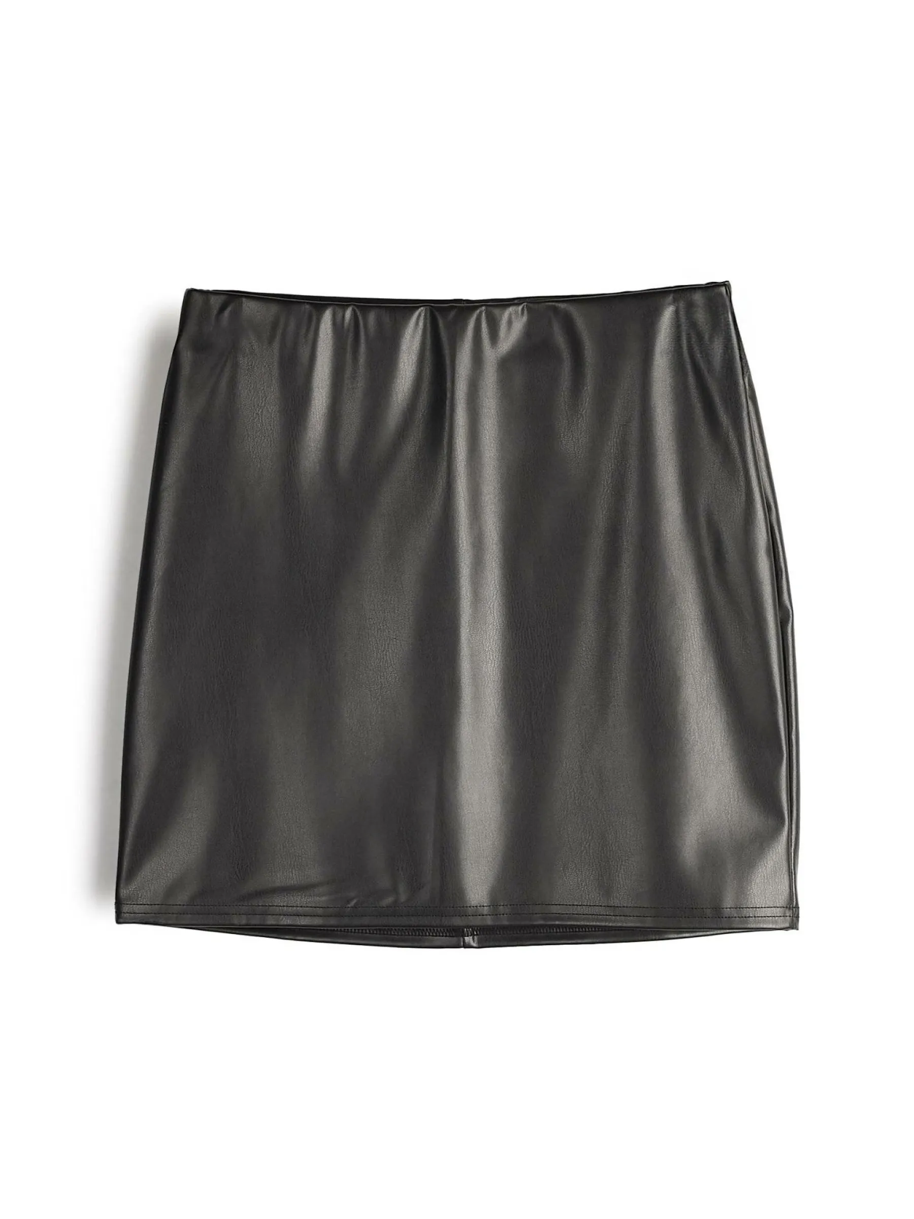 Kolor: czarnyKrój: regularTyp: spódnicaDługość: miniPattern style: pojedynczy kolorDetal: na zamekMateriał: sztucz…