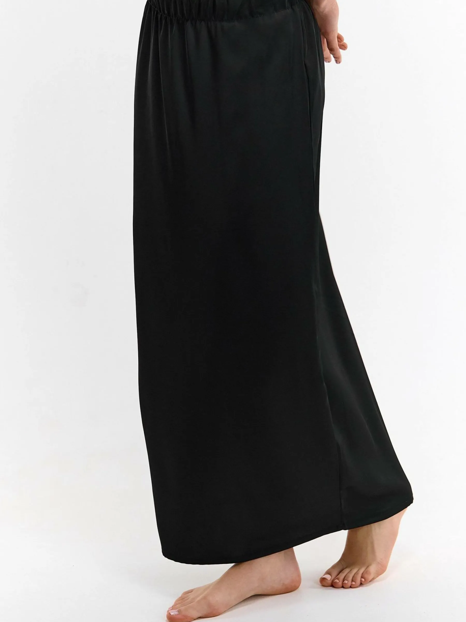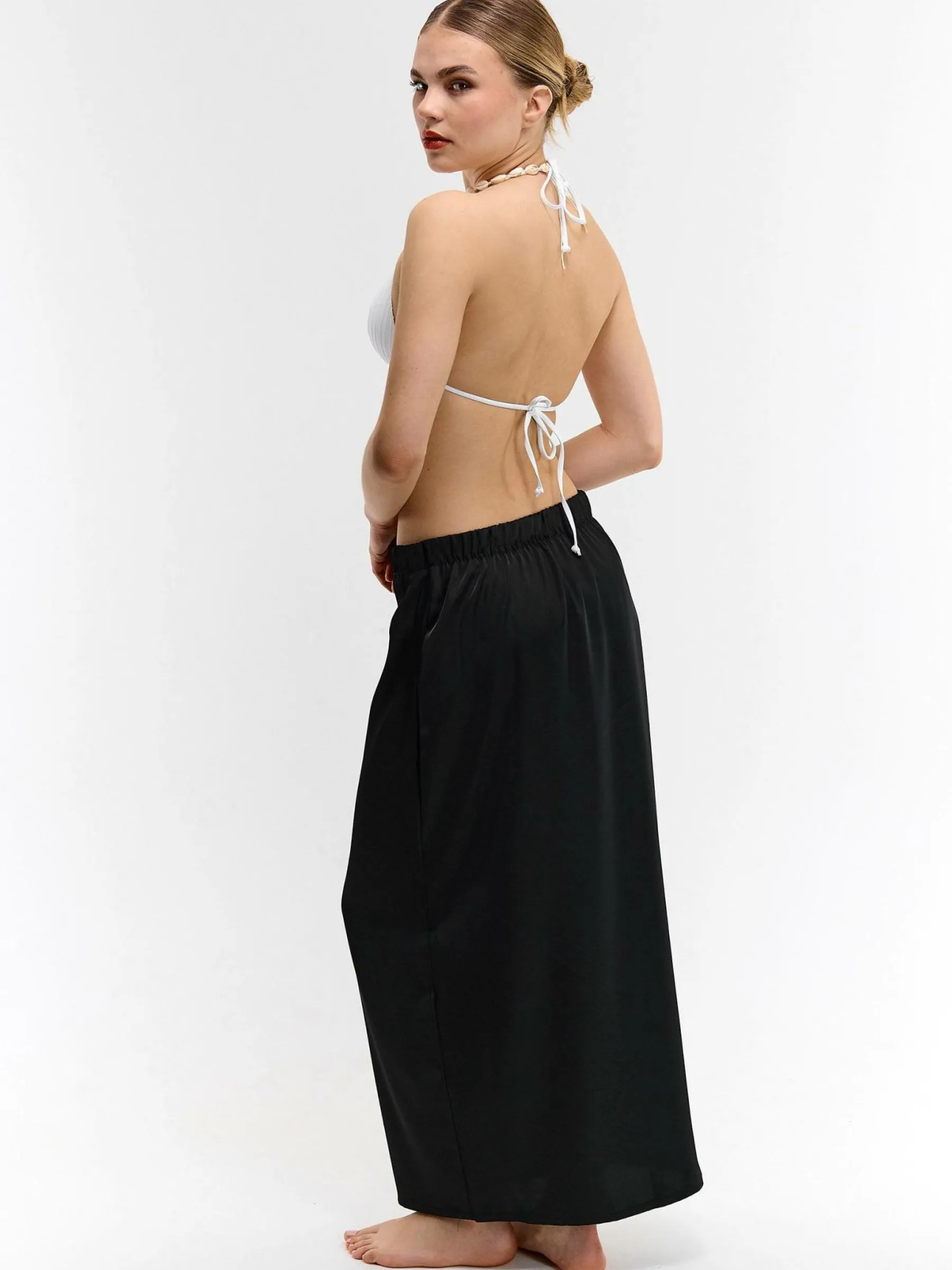 Kolor: czarnyKrój: podstawowyTyp: spódnicaDługość: maxiPattern style: pojedynczy kolorDetal: z elastyczną opaskąM…