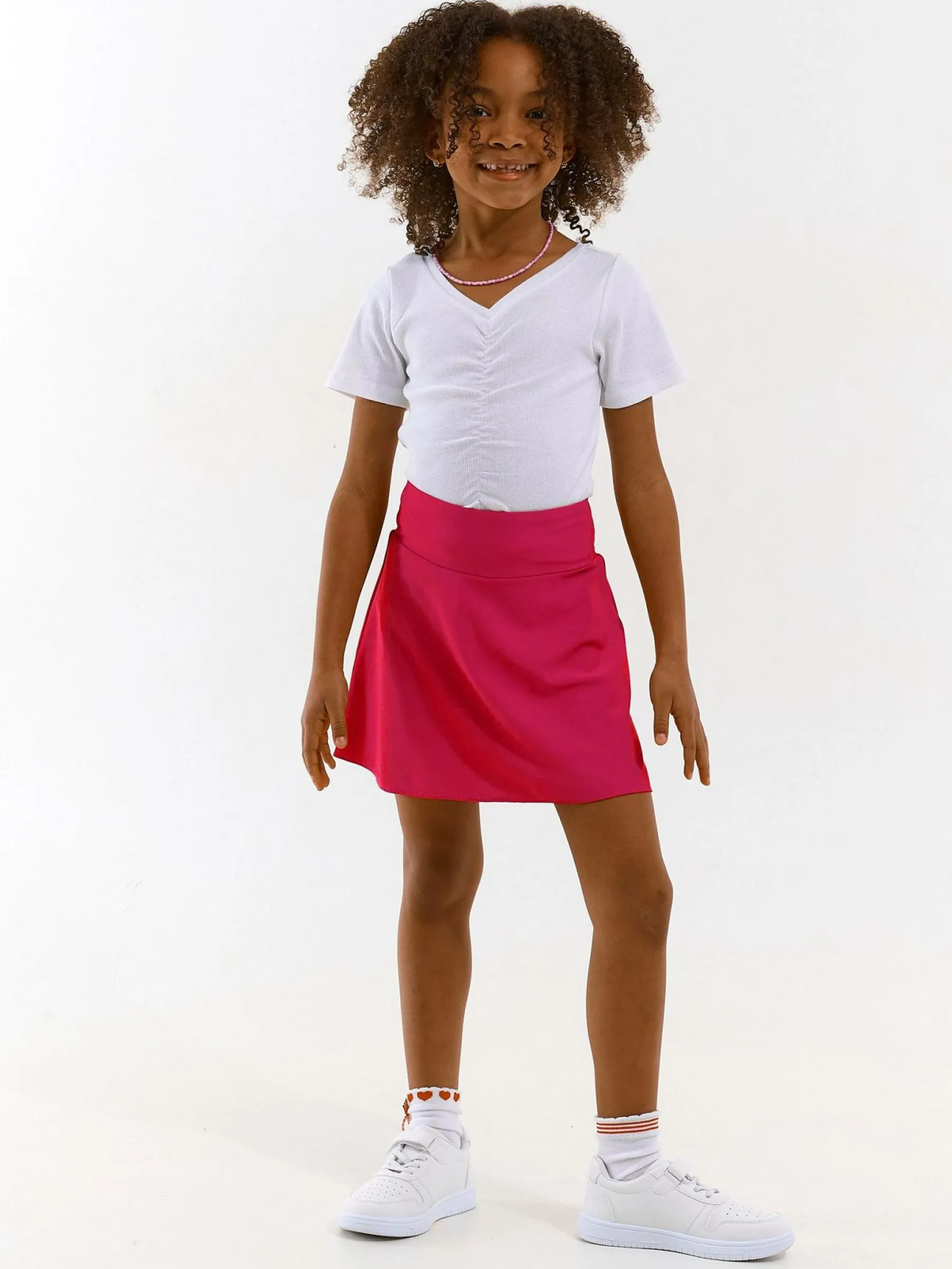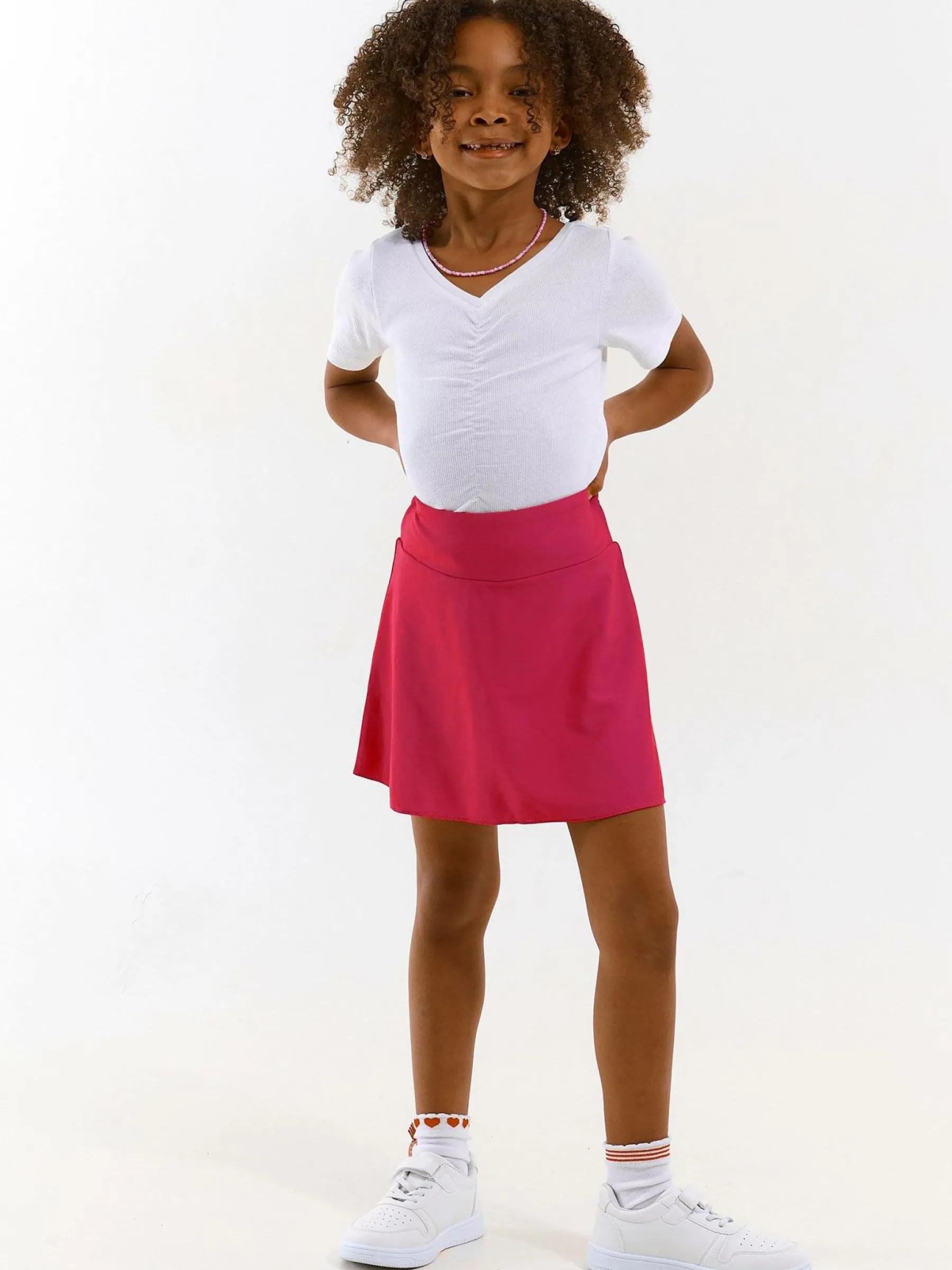 Kolor: różowyKrój: asyTyp: spódnicaDługość: miniPattern style: pojedynczy kolorMateriał: syntetycznePłeć: dzie…