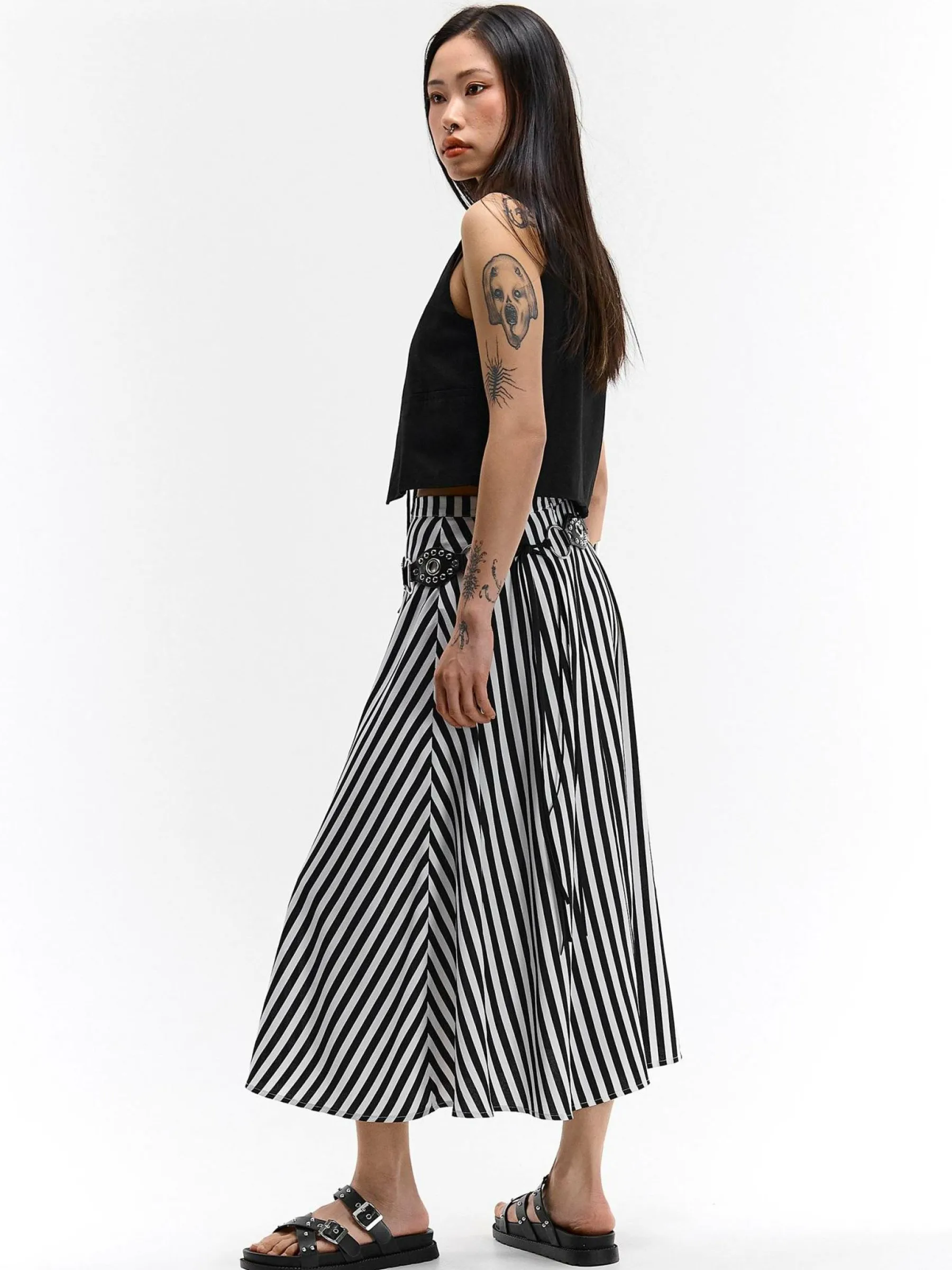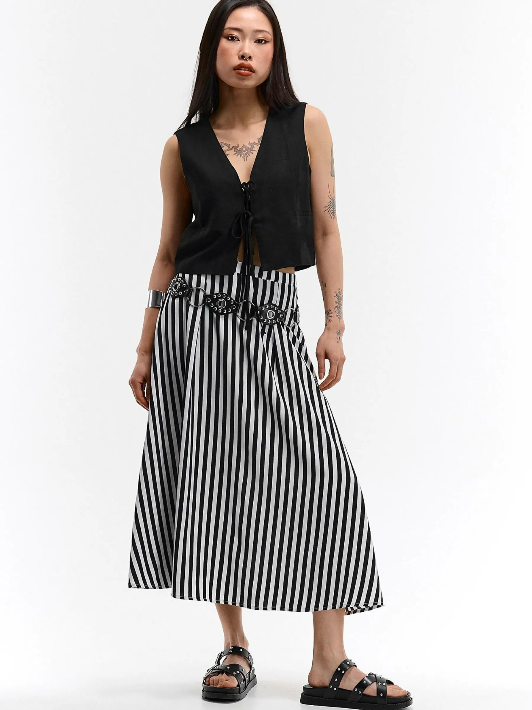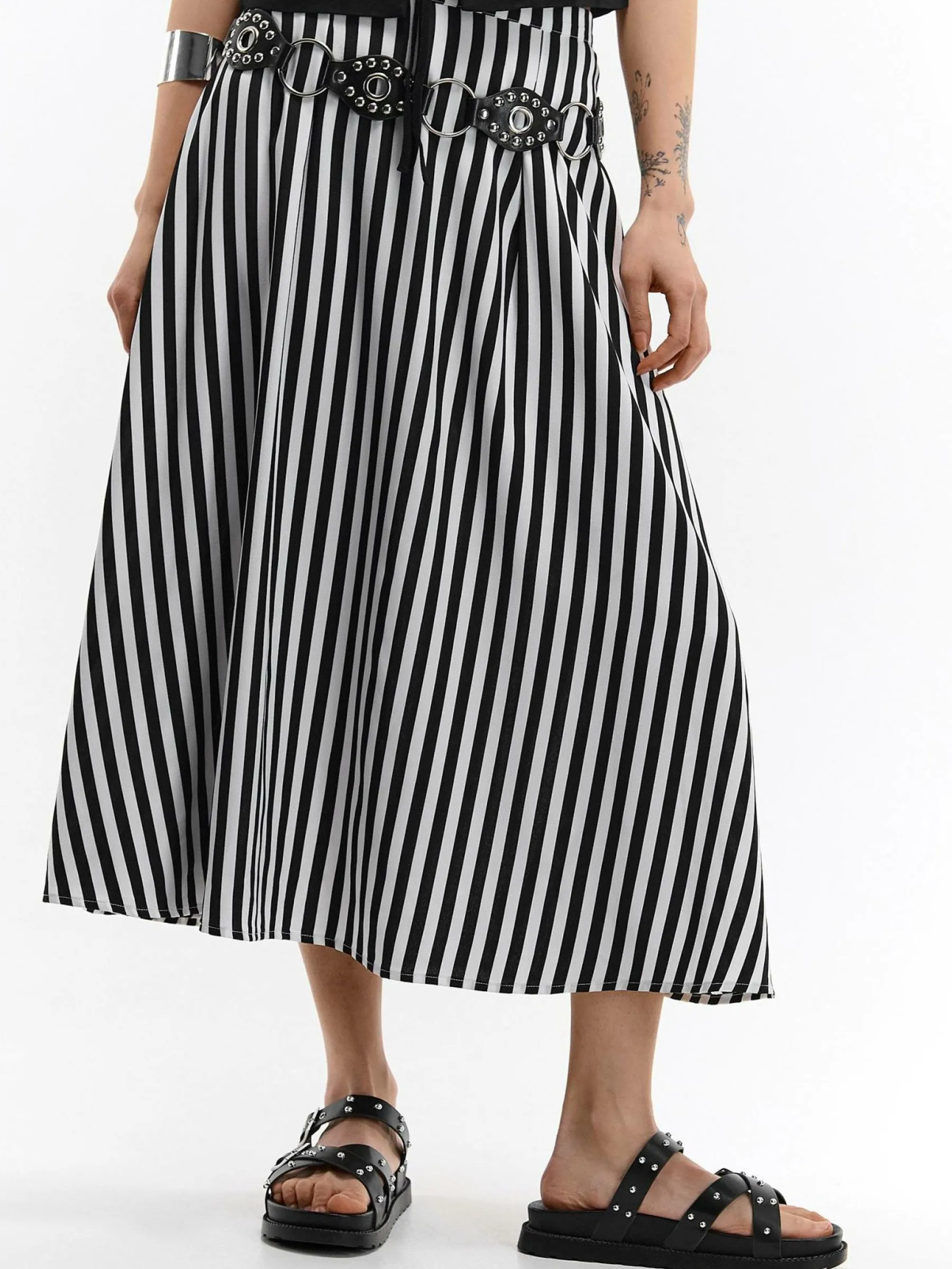 Kolor: czarnyKrój: asyTyp: spódnicaDługość: midiPattern style: w prążkiMateriał: syntetycznePłeć: kobietyOkazj…
