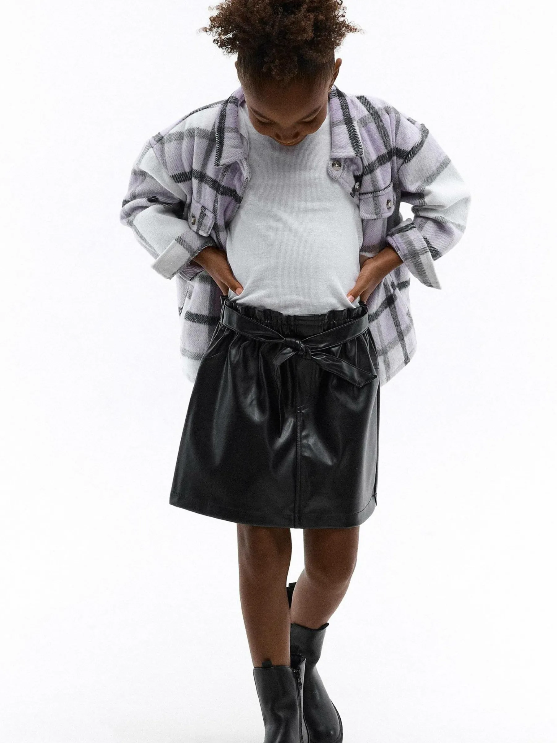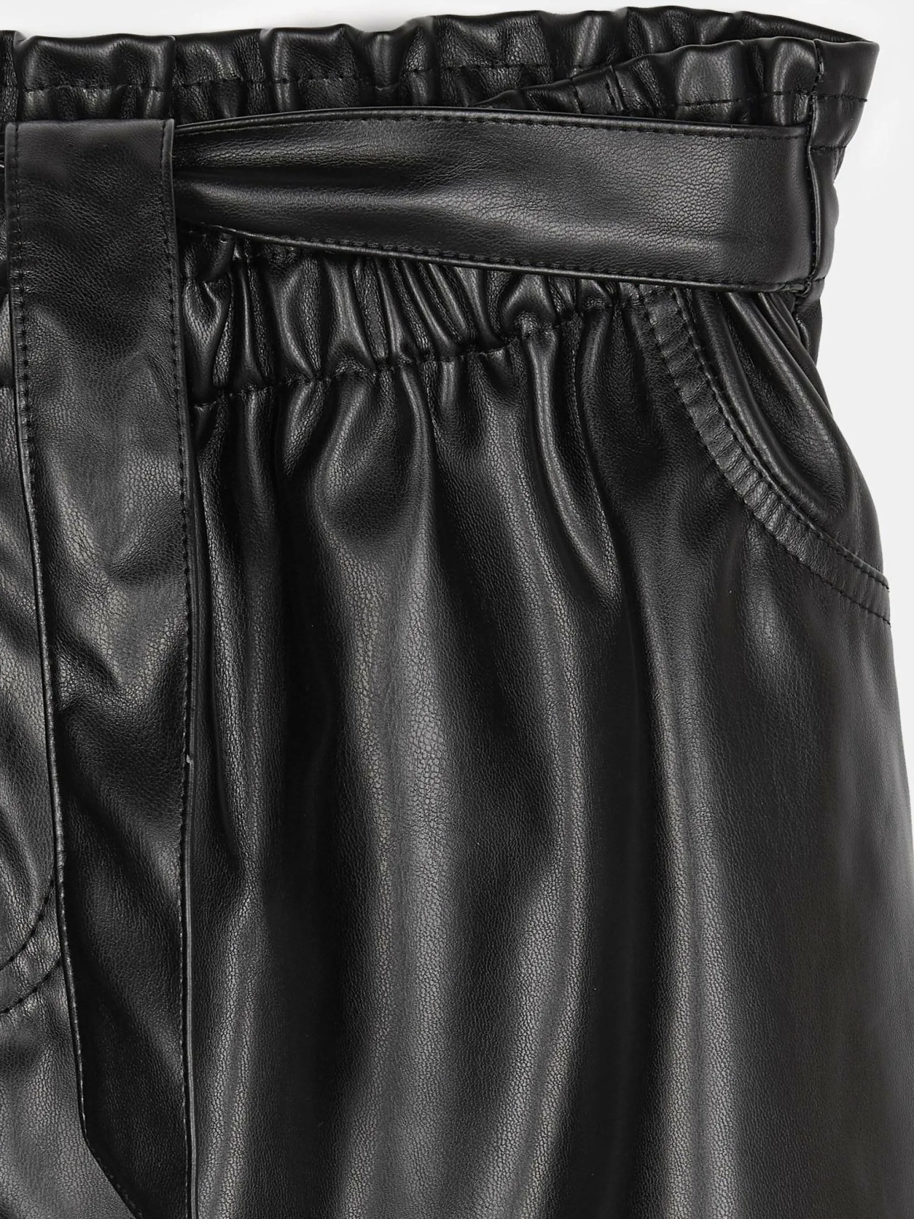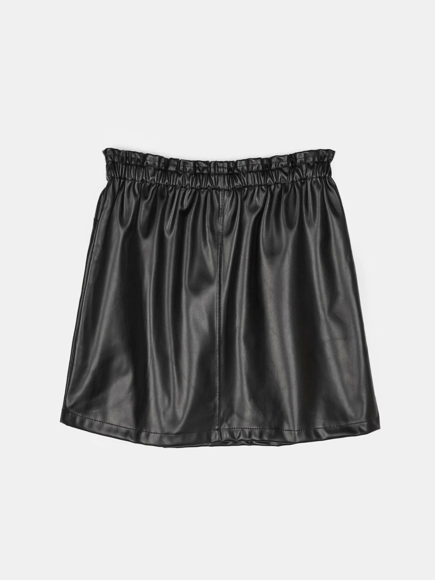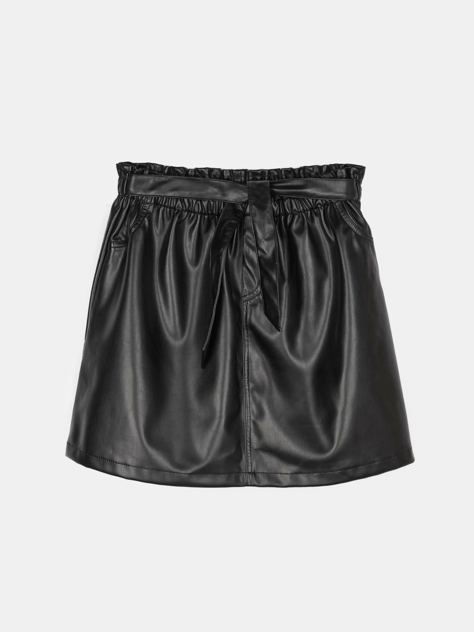 Kolor: czarnyKrój: paperbagTyp: spódnicaDługość: miniPattern style: pojedynczy kolorDetal: z paskiem, z elastyczną…