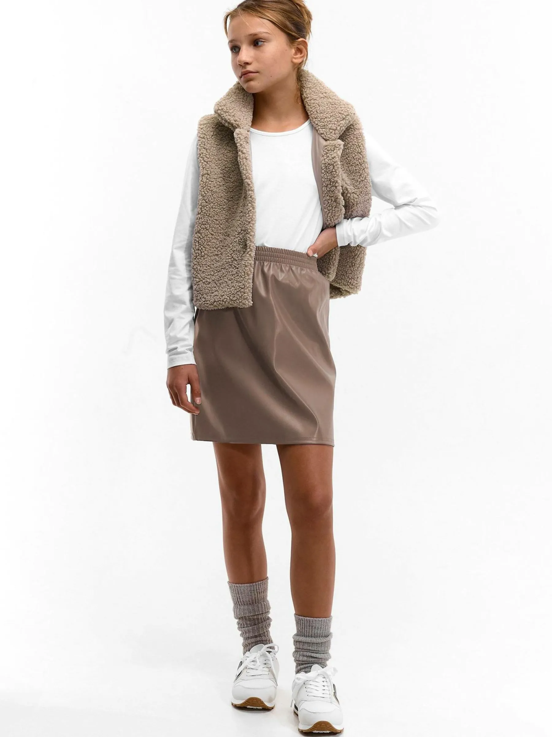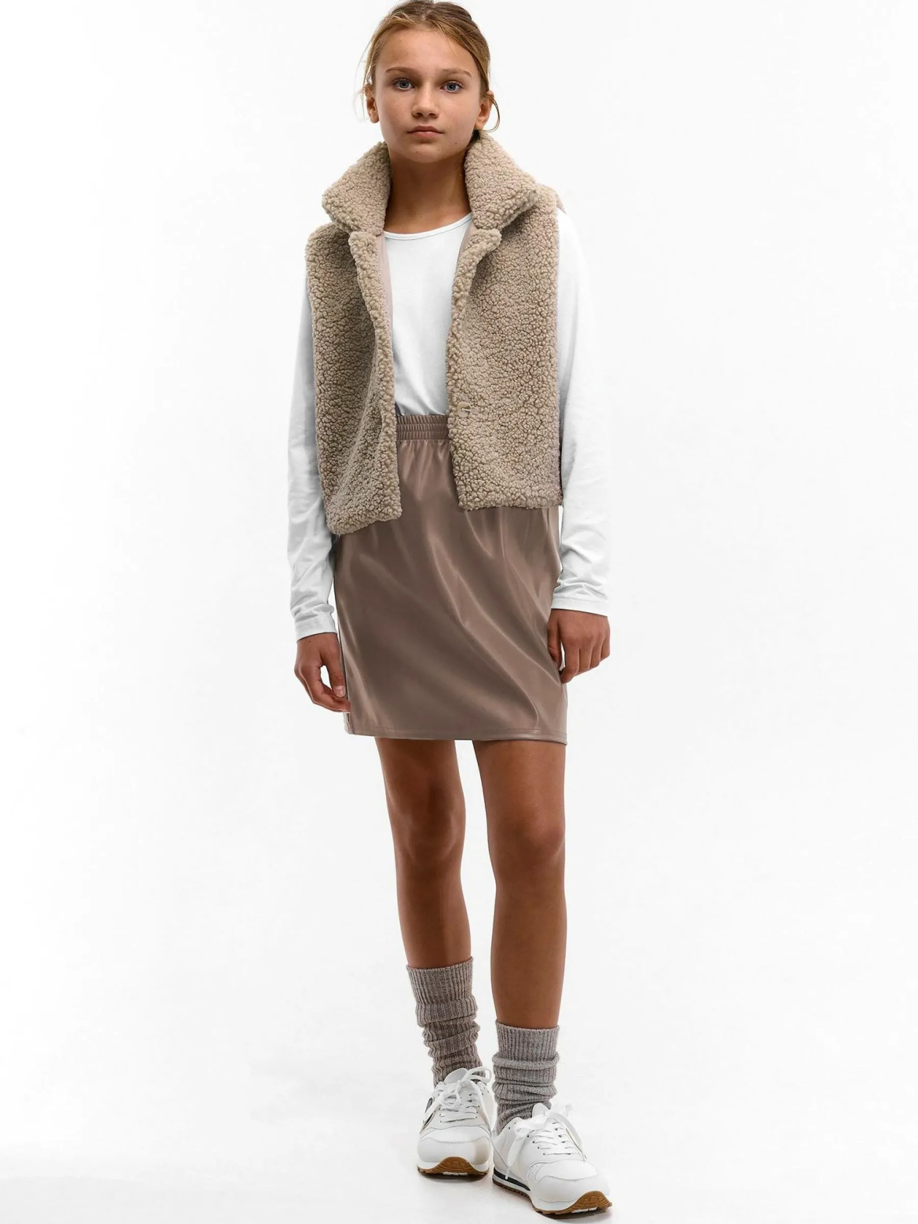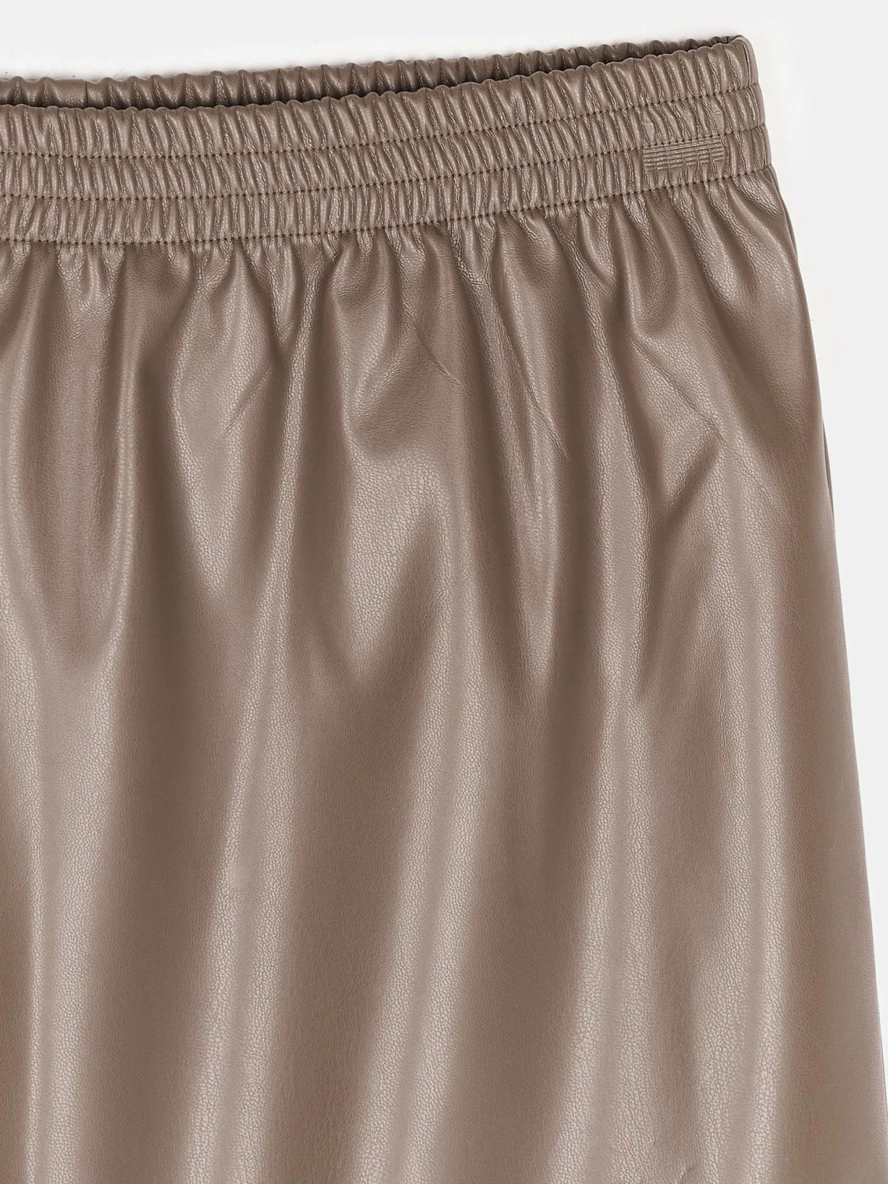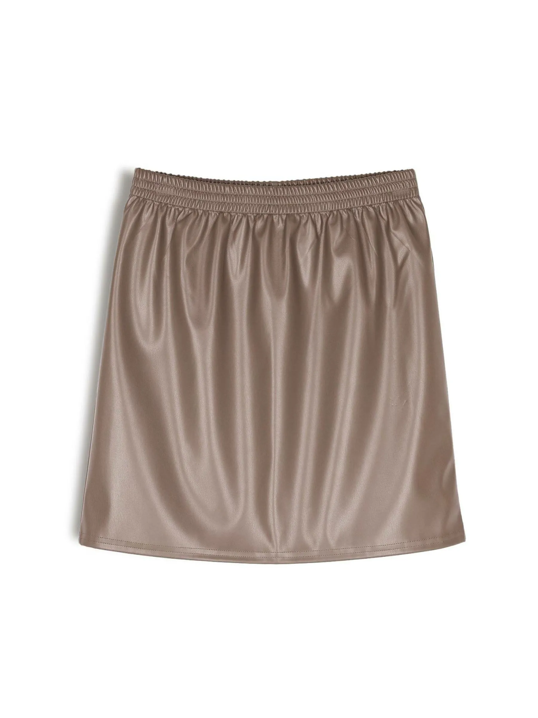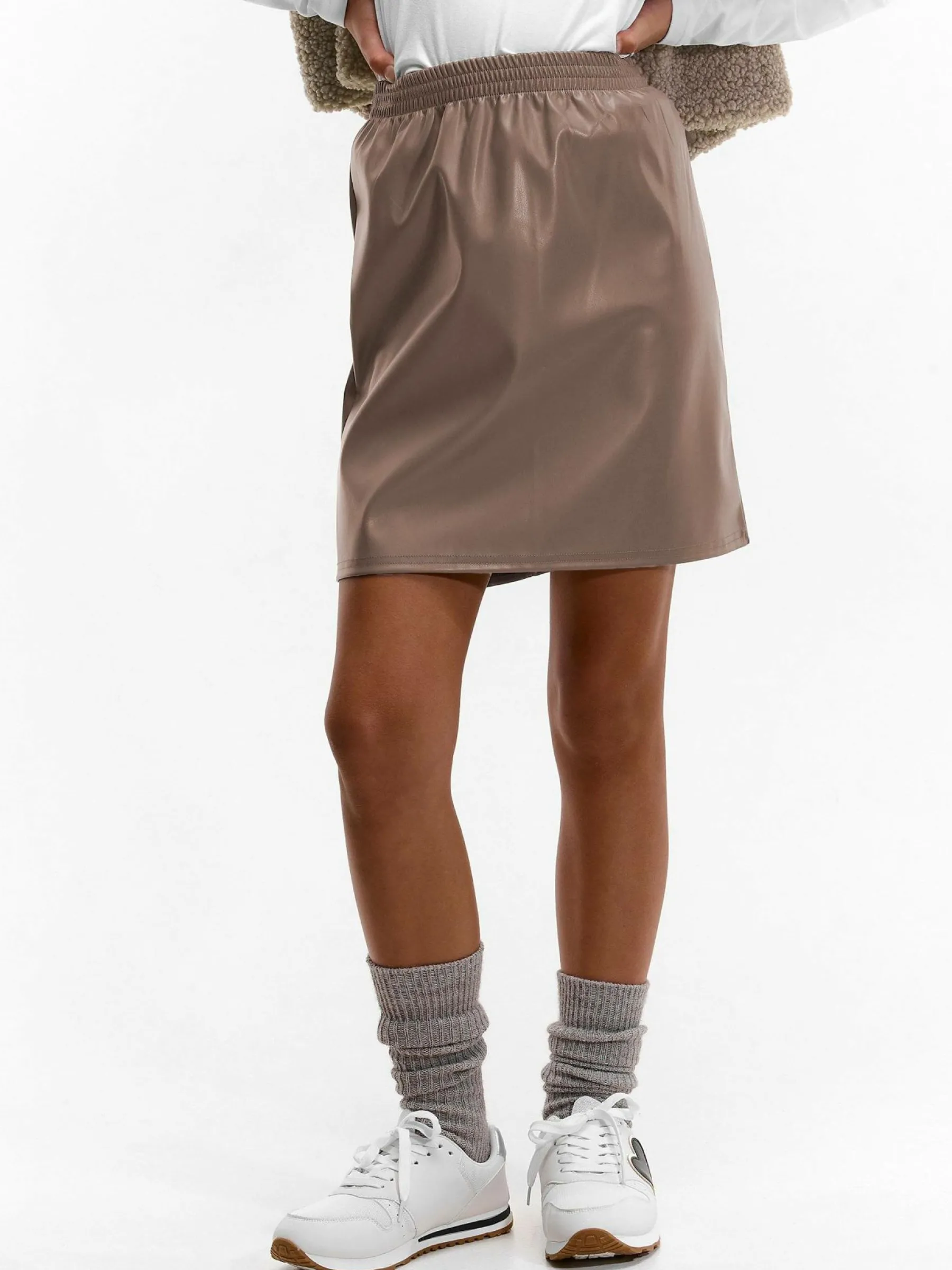 Kolor: brązowyKrój: z marszczeniemTyp: spódnicaDługość: miniPattern style: pojedynczy kolorDetal: z elastyczną op…