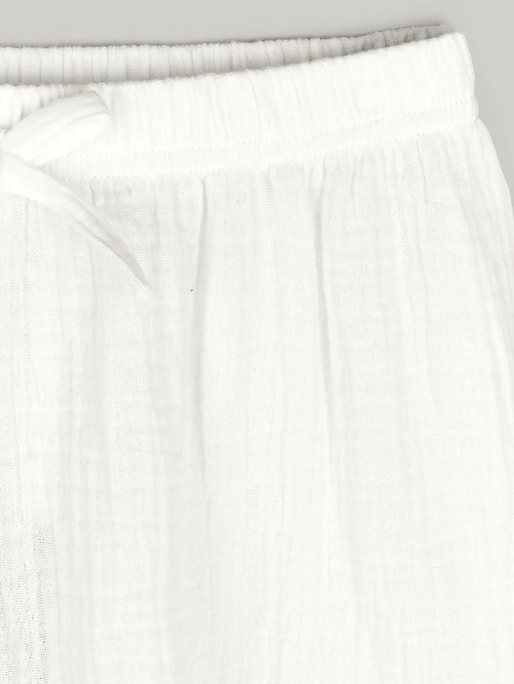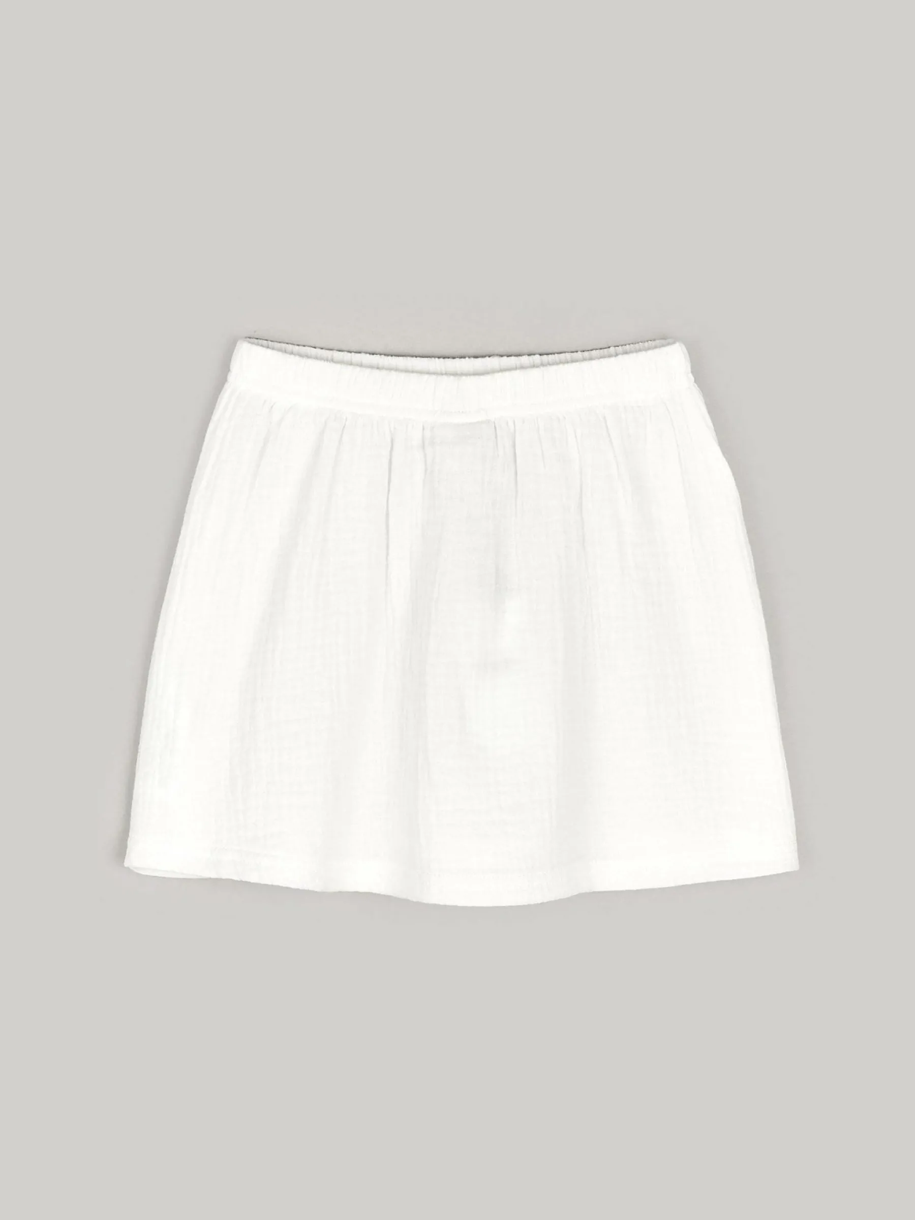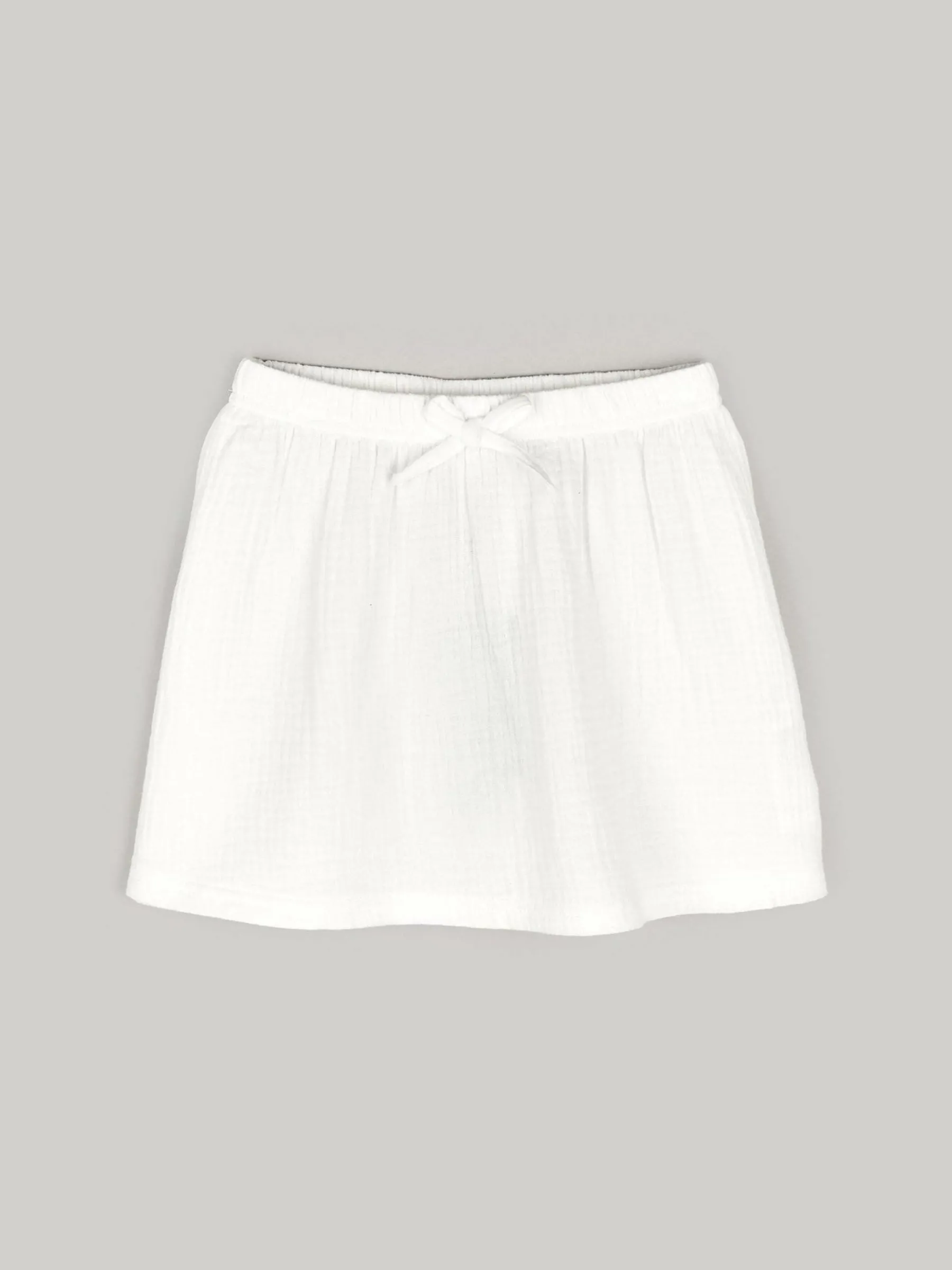 Kolor: białyKrój: regularTyp: spódnicaDługość: miniPattern style: pojedynczy kolor, strukturowaneDetal: ze sznurow…