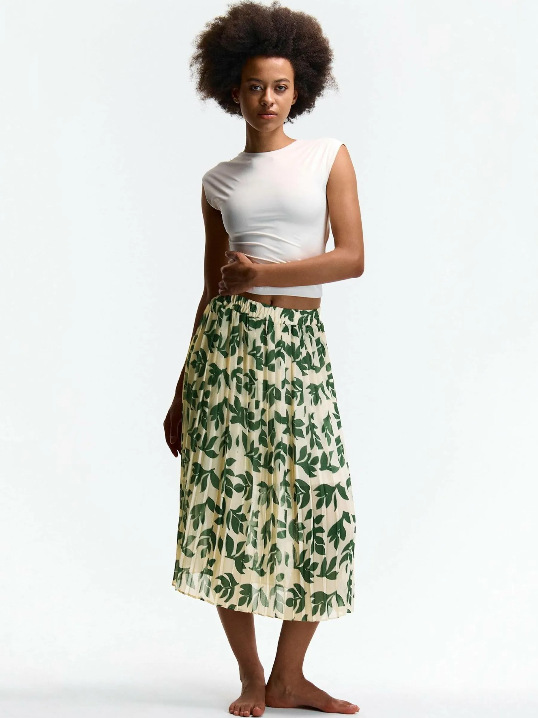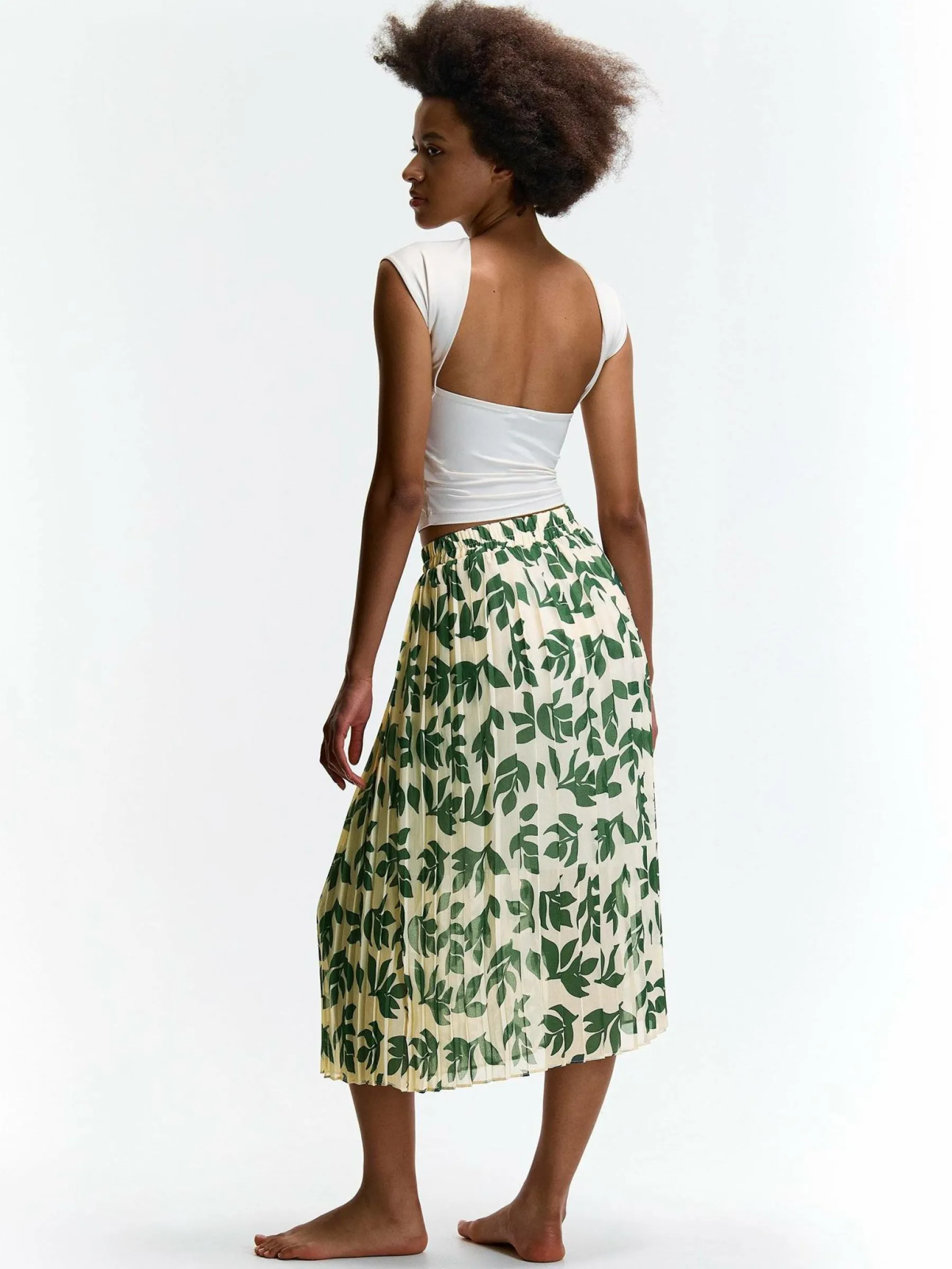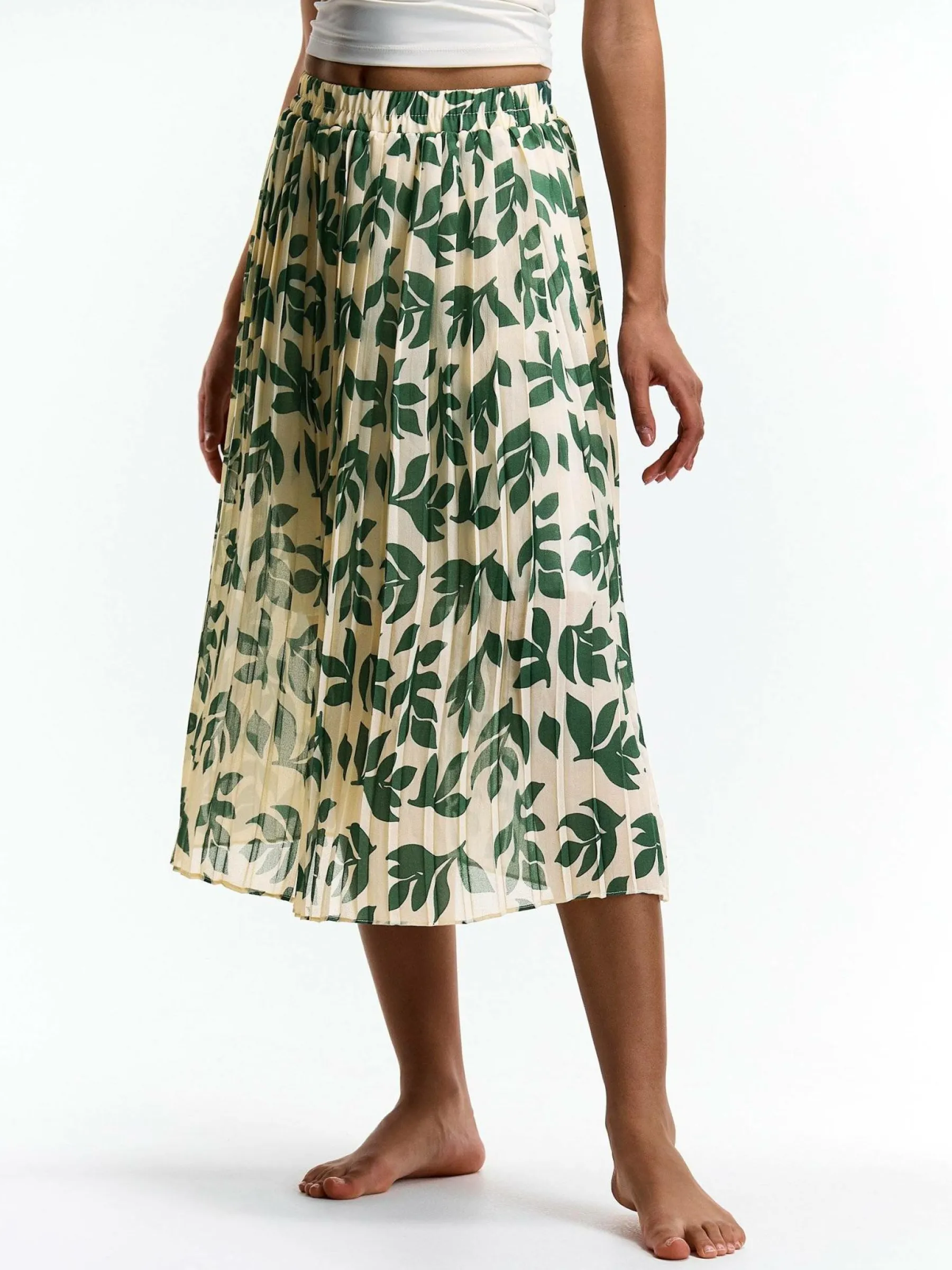 Kolor: zielonyKrój: plisowaneTyp: spódnicaDługość: midiPattern style: wzorzysteDetal: z elastyczną opaską, z halk…