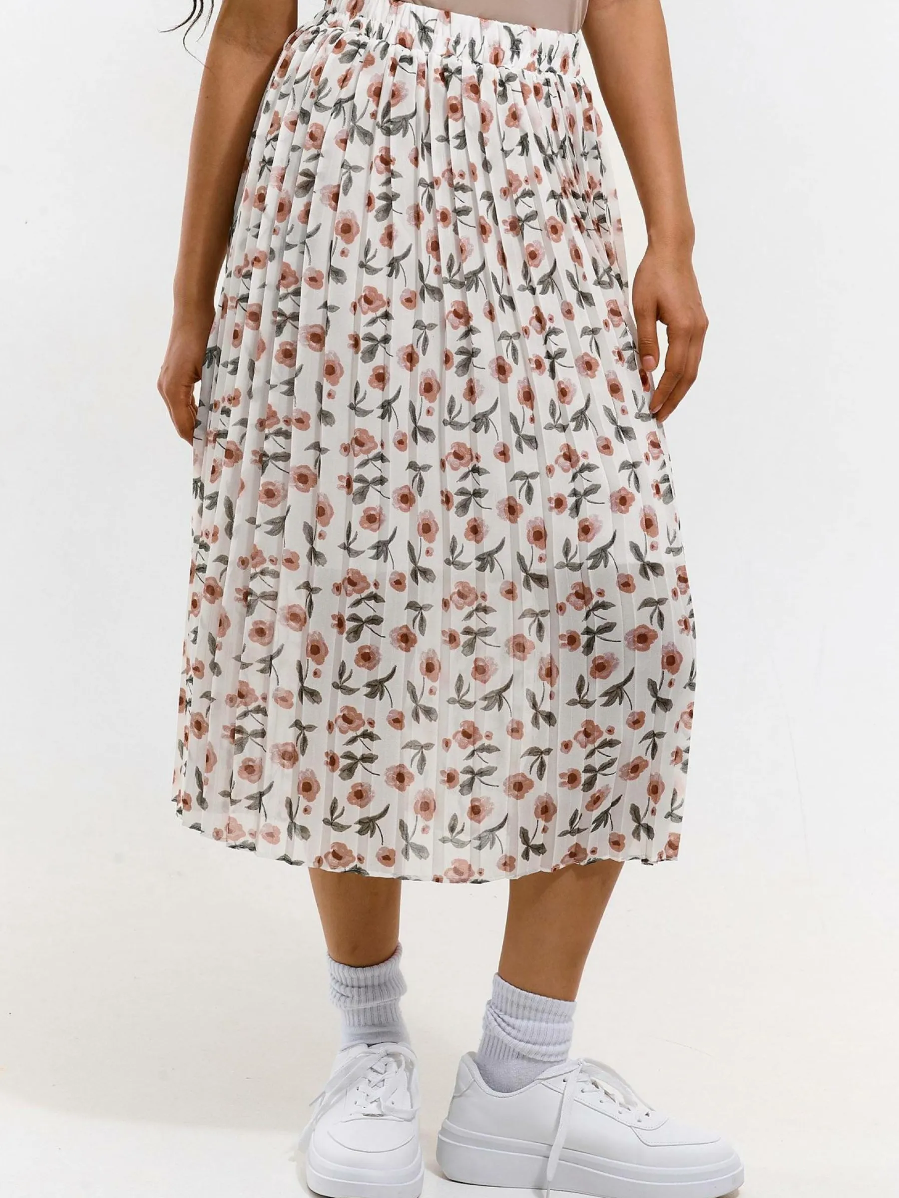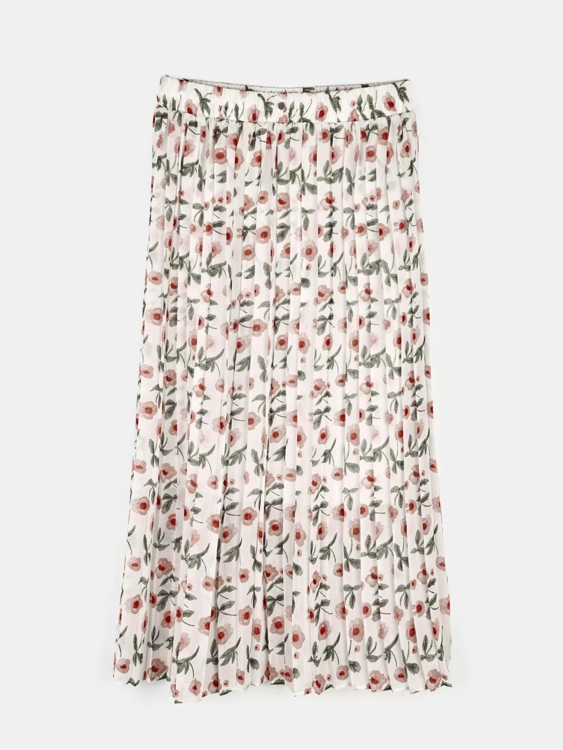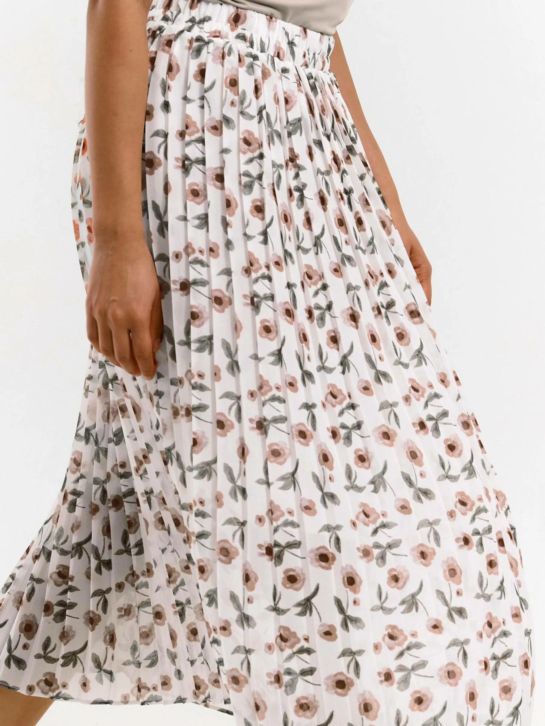Kolor: białyKrój: plisowaneTyp: spódnicaDługość: midiPattern style: kwiatoweDetal: z elastyczną opaskąMateriał:…