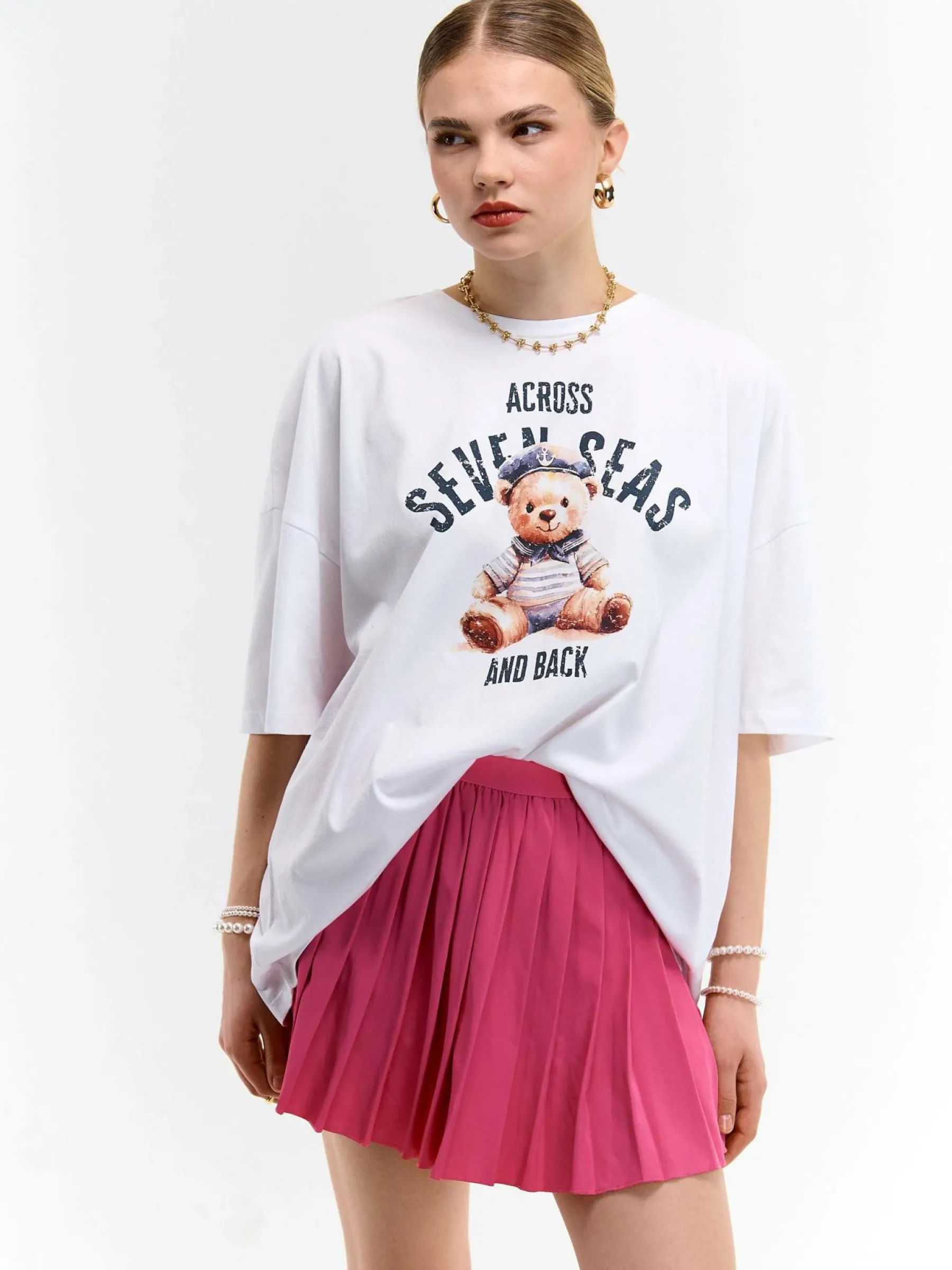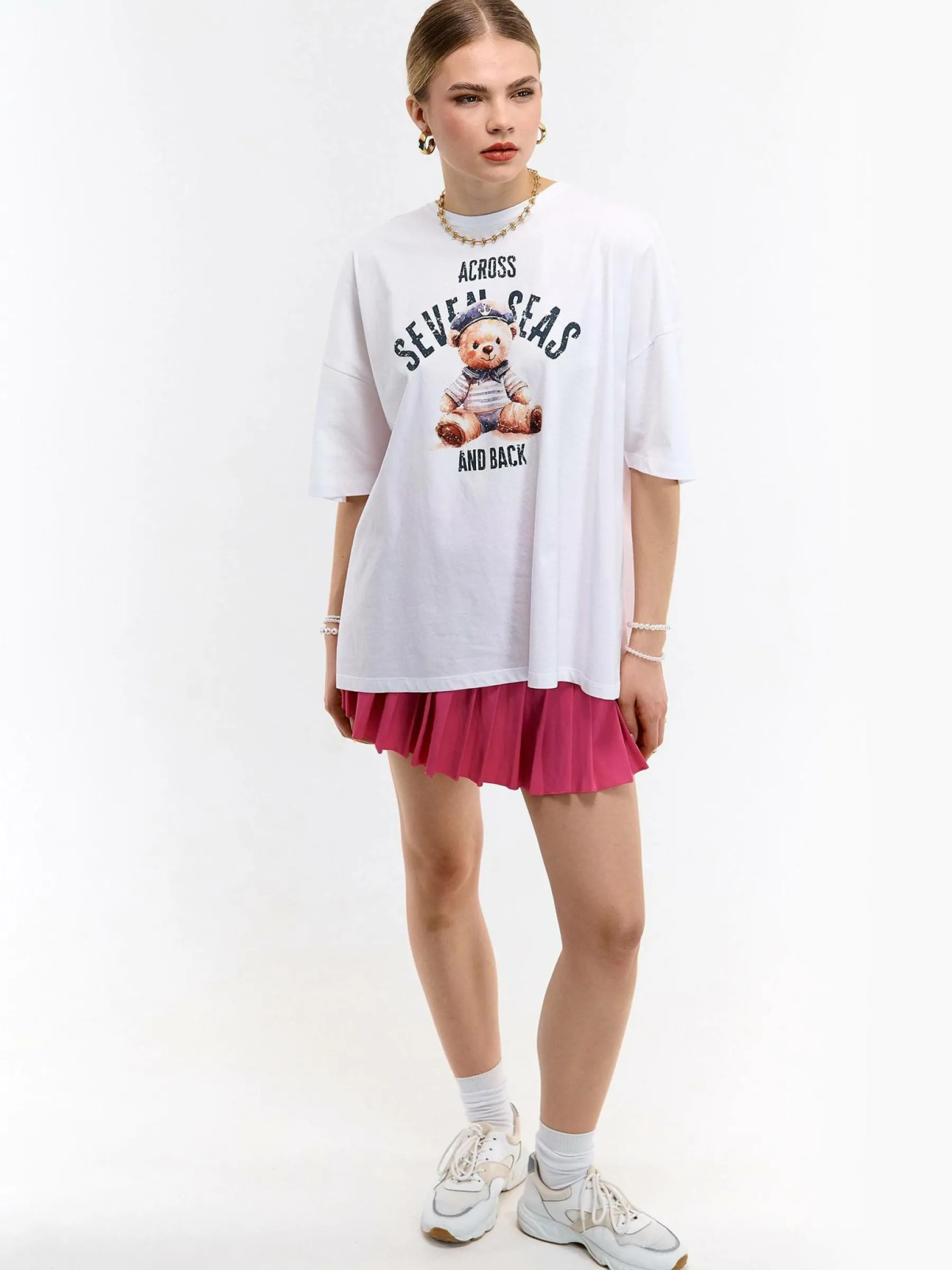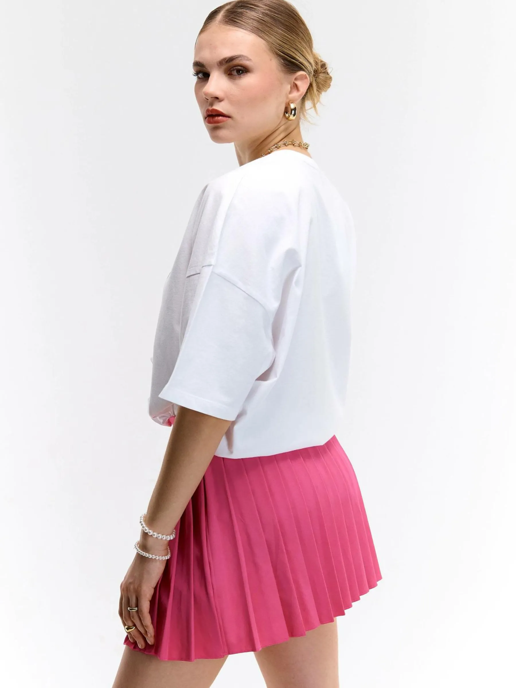 Kolor: różowyKrój: plisowanyTyp: spódnicaDługość: miniPattern style: pojedynczy kolorDetal: z elastyczną opaską…