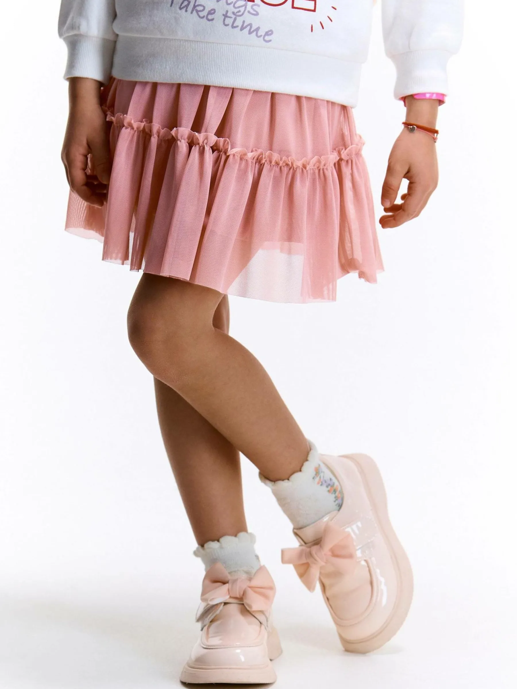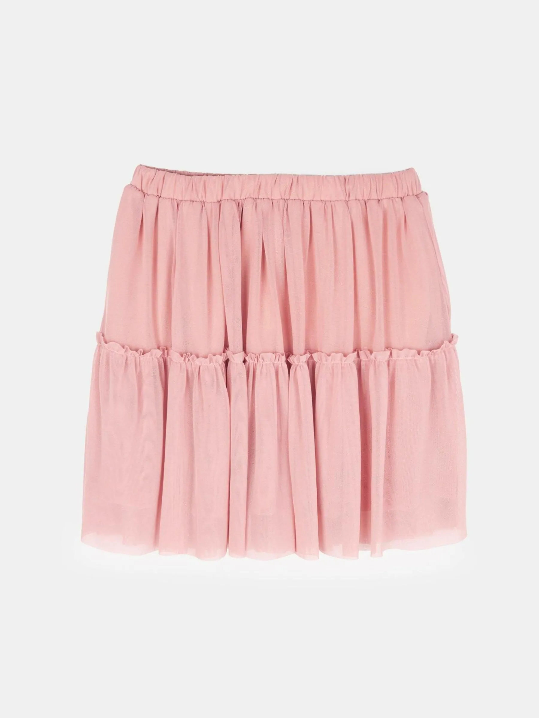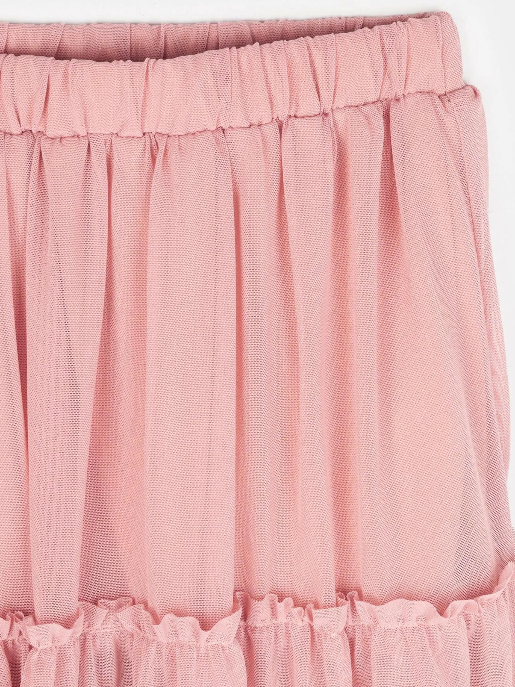 Kolor: beżowyKrój: z falbanąTyp: spódnicaDługość: miniPattern style: pojedynczy kolorDetal: z elastyczną opaską…