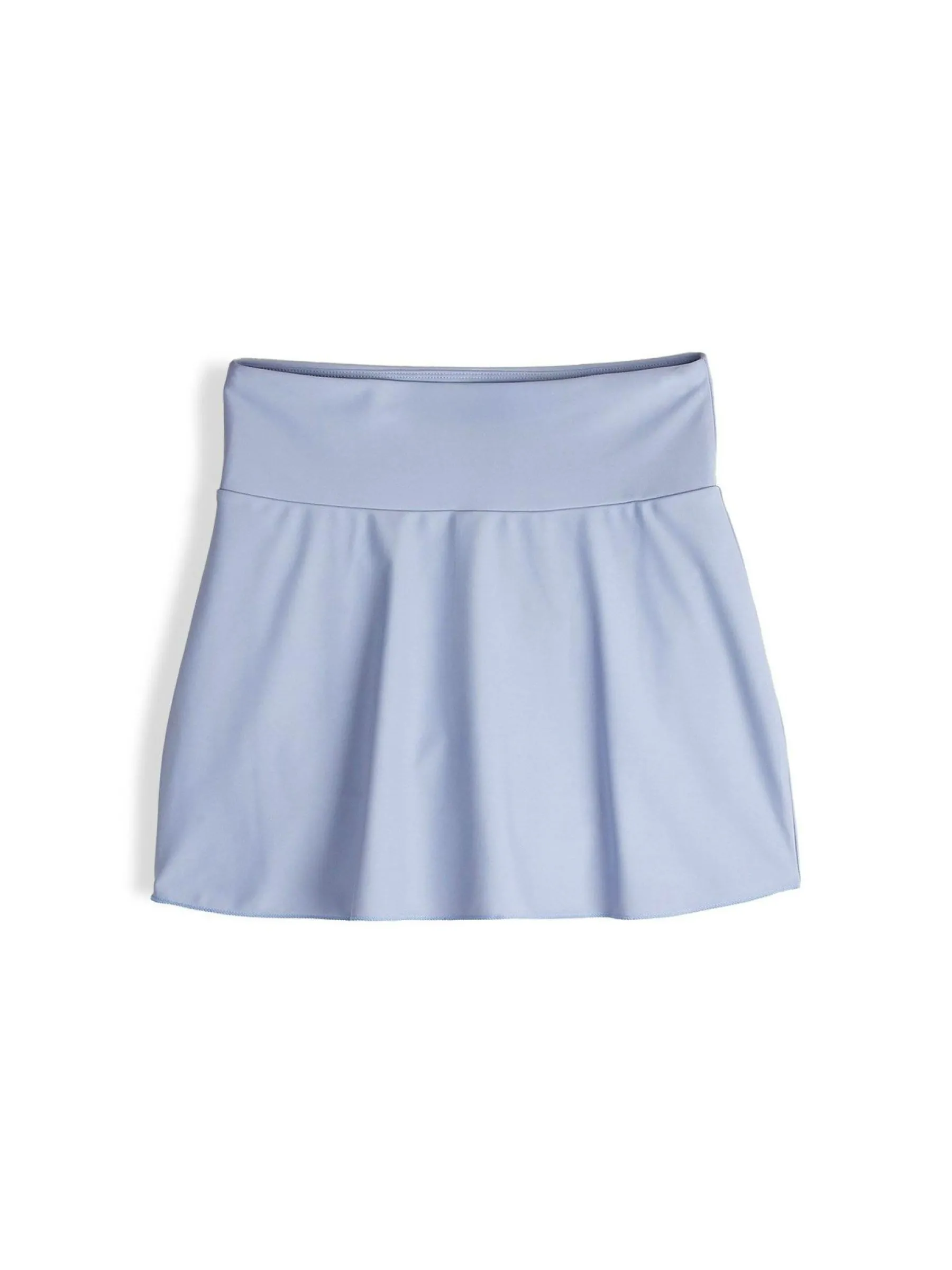 Kolor: niebieskiKrój: asyTyp: spódnicaDługość: miniPattern style: pojedynczy kolorDetal: z elastyczną opaskąMater…