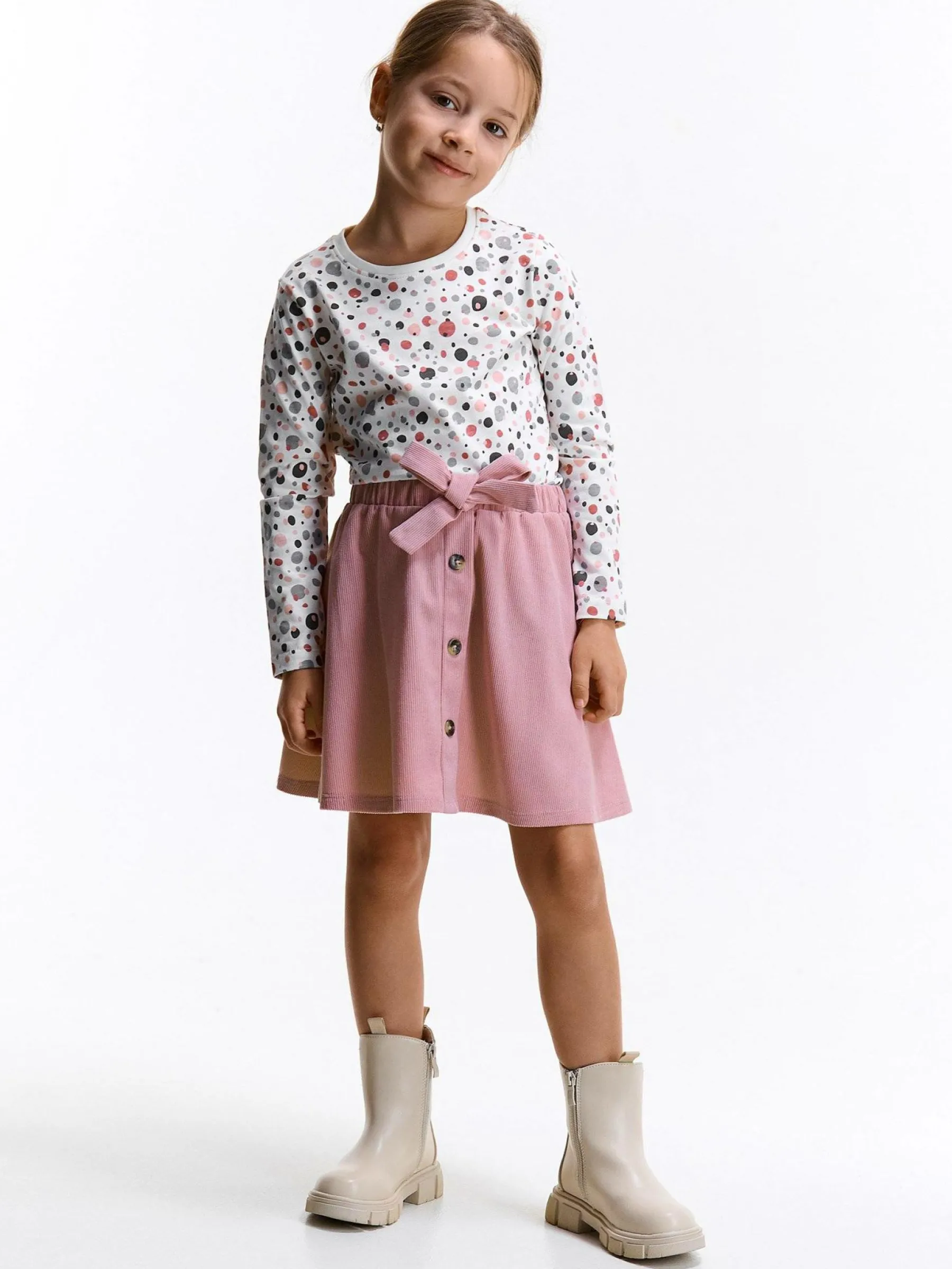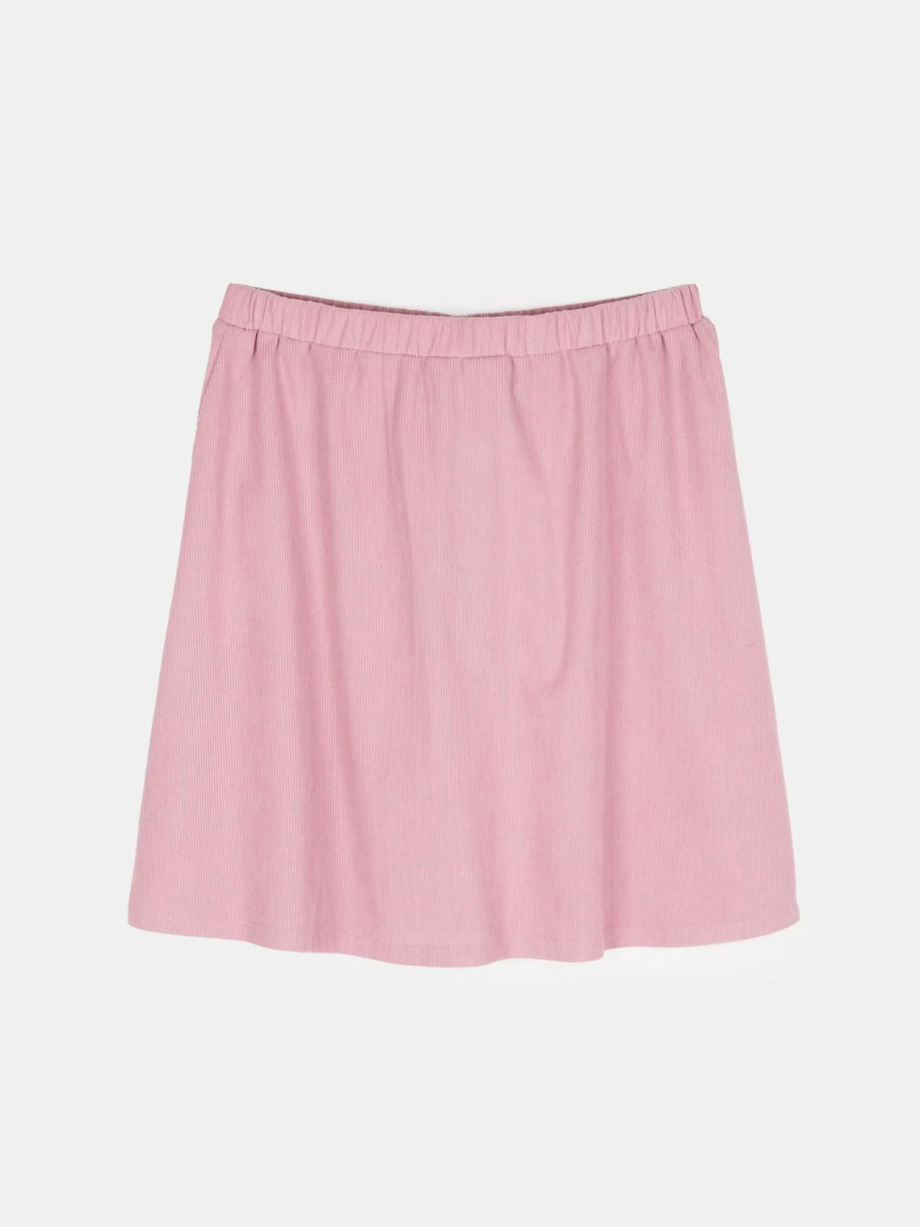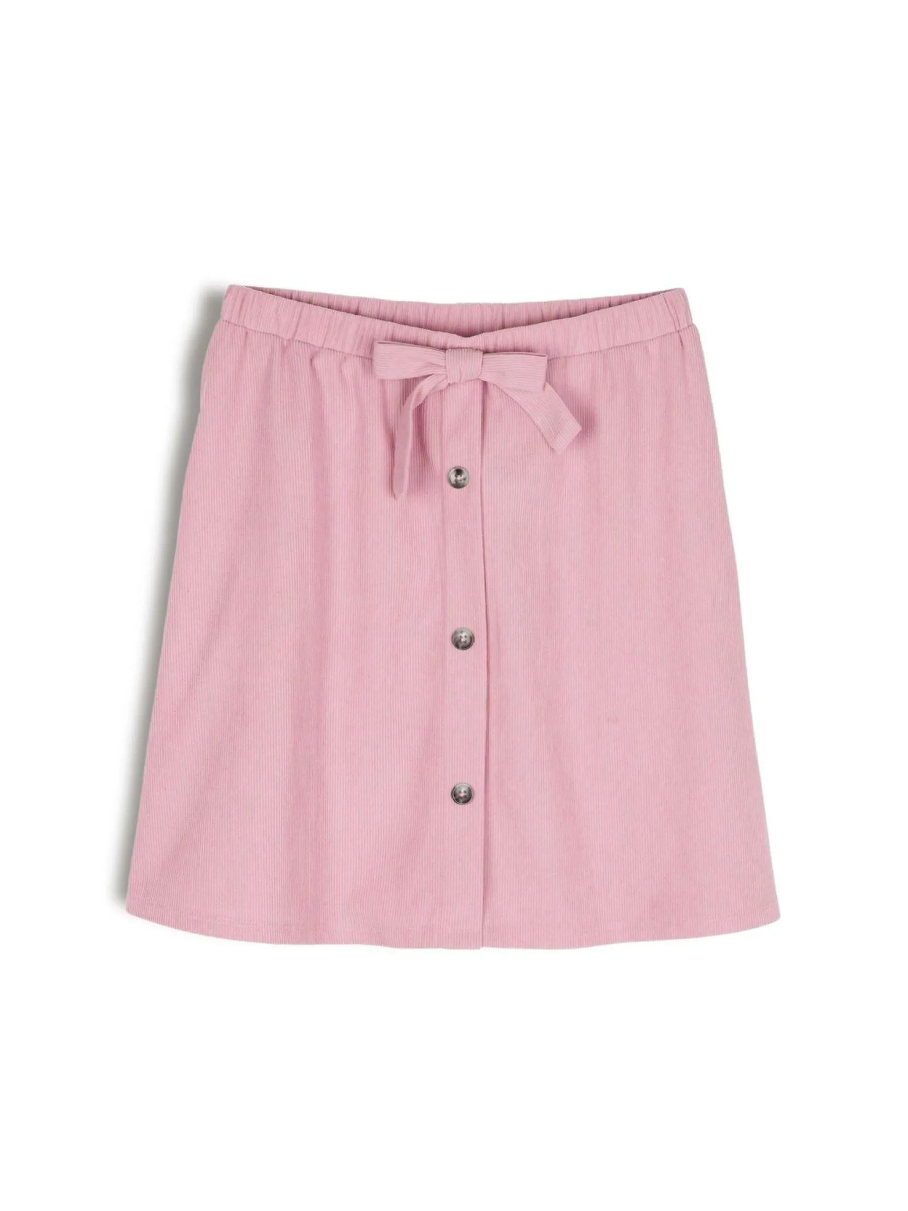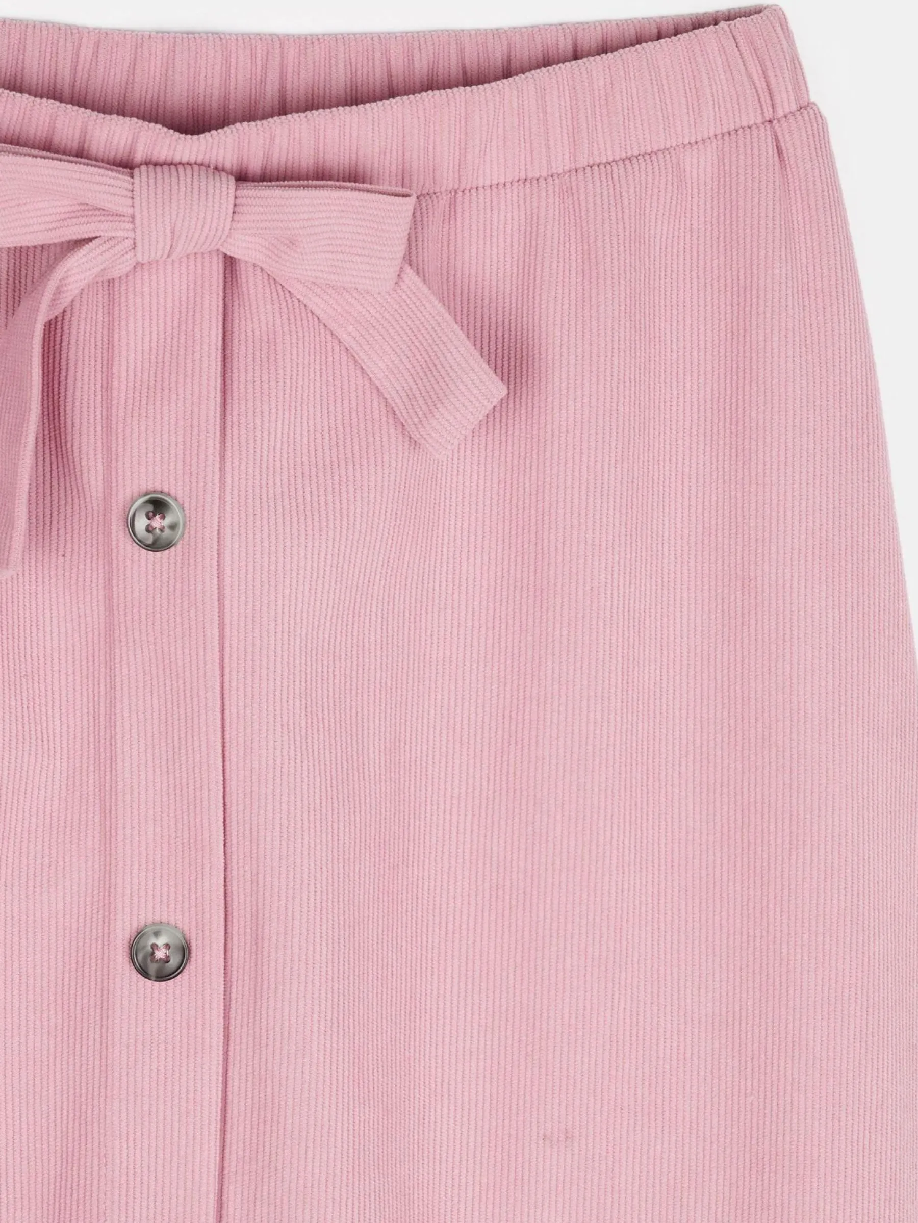 Kolor: różowyKrój: asyTyp: spódnicaDługość: miniPattern style: pojedynczy kolor, żebrowanyDetal: na guziki, z ko…