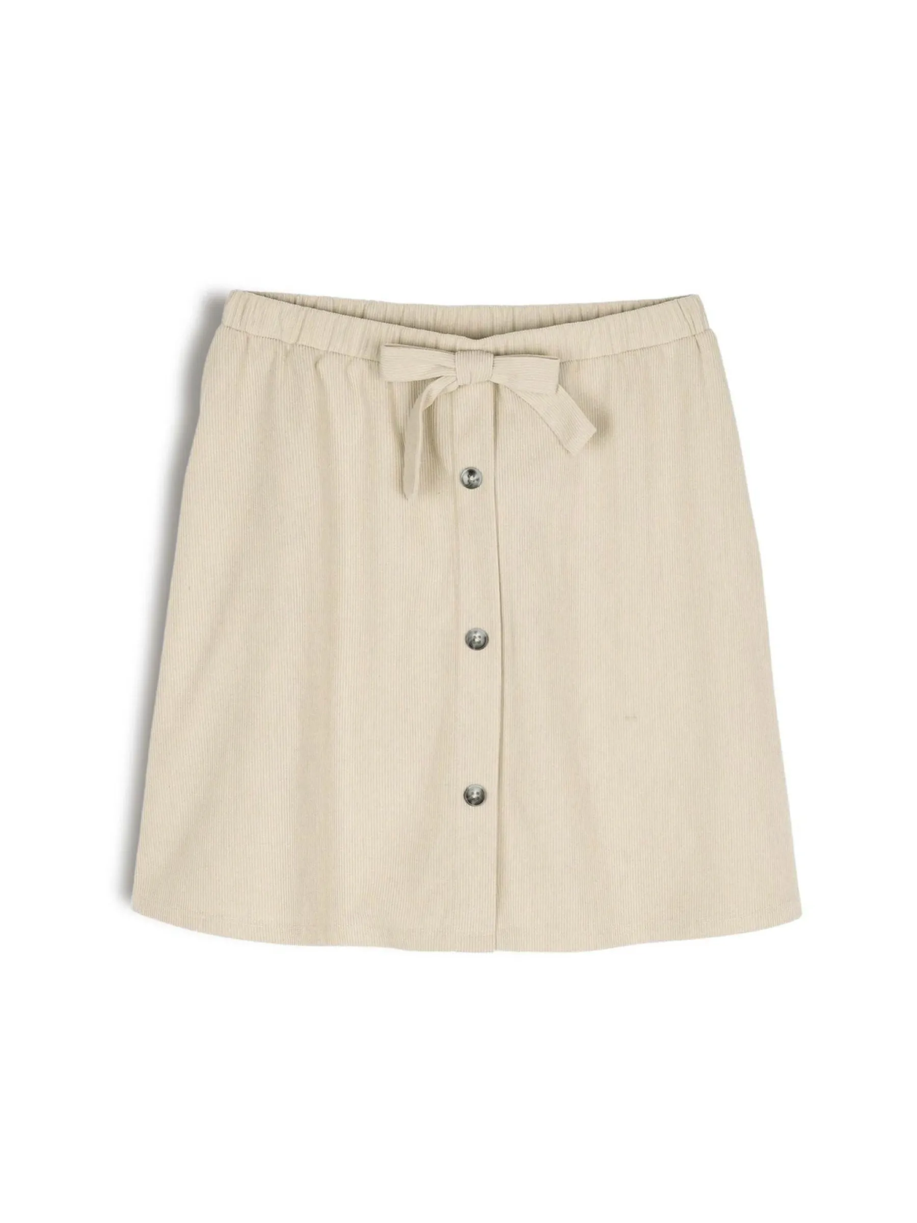 Kolor: beżowyKrój: asyTyp: spódnicaDługość: miniPattern style: pojedynczy kolor, żebrowanyDetal: na guziki, z kok…