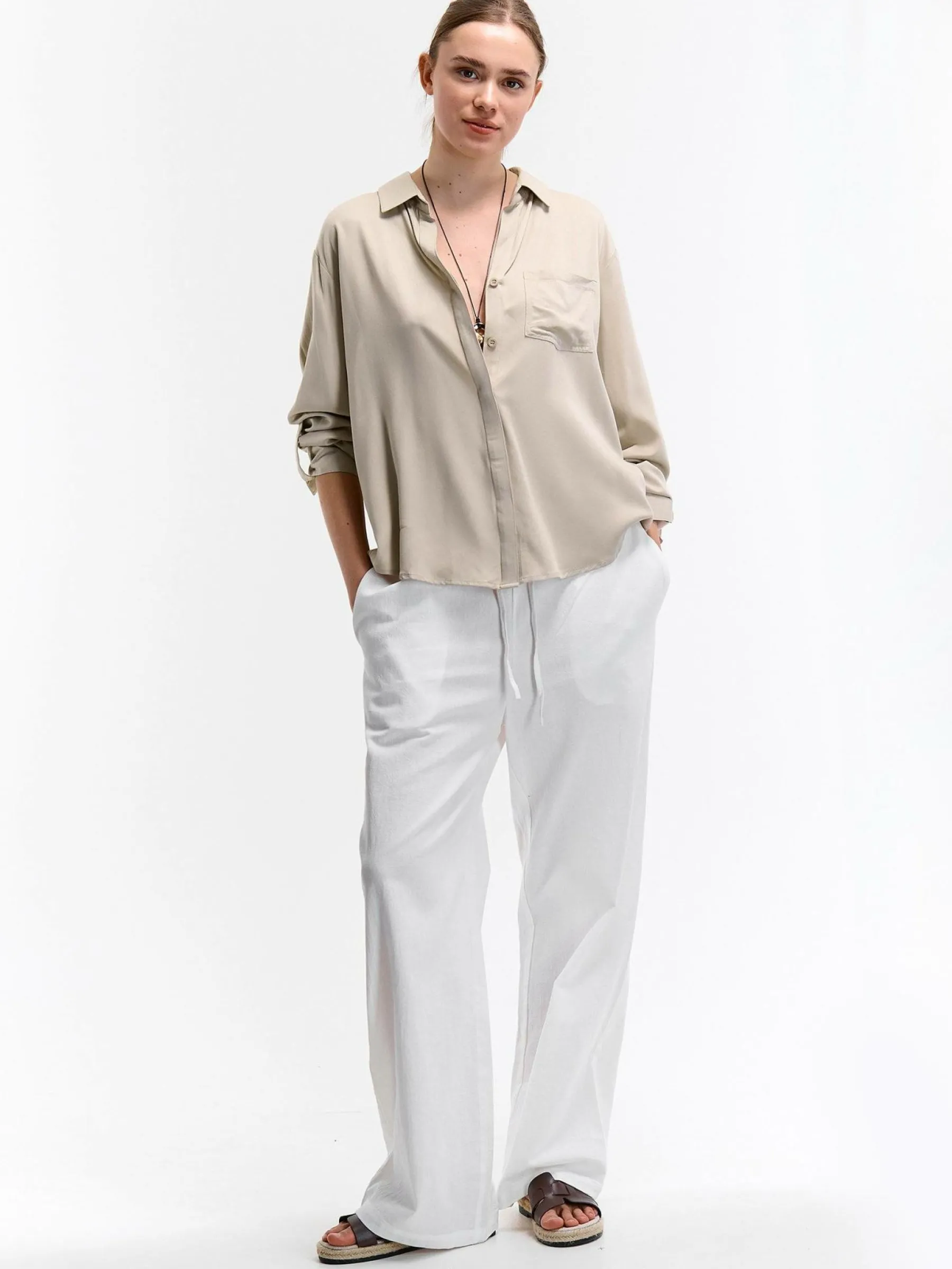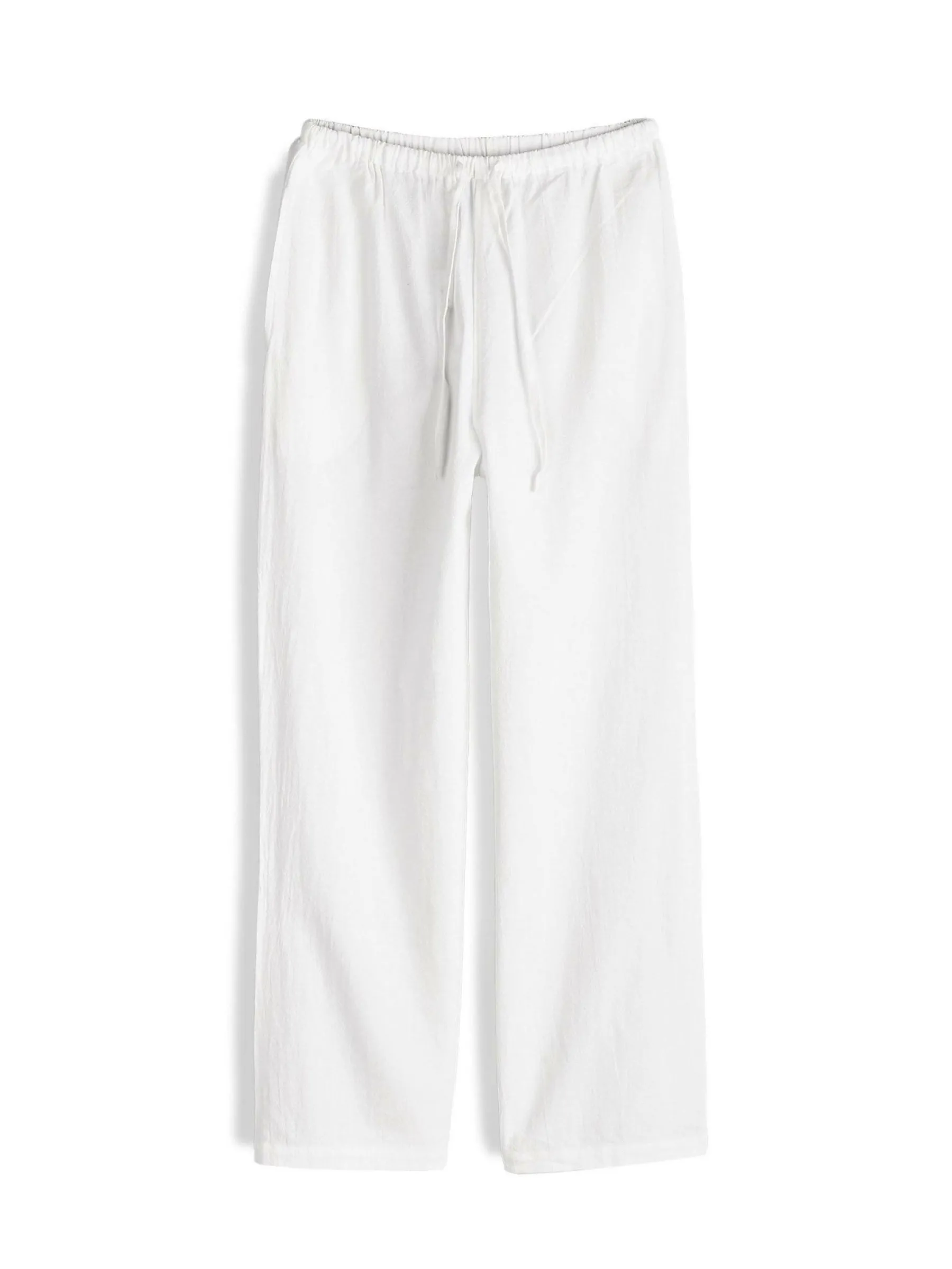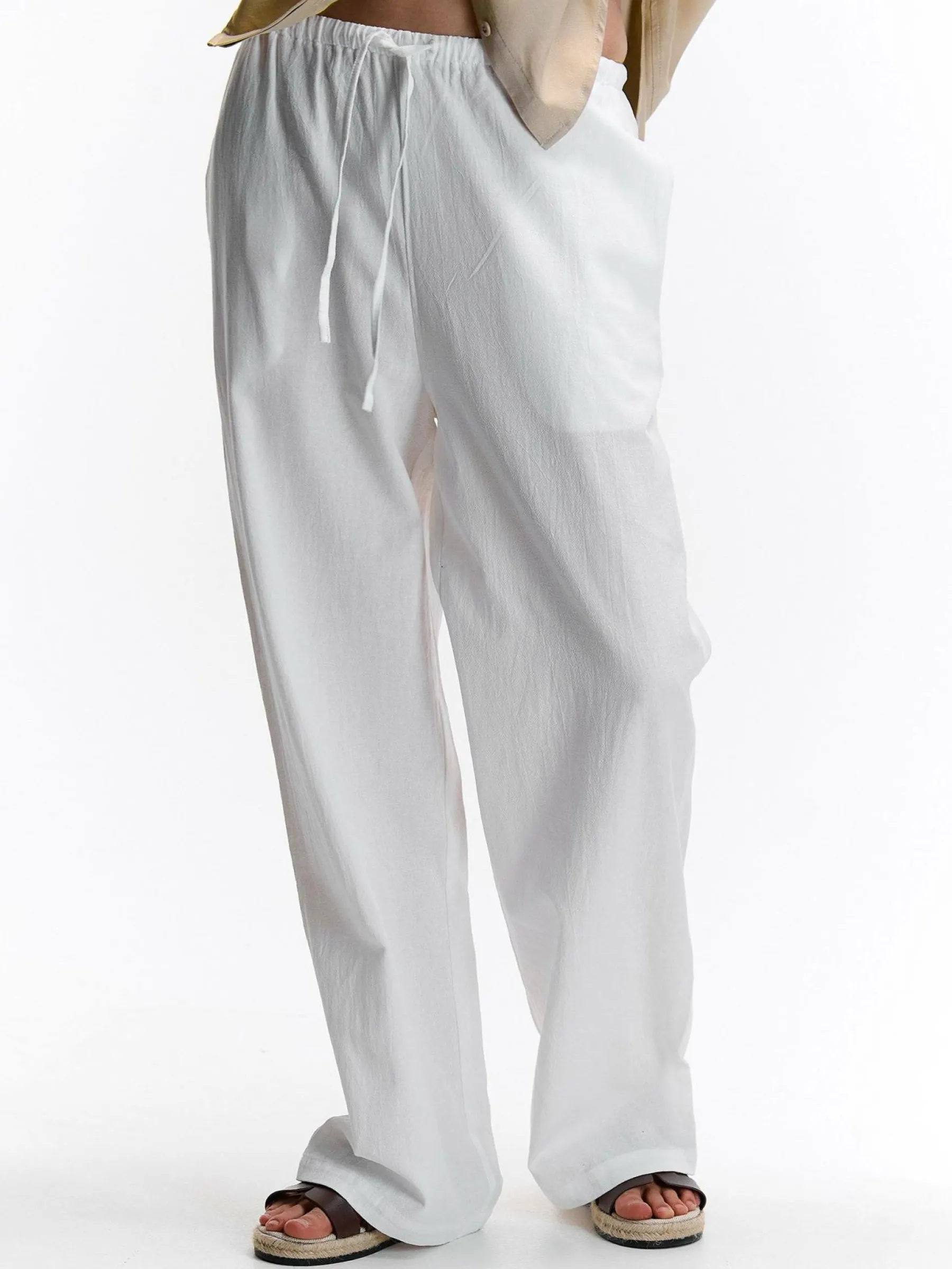 Kolor: białyKrój: szerokieTyp: spodnieDługość: dlugiePattern style: pojedynczy kolorDetal: ze sznurowaniem, z kiesz…