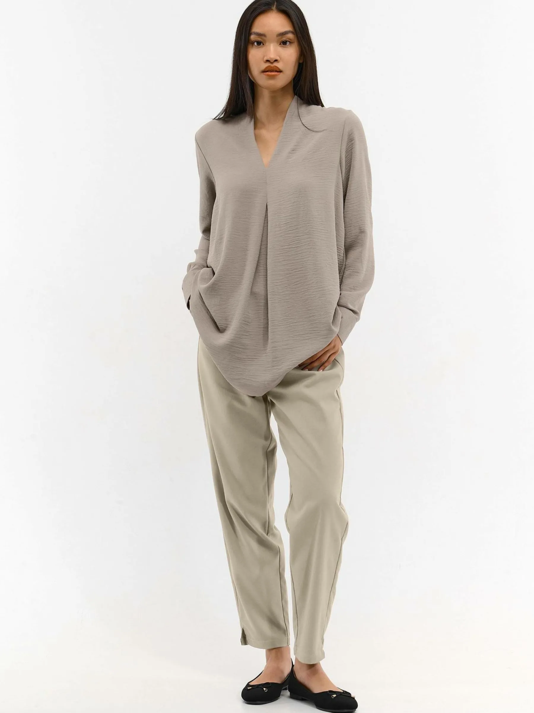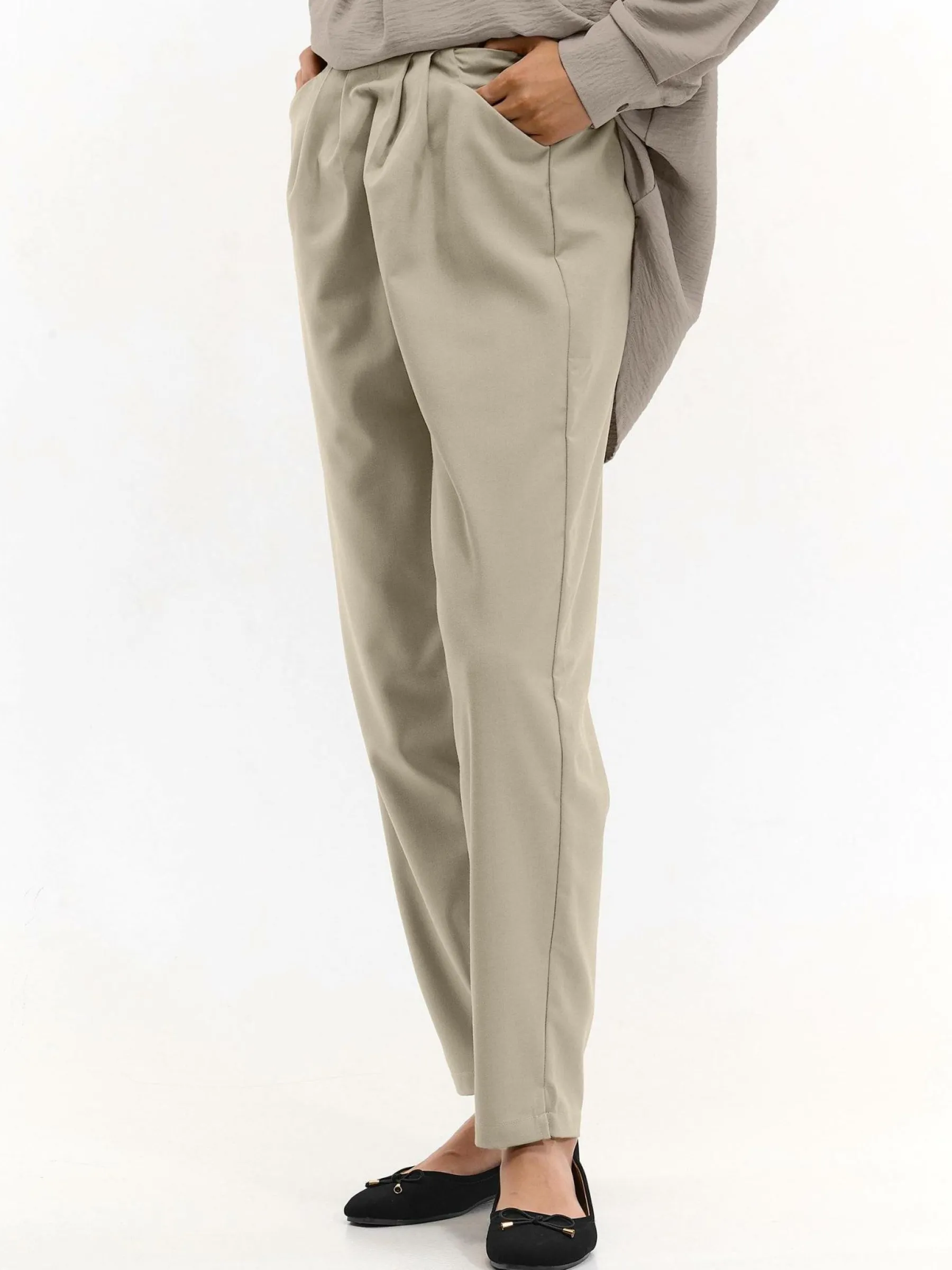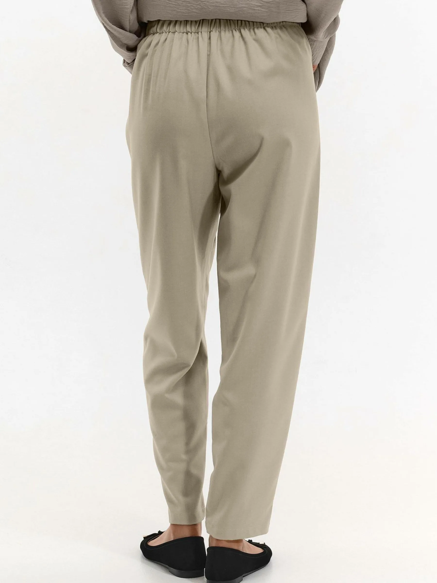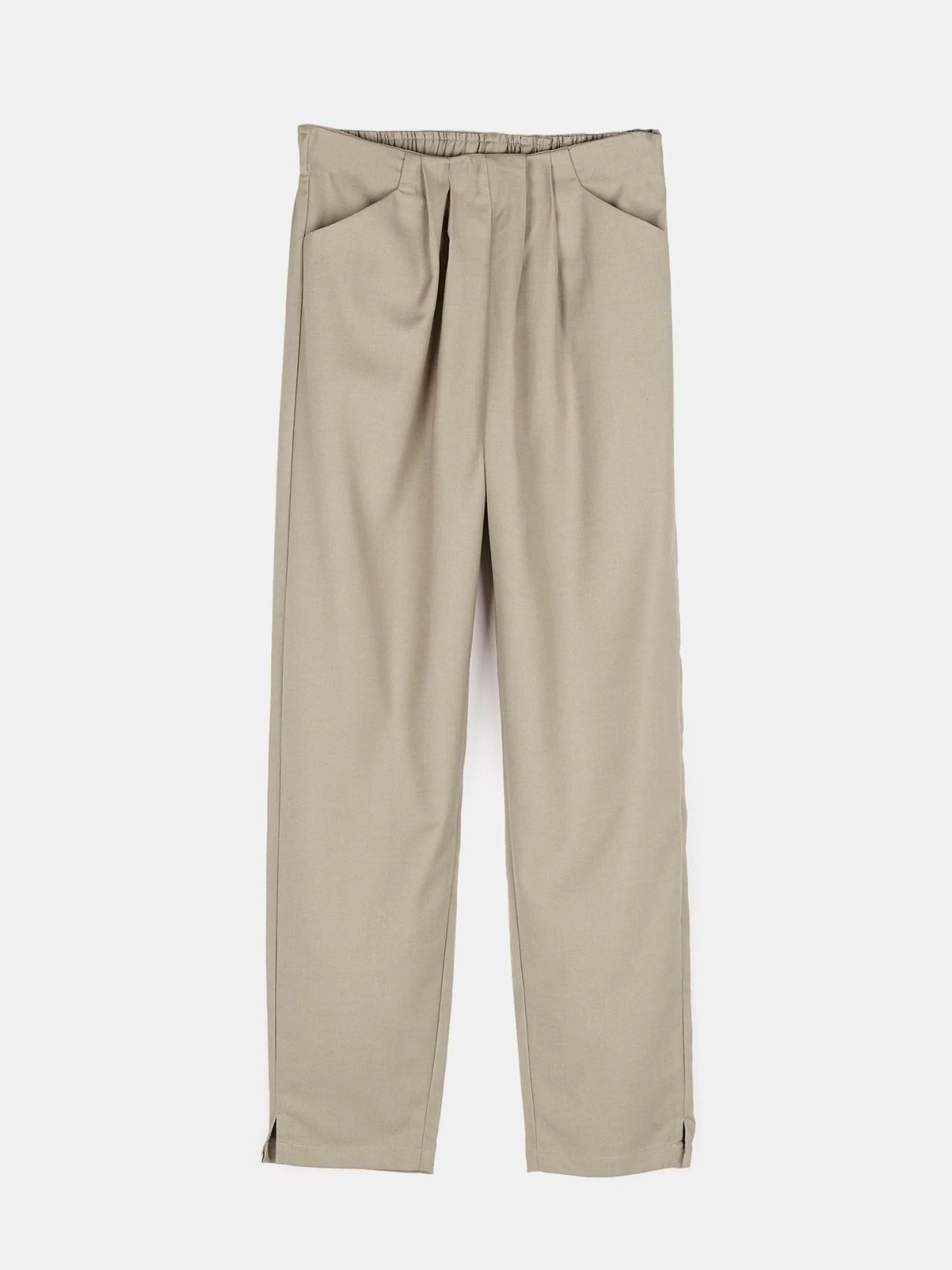 Kolor: beżowyKrój: straightTyp: spodnieDługość: dlugiePattern style: pojedynczy kolorDetal: z falbankami, z elastyc…
