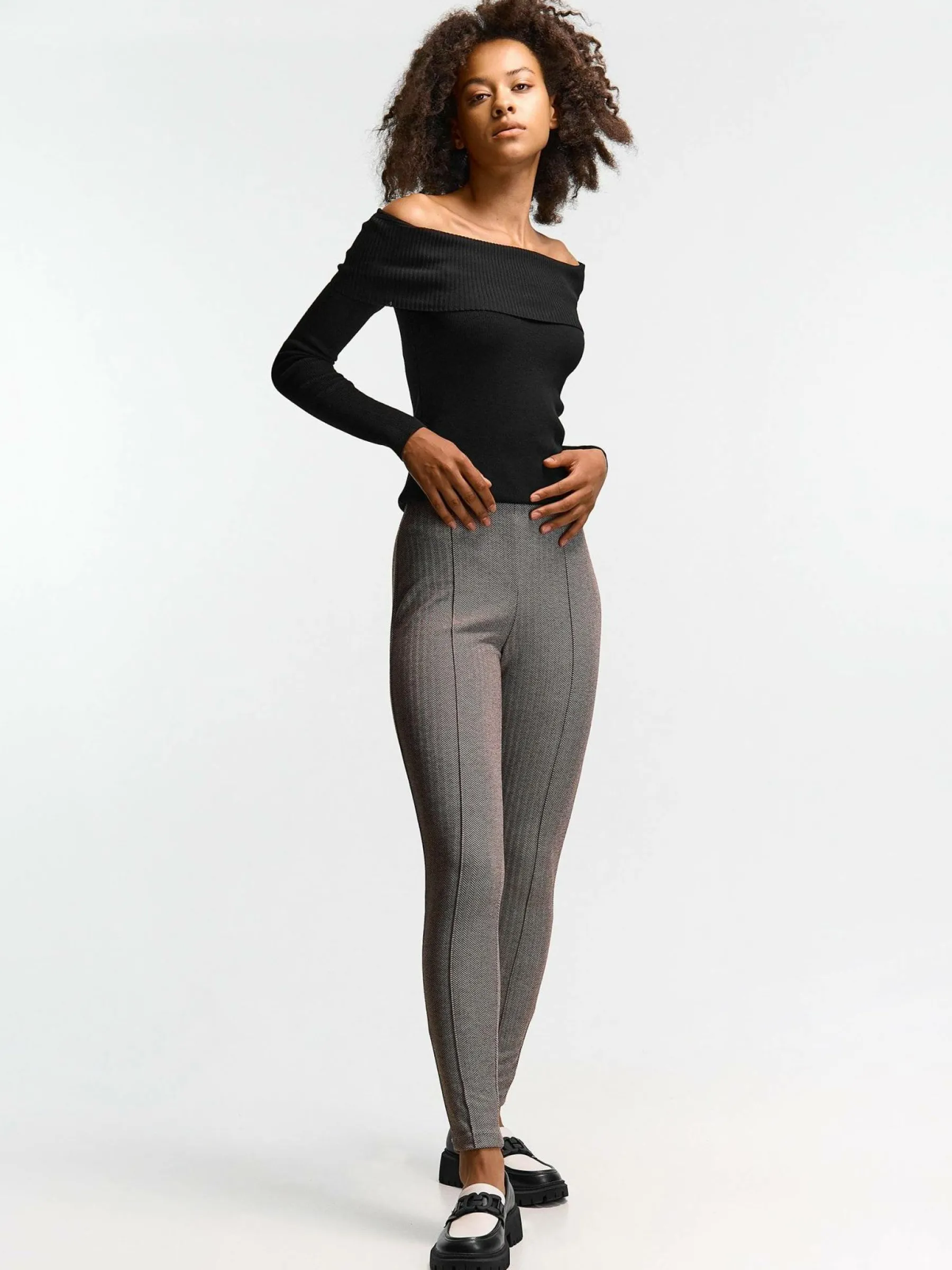 Kolor: brązowyKrój: skinnyTyp: spodnieDługość: dlugiePattern style: wzorzysteDetal: z elastyczną opaskąMateriał:…