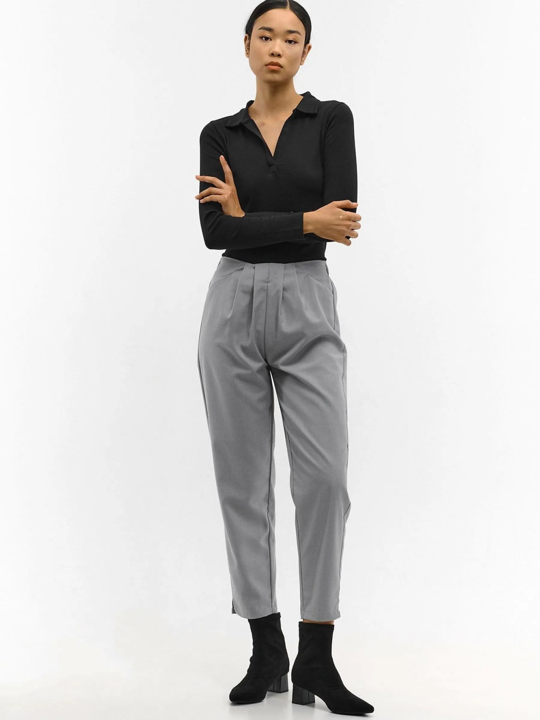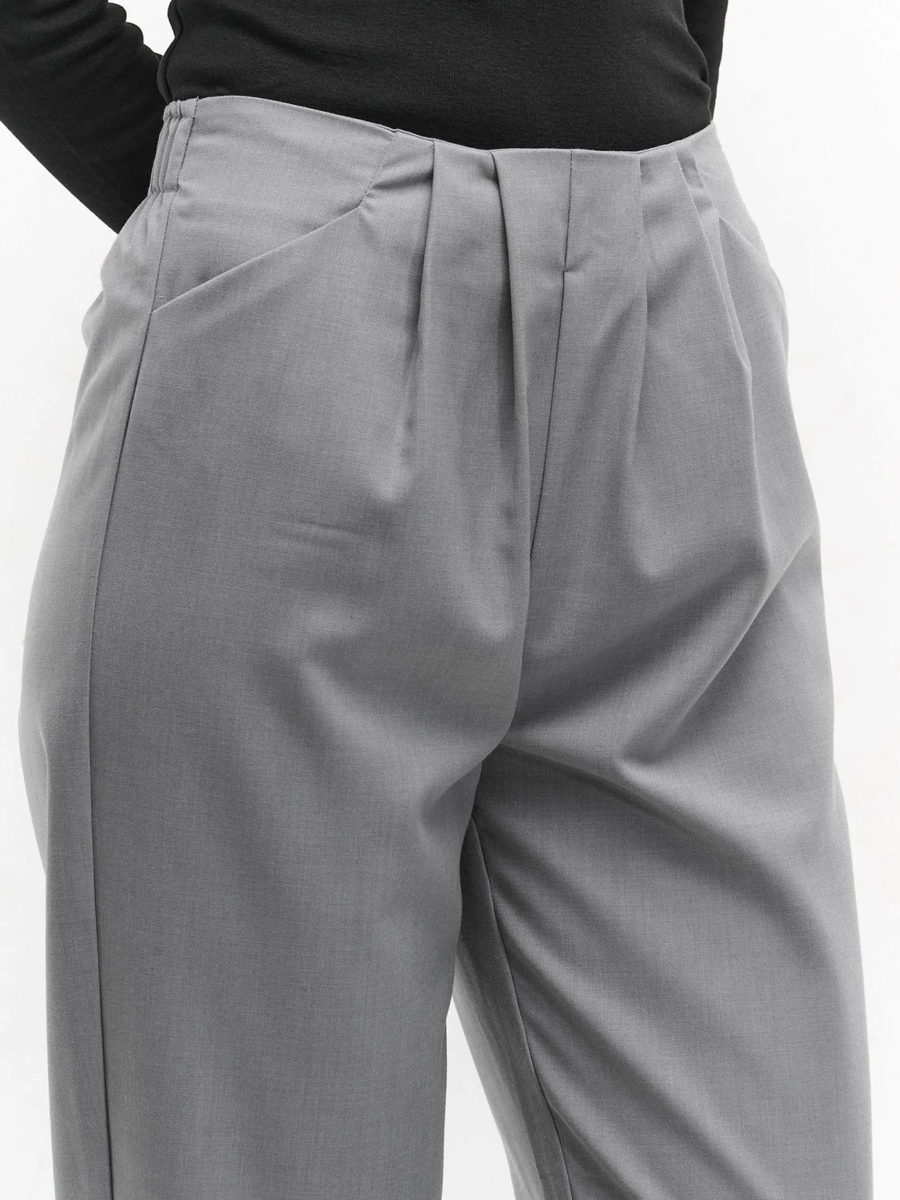 Kolor: szaryKrój: z marszczeniemTyp: spodnieDługość: dlugiePattern style: pojedynczy kolorDetal: z elastyczną opask…
