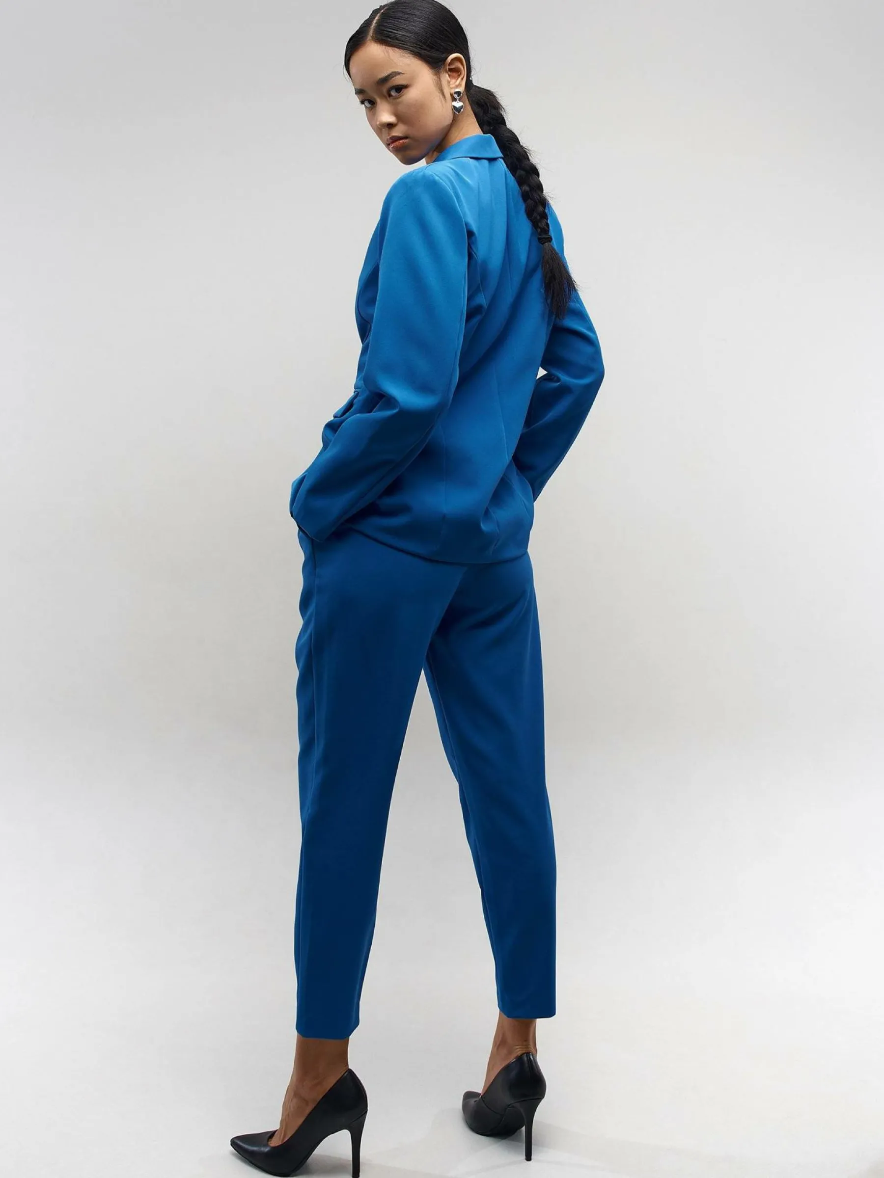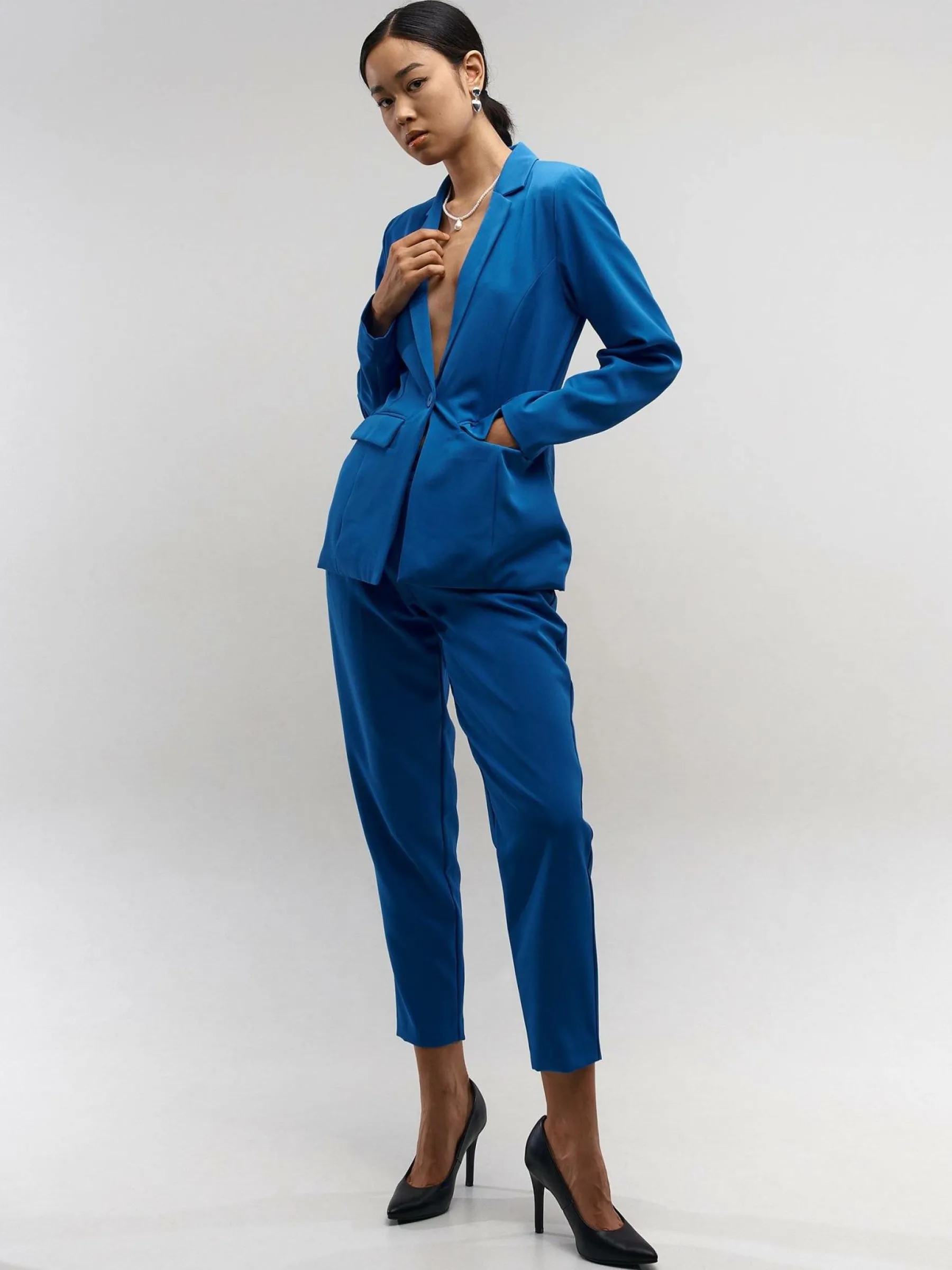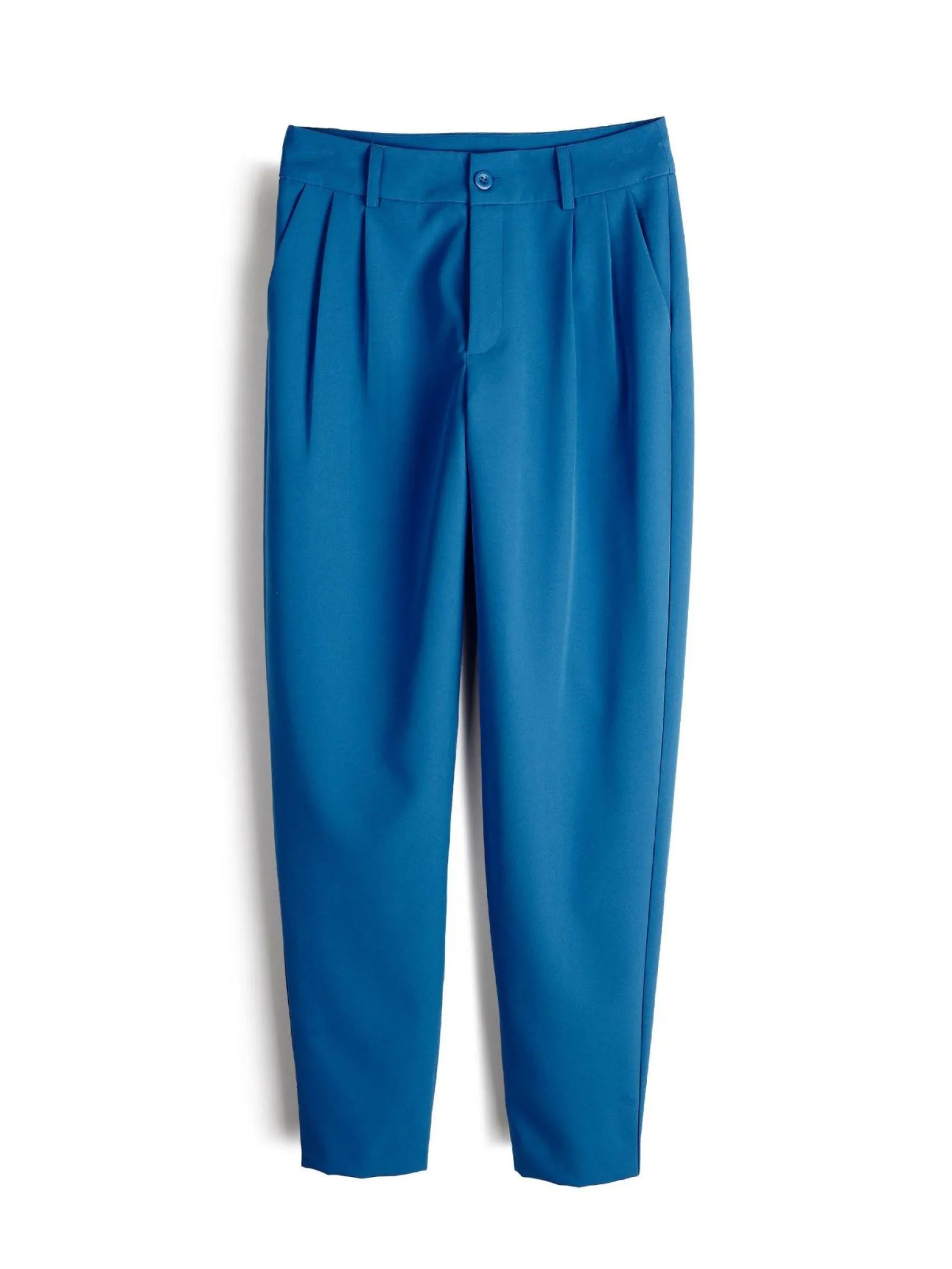 Kolor: niebieskiKrój: spodnie „marchewki”Typ: spodnieDługość: dlugiePattern style: pojedynczy kolorDetal: na zamekMa…