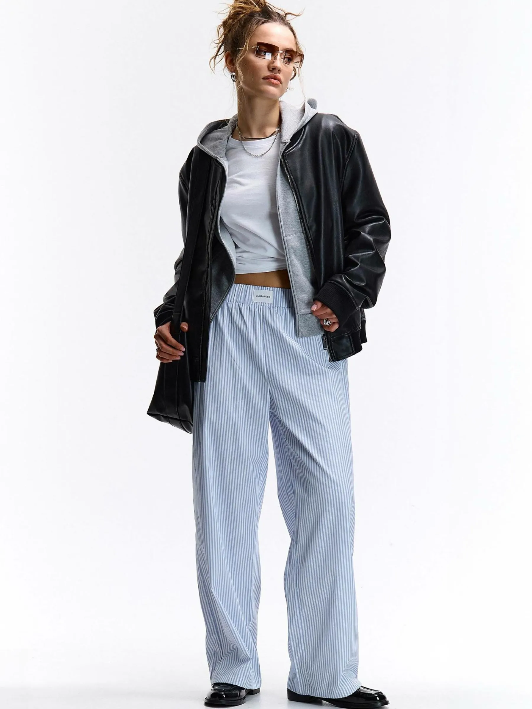 Zdjęcia z modelką mogą nie odpowiadać rzeczywistemu kolorowi produktu.Kolor: niebieskiKrój: szerokieTyp: spodnieDł…