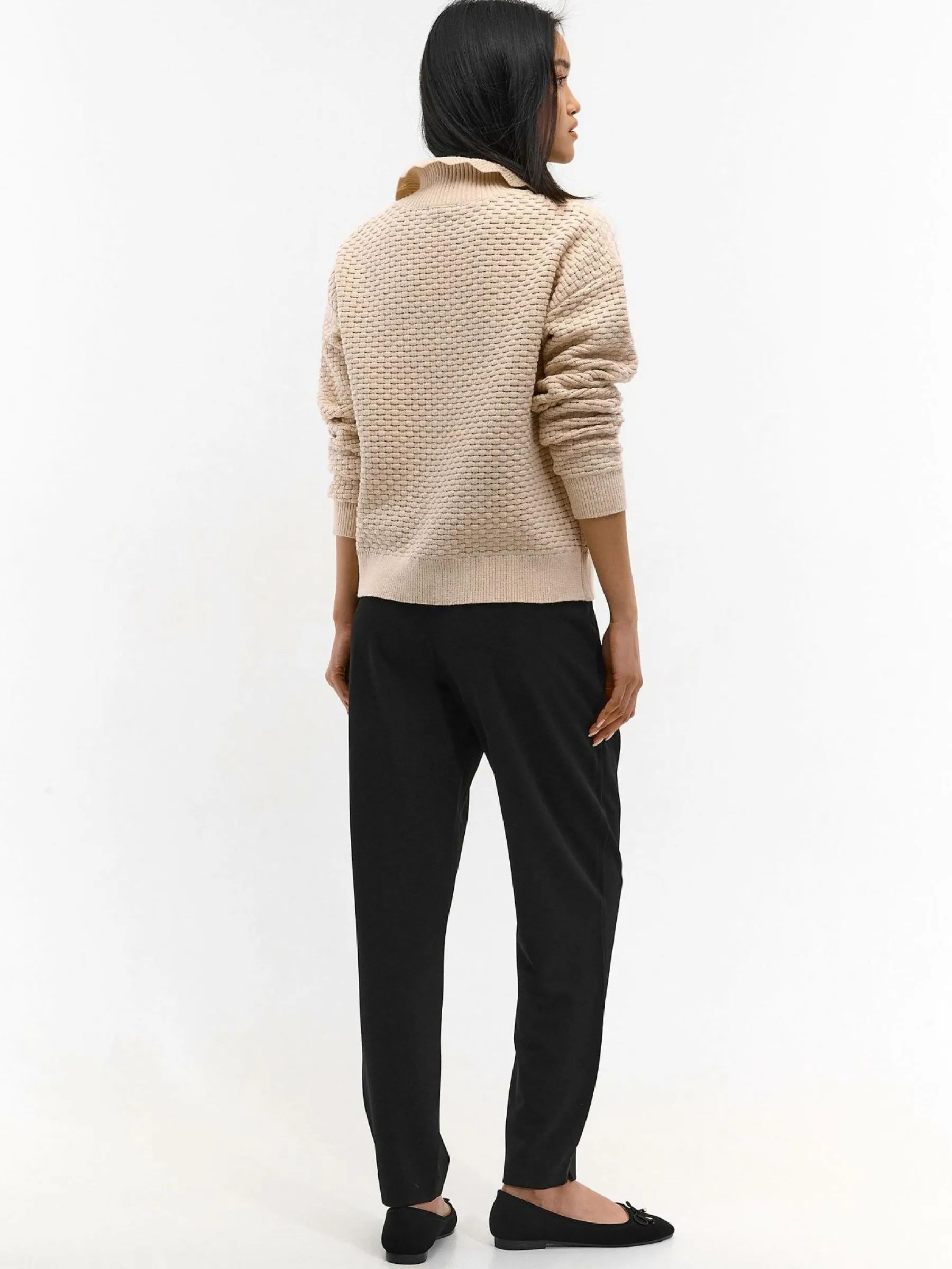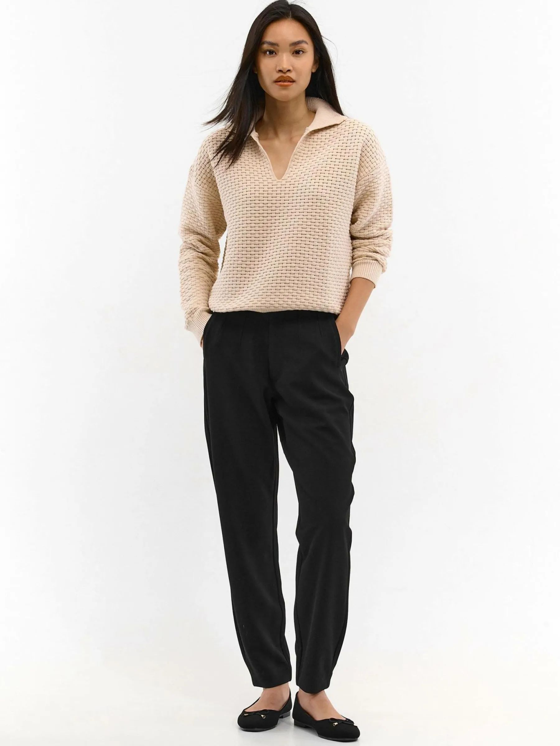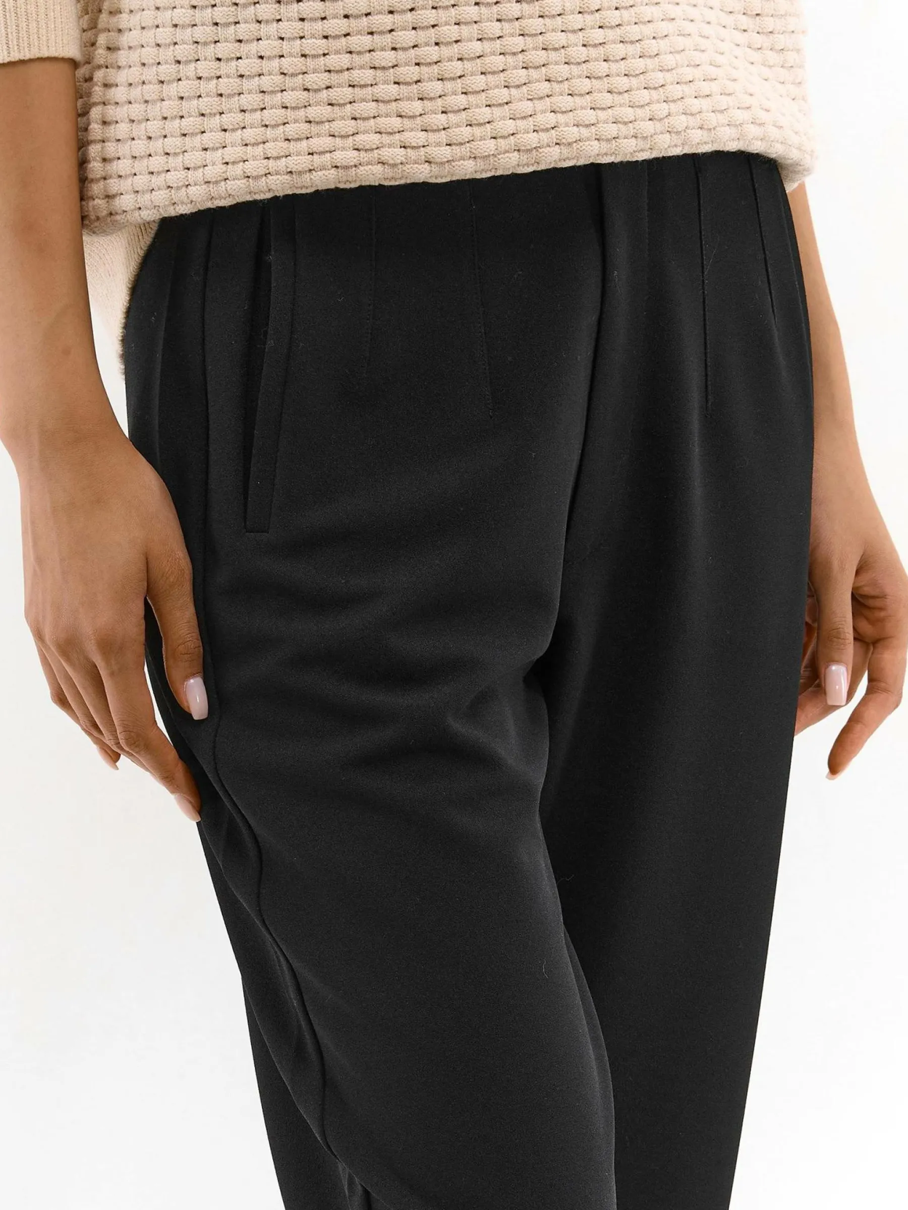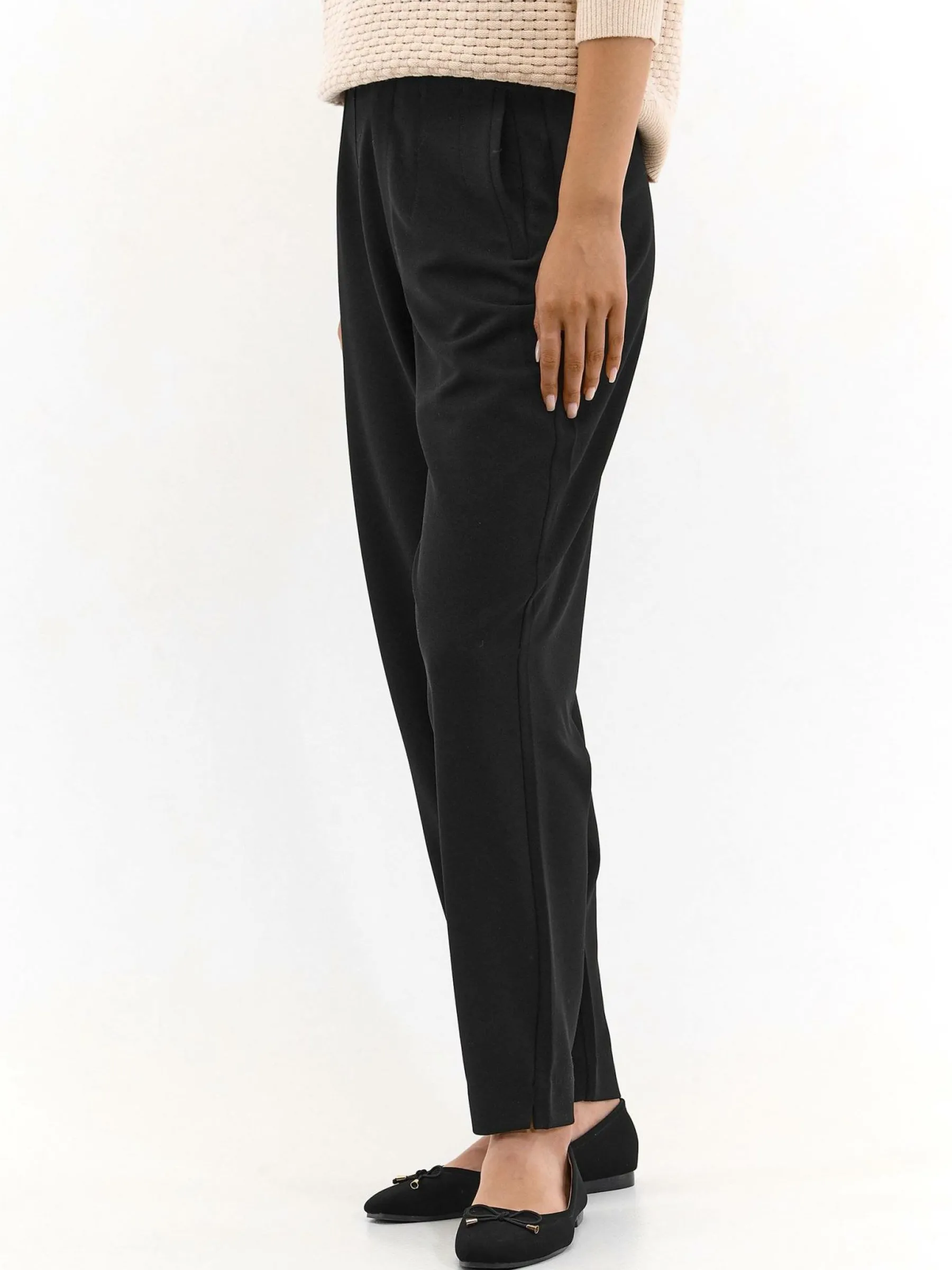 Kolor: czarnyKrój: straightTyp: spodnieDługość: dlugiePattern style: pojedynczy kolorDetal: na zamekMateriał: synte…