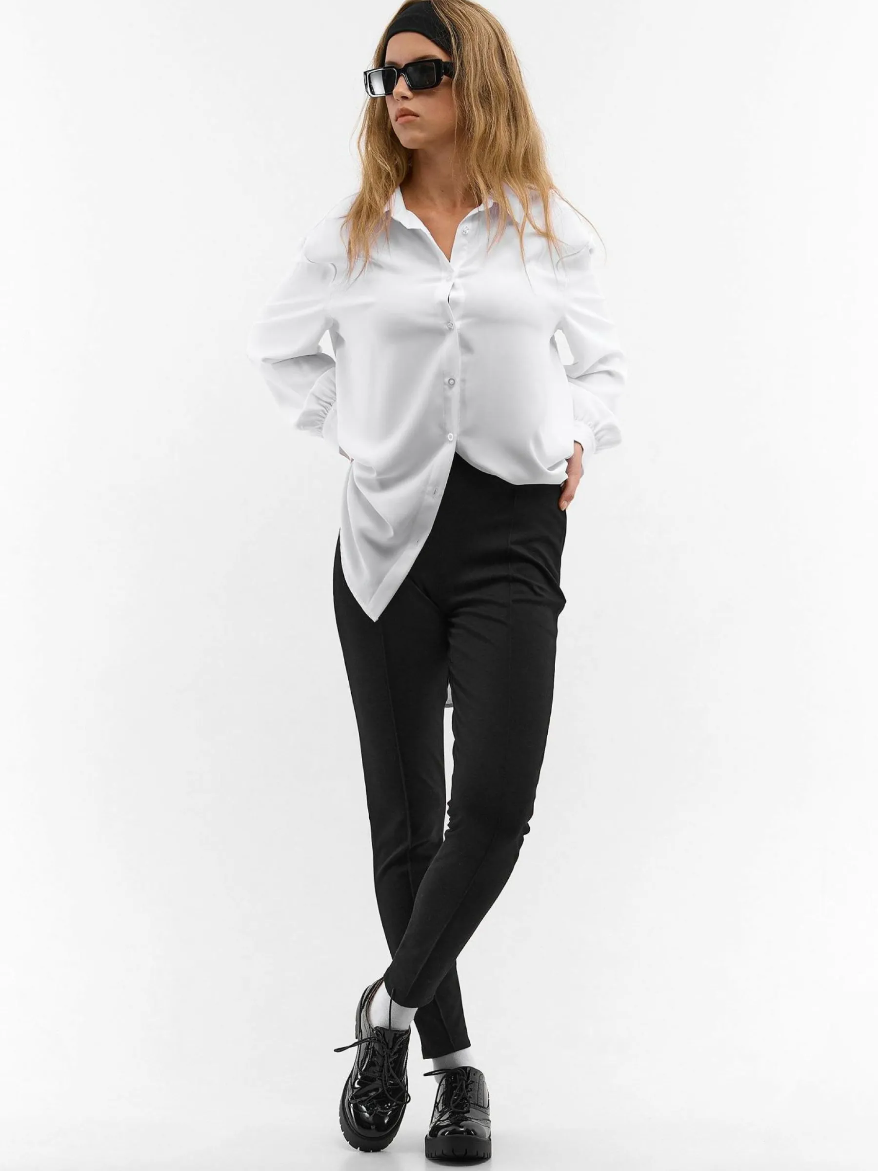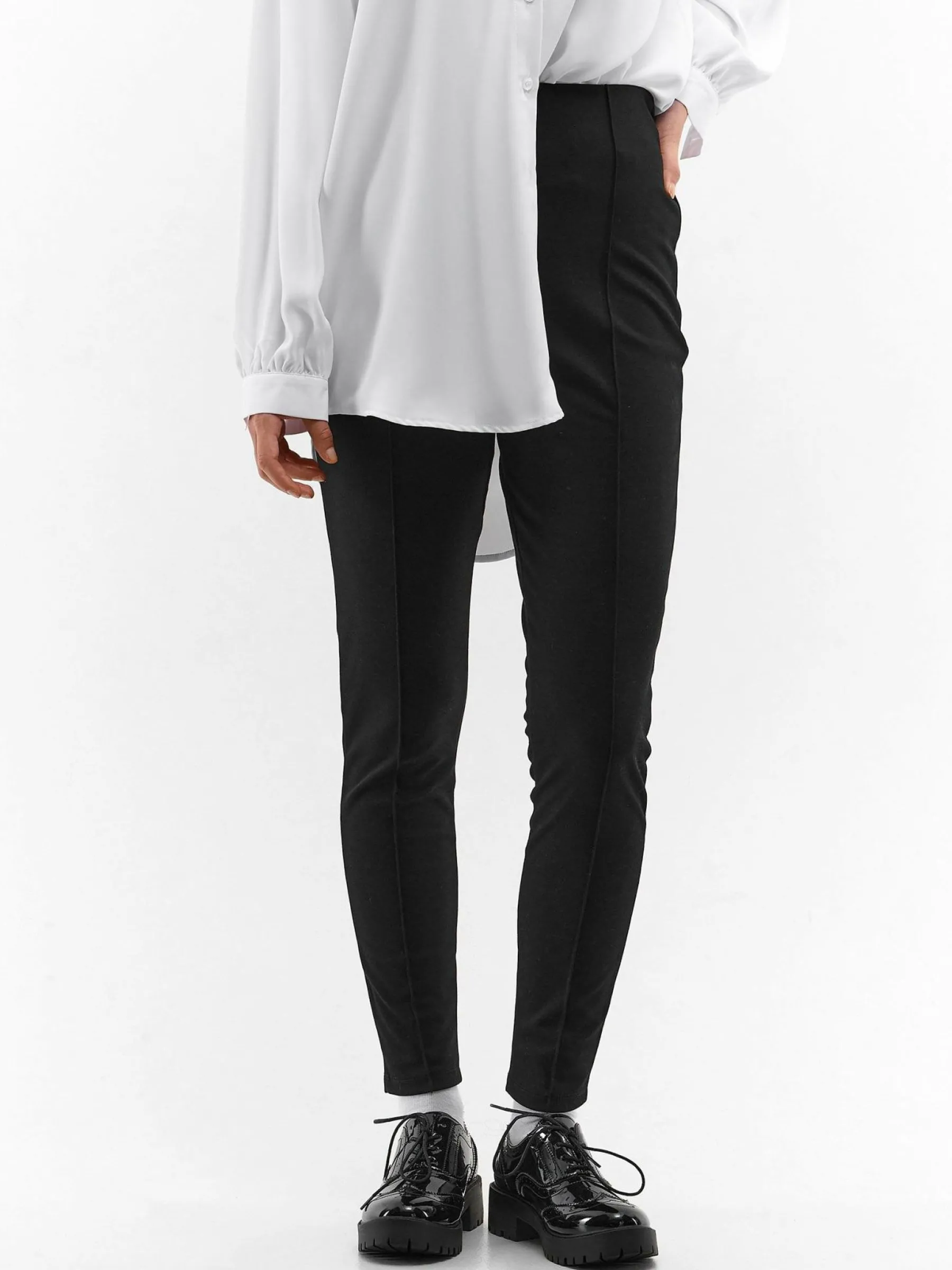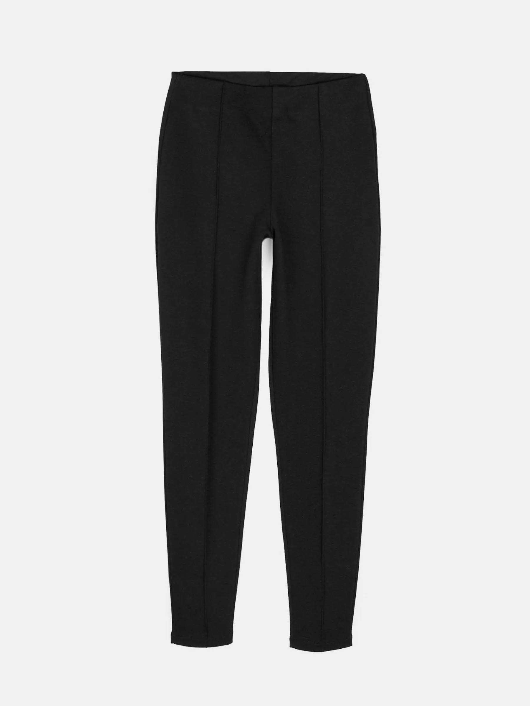 Kolor: czarnyKrój: skinny, z wysokim stanemTyp: spodnieDługość: dlugiePattern style: pojedynczy kolorDetal: z elasty…