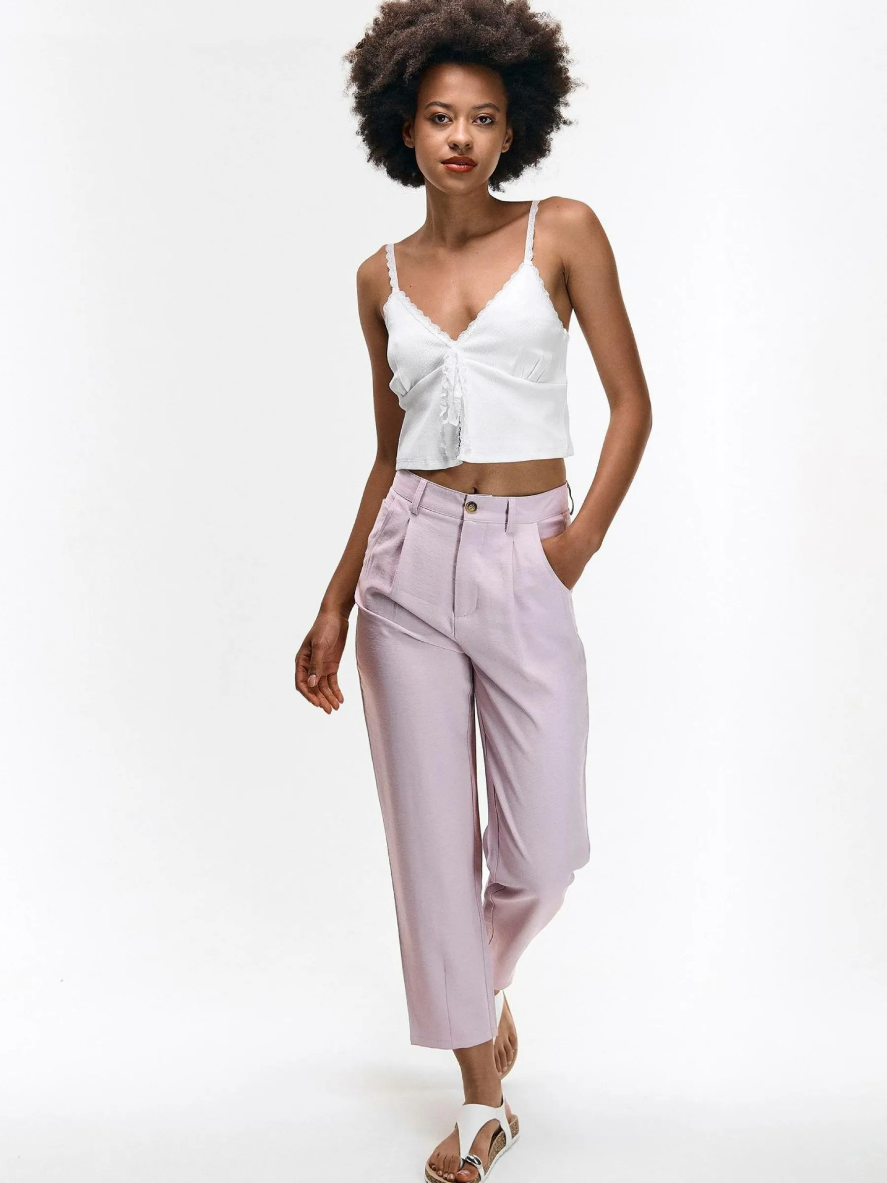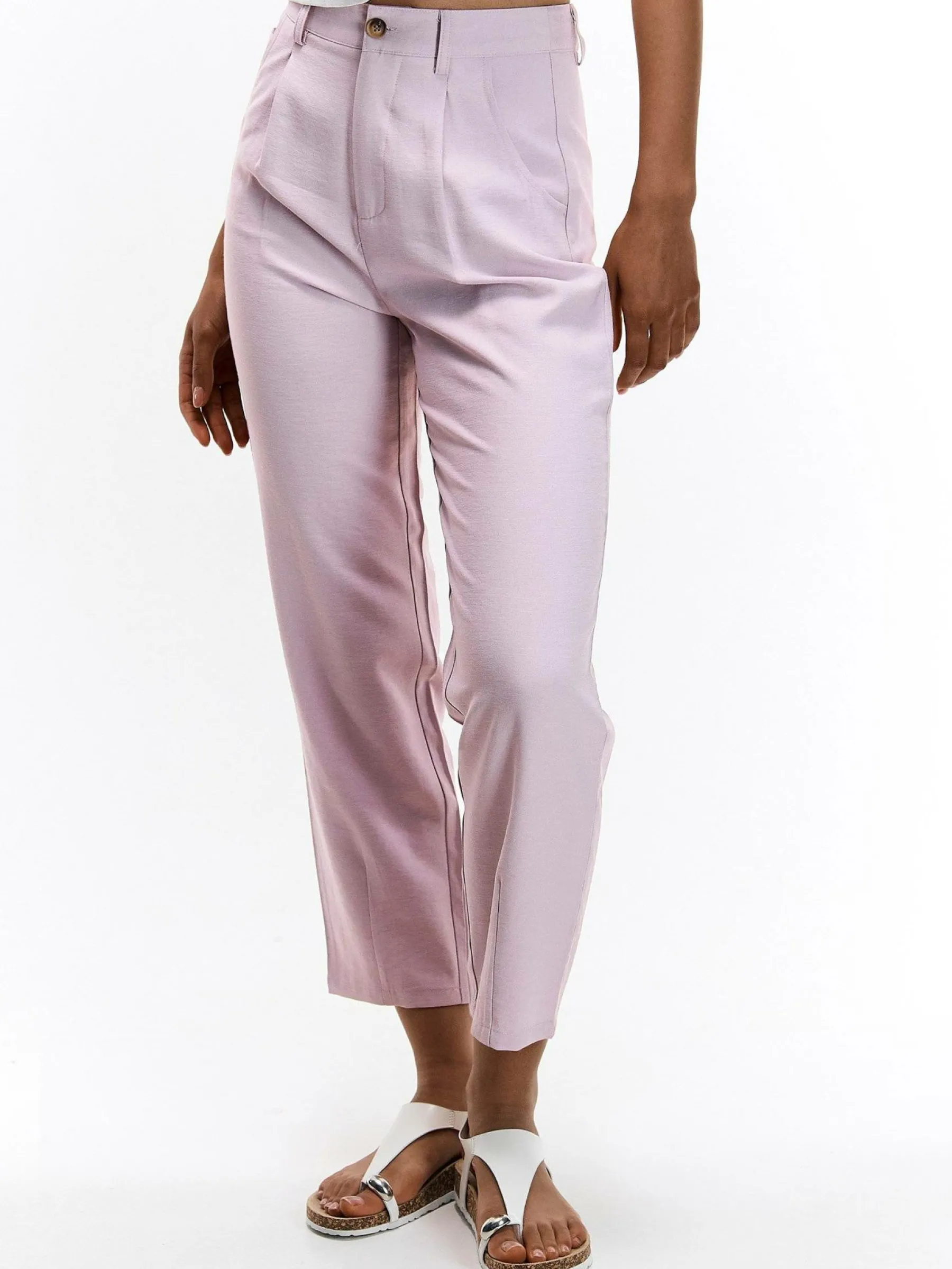 Kolor: różowyKrój: straightTyp: spodnieDługość: dlugiePattern style: pojedynczy kolorDetal: na zamek, z kieszeniam…