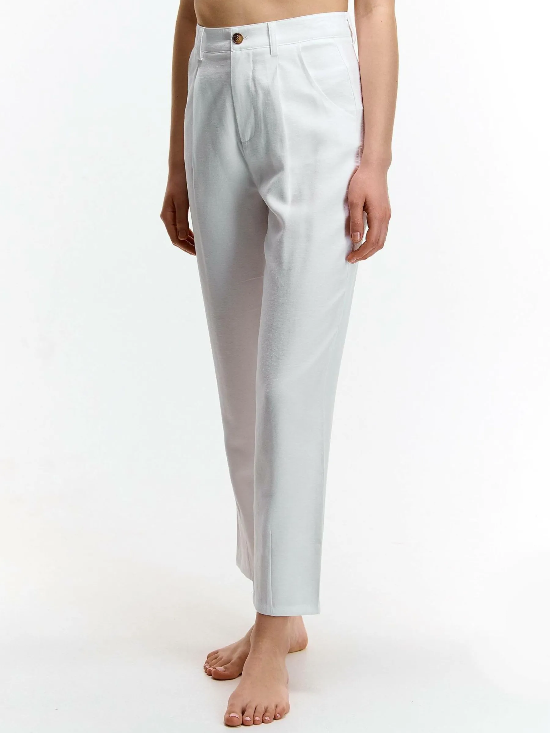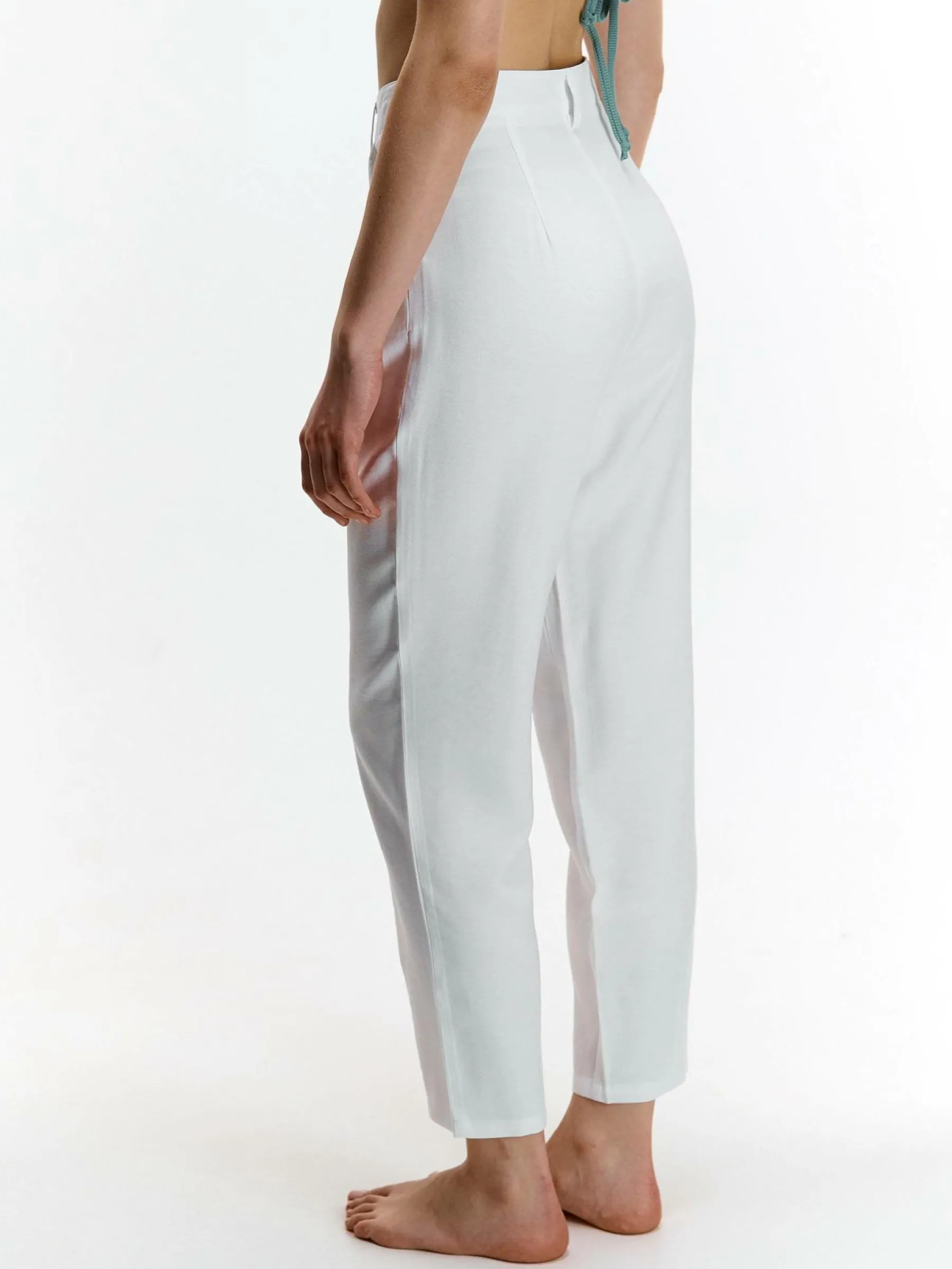 Kolor: białyKrój: straightTyp: spodnieDługość: dlugiePattern style: pojedynczy kolorDetal: na zamek, z kieszeniamiM…