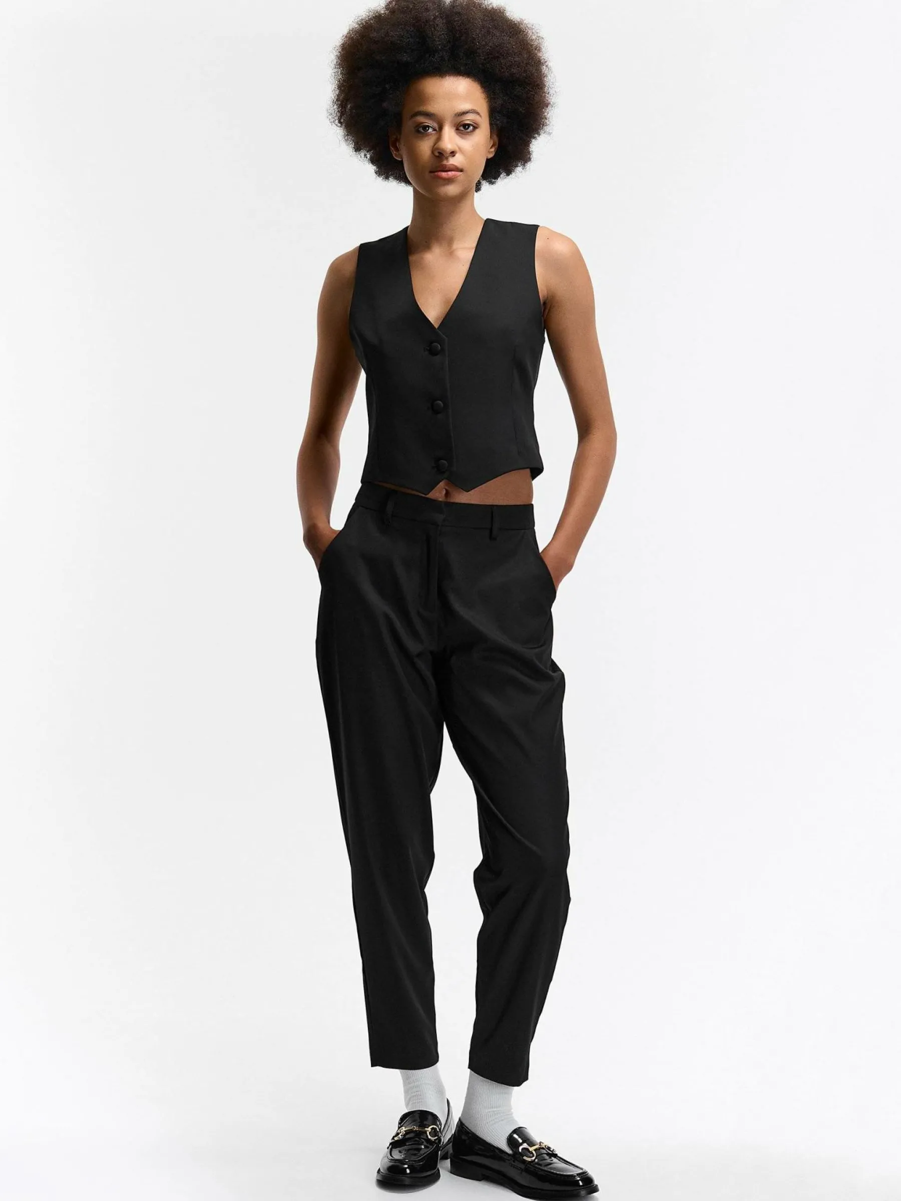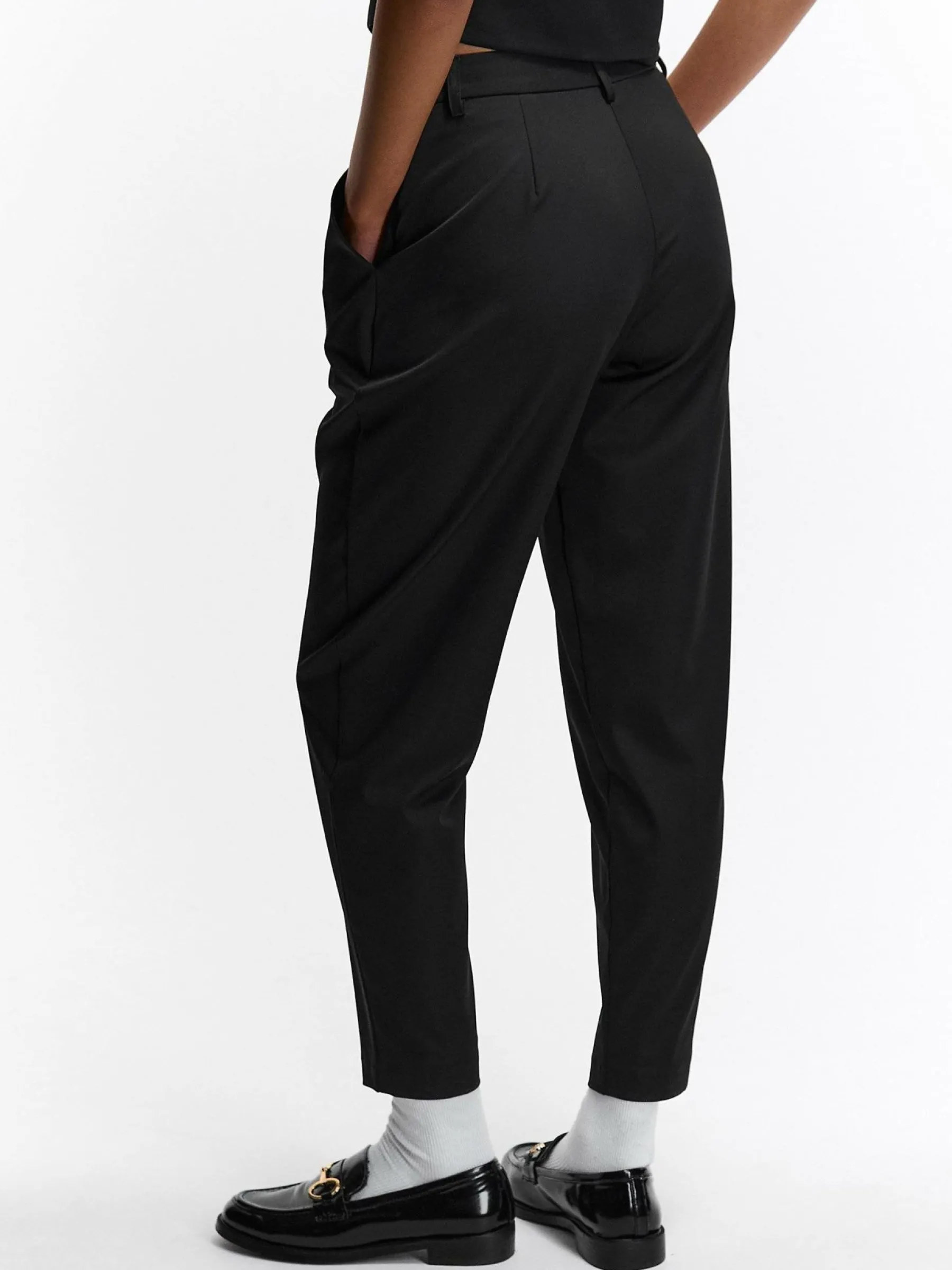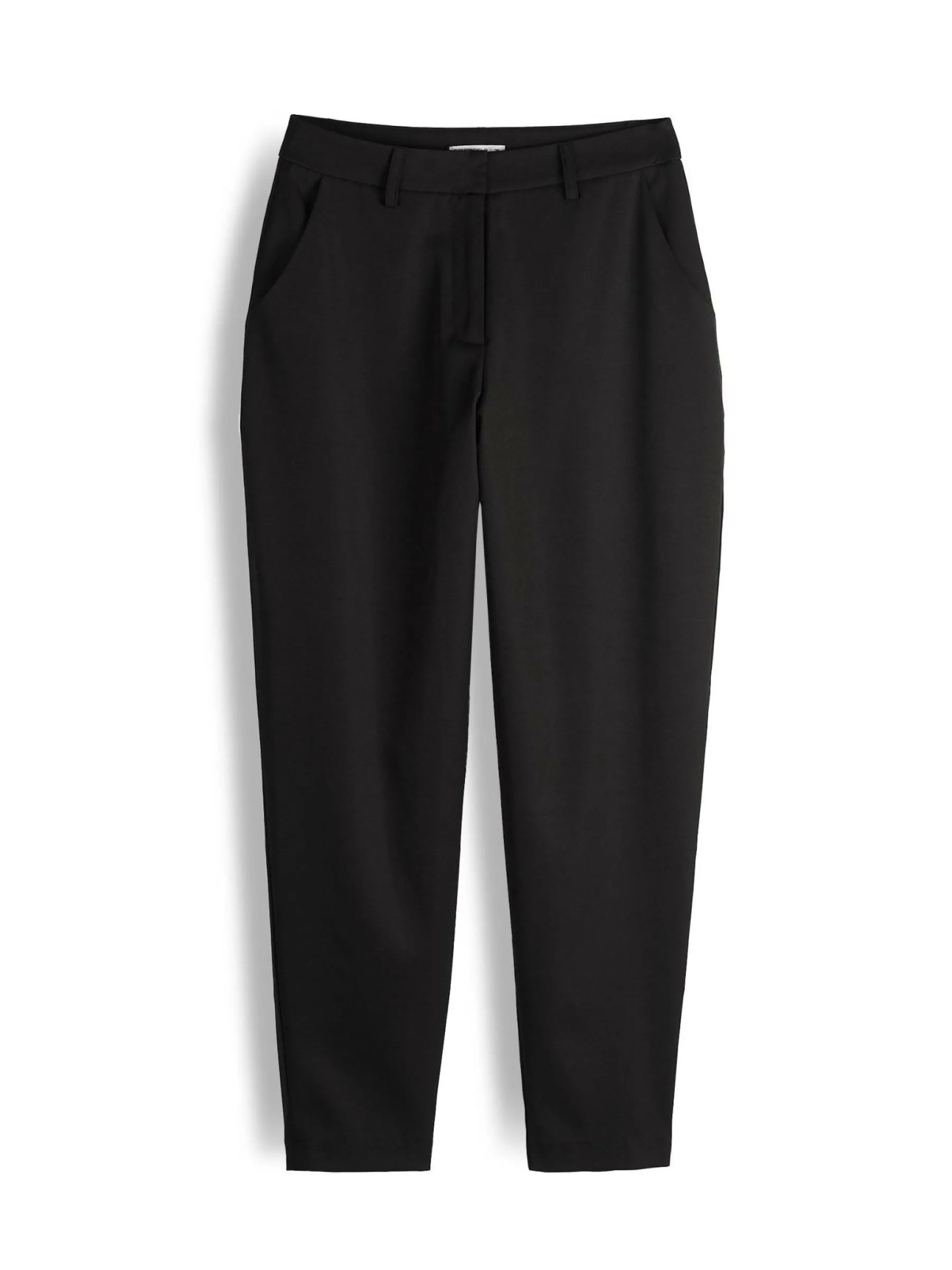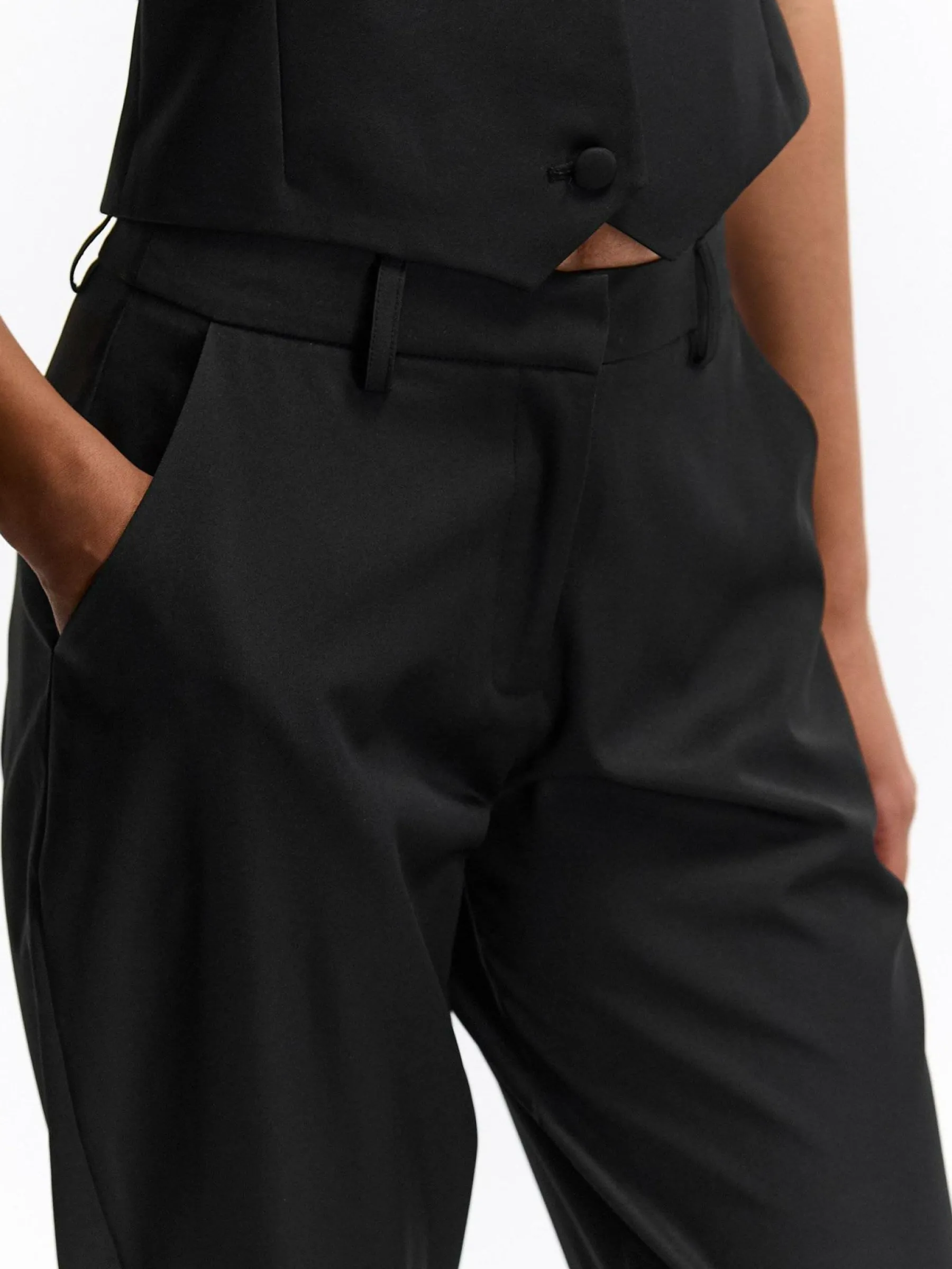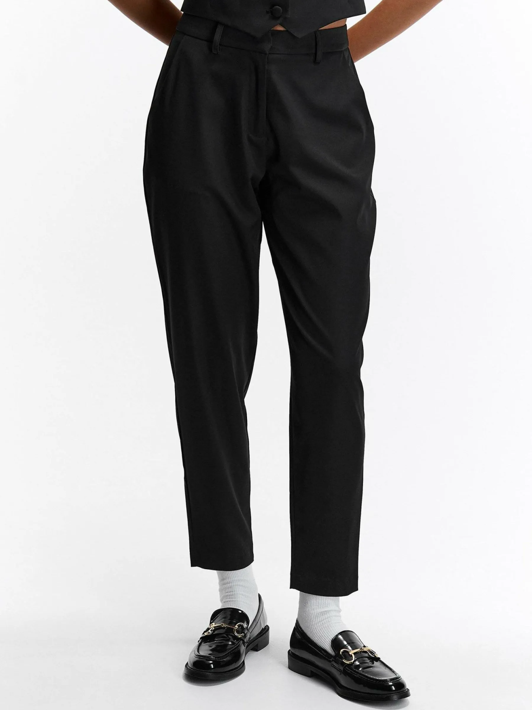 Kolor: czarnyKrój: straightTyp: spodnieDługość: dlugiePattern style: pojedynczy kolorDetal: na haczykachMateriał: s…