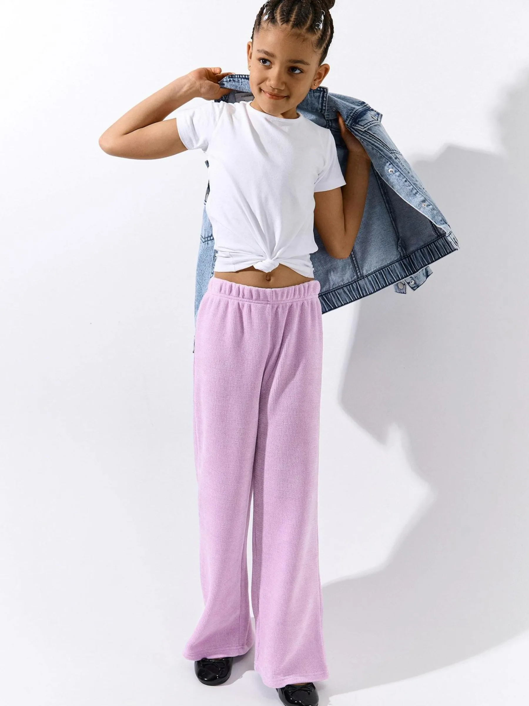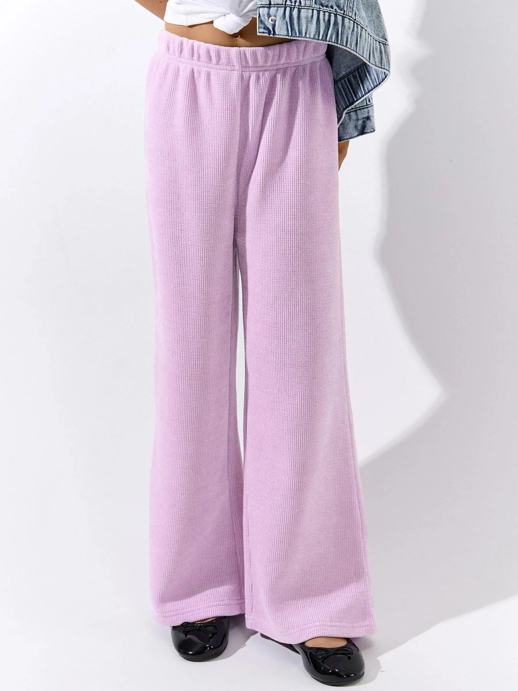 Kolor: purpurowyKrój: szerokieTyp: spodnieDługość: dlugiePattern style: pojedynczy kolor, strukturowaneDetal: z elas…