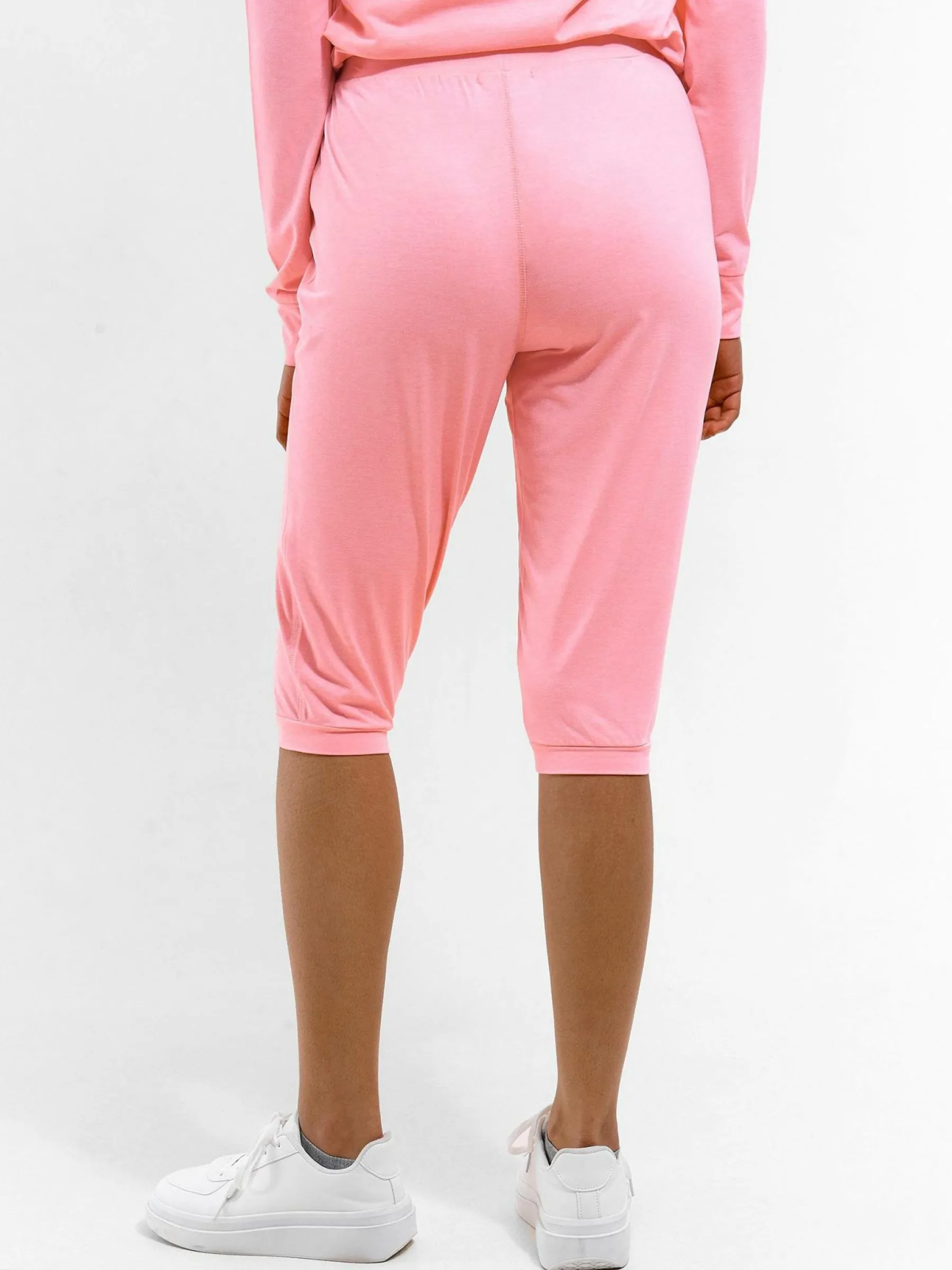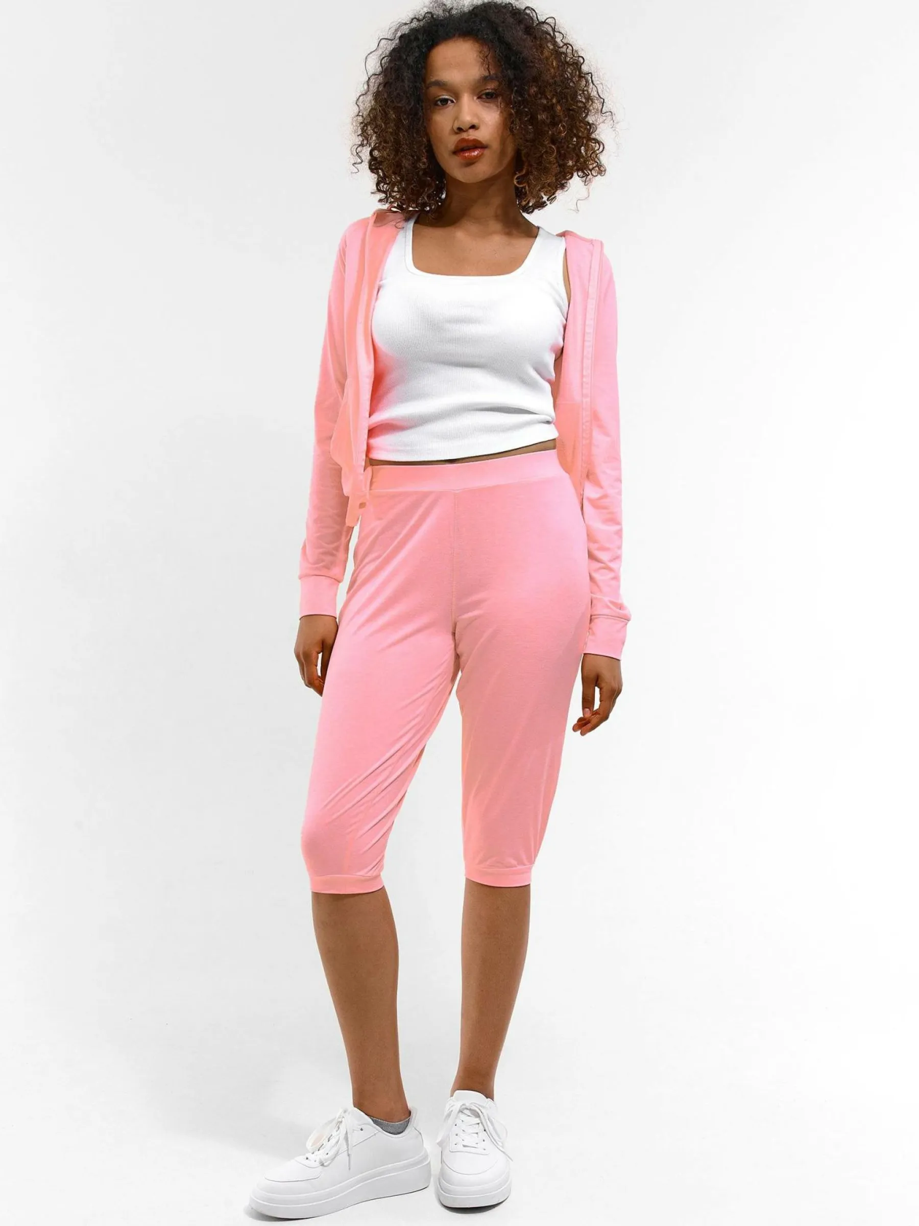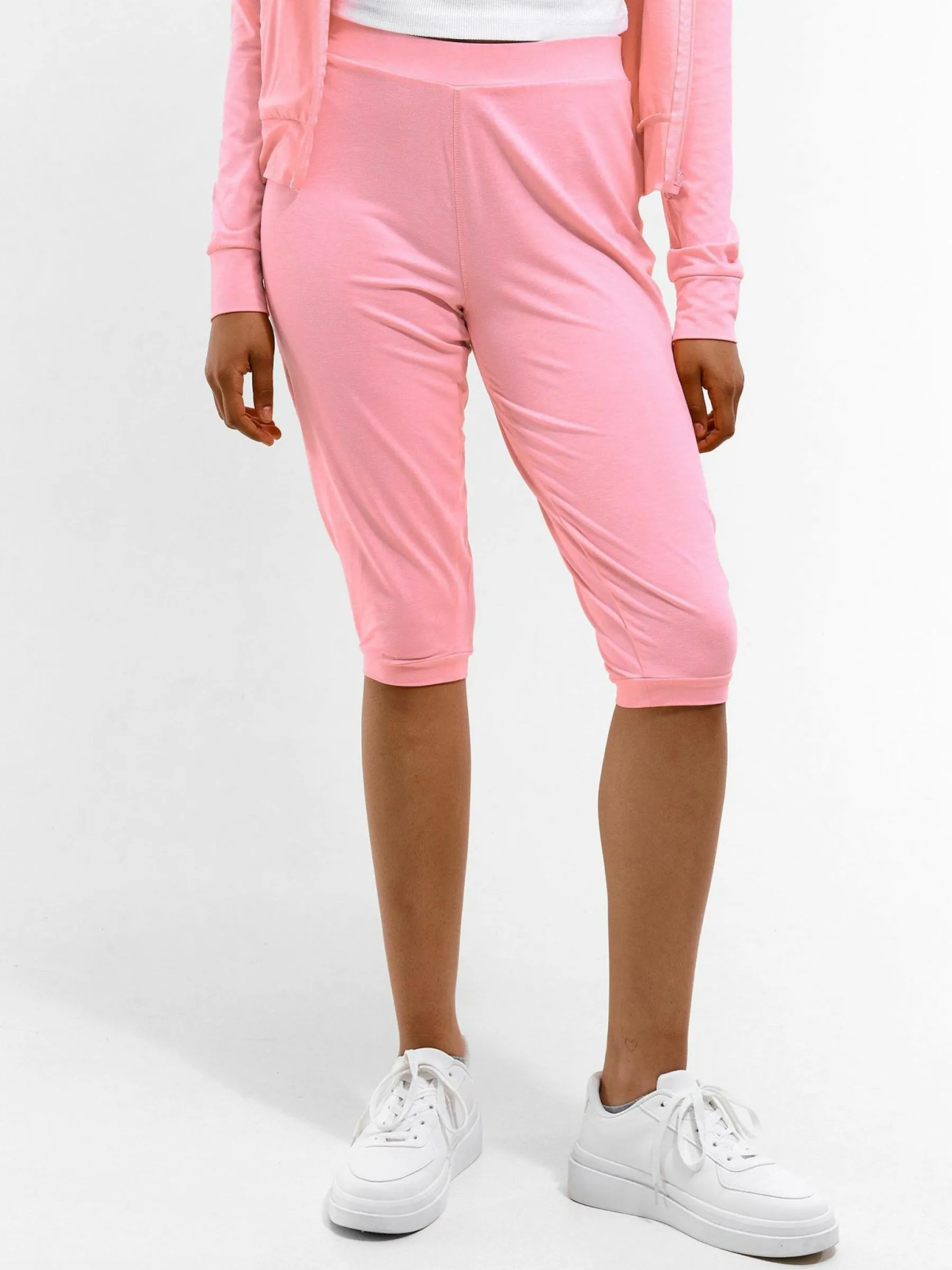 Kolor: różowyKrój: slimTyp: spodnie dresoweDługość: trzy czwartePattern style: pojedynczy kolorMateriał: syntetyc…