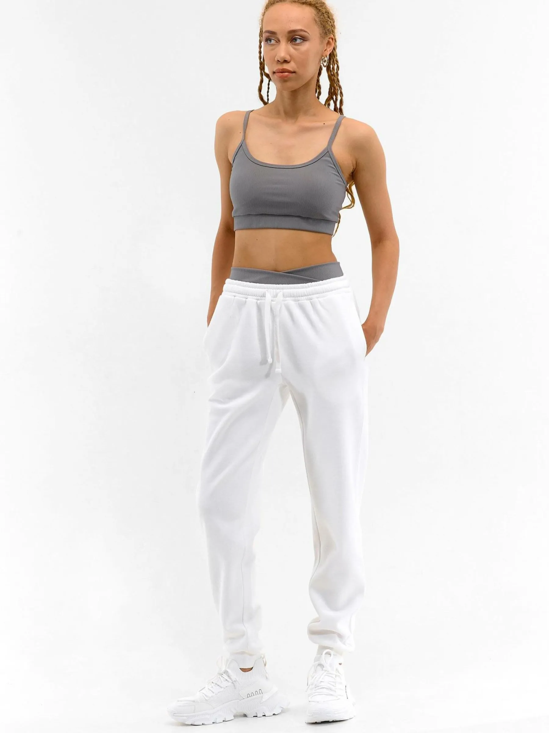 Zdjęcia z modelką mogą nie odpowiadać rzeczywistemu kolorowi produktu.Kolor: białyKrój: podstawowyTyp: spodnie dre…