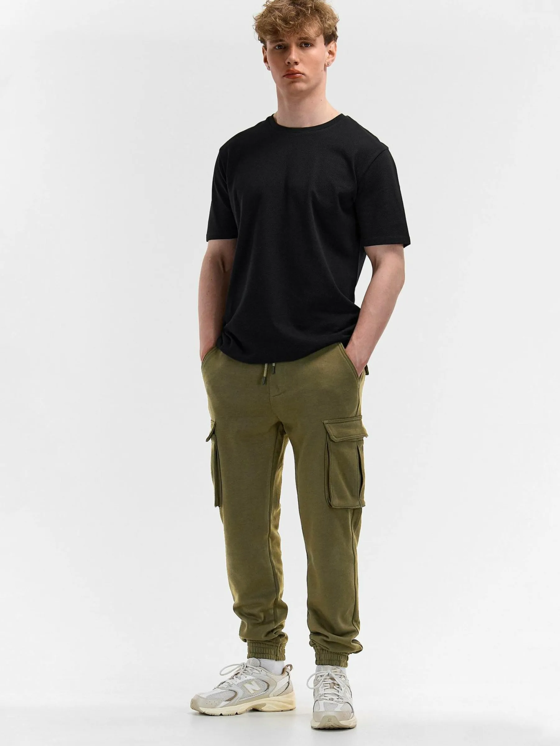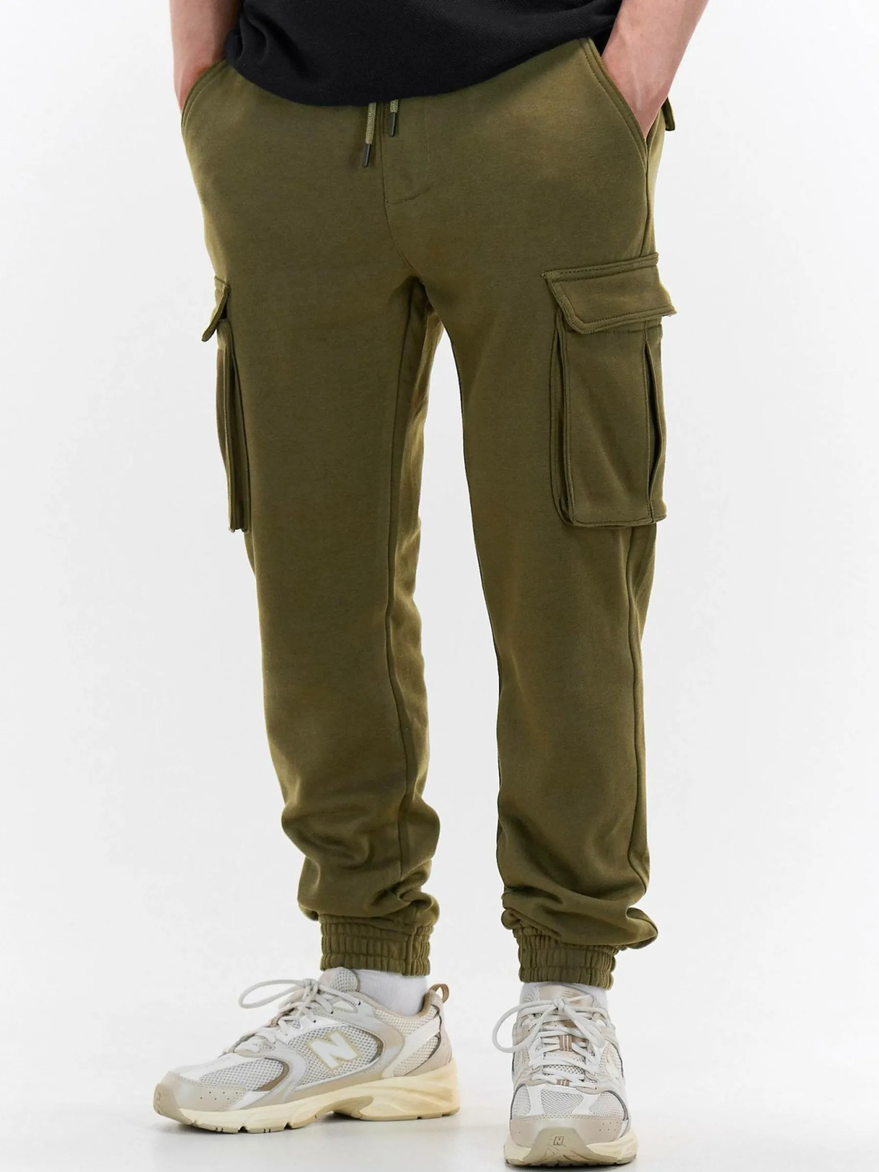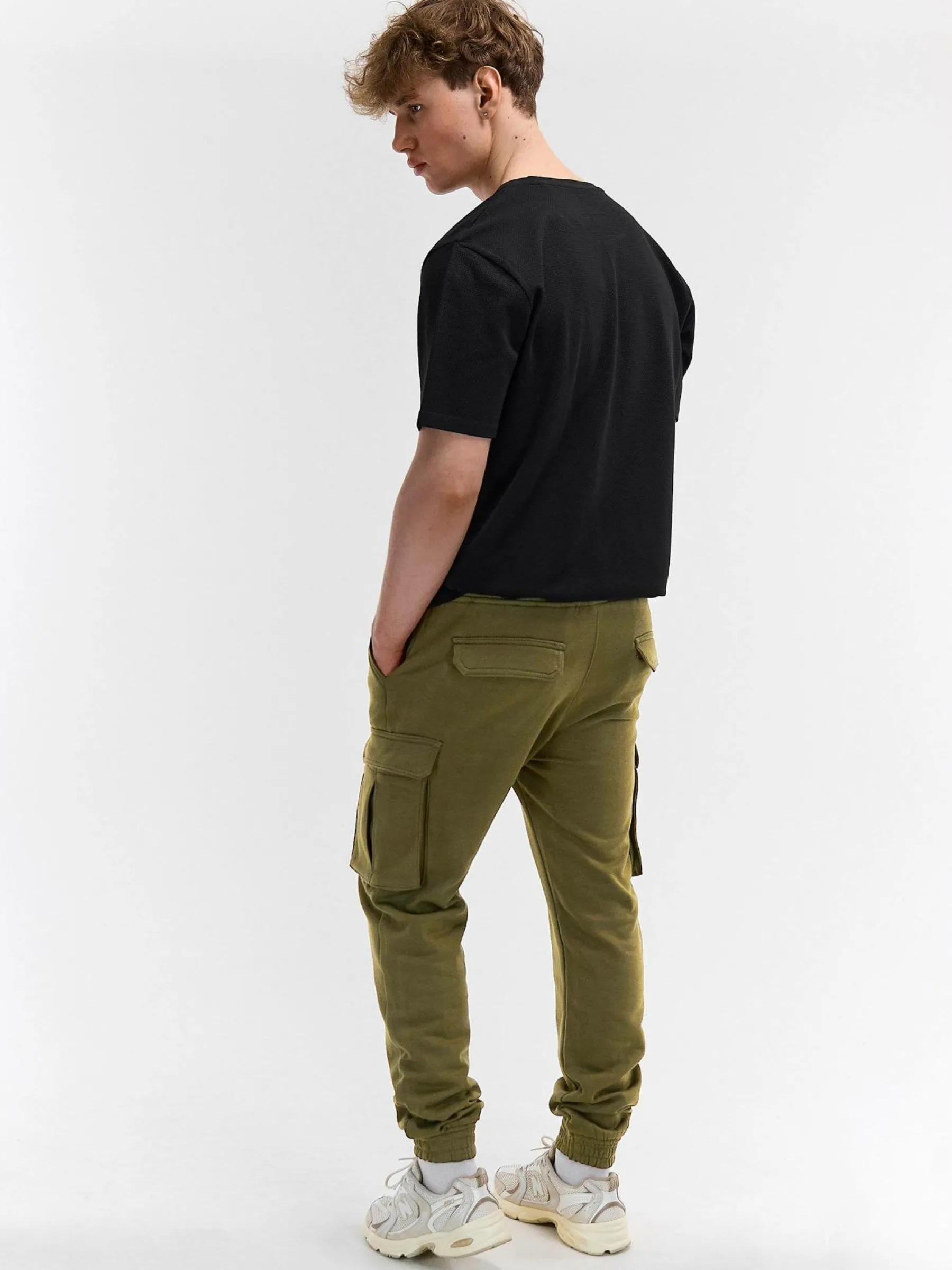 Kolor: khakiKrój: cargoTyp: spodnie dresoweDługość: dlugiePattern style: pojedynczy kolorDetal: ze sznurowaniem, z k…