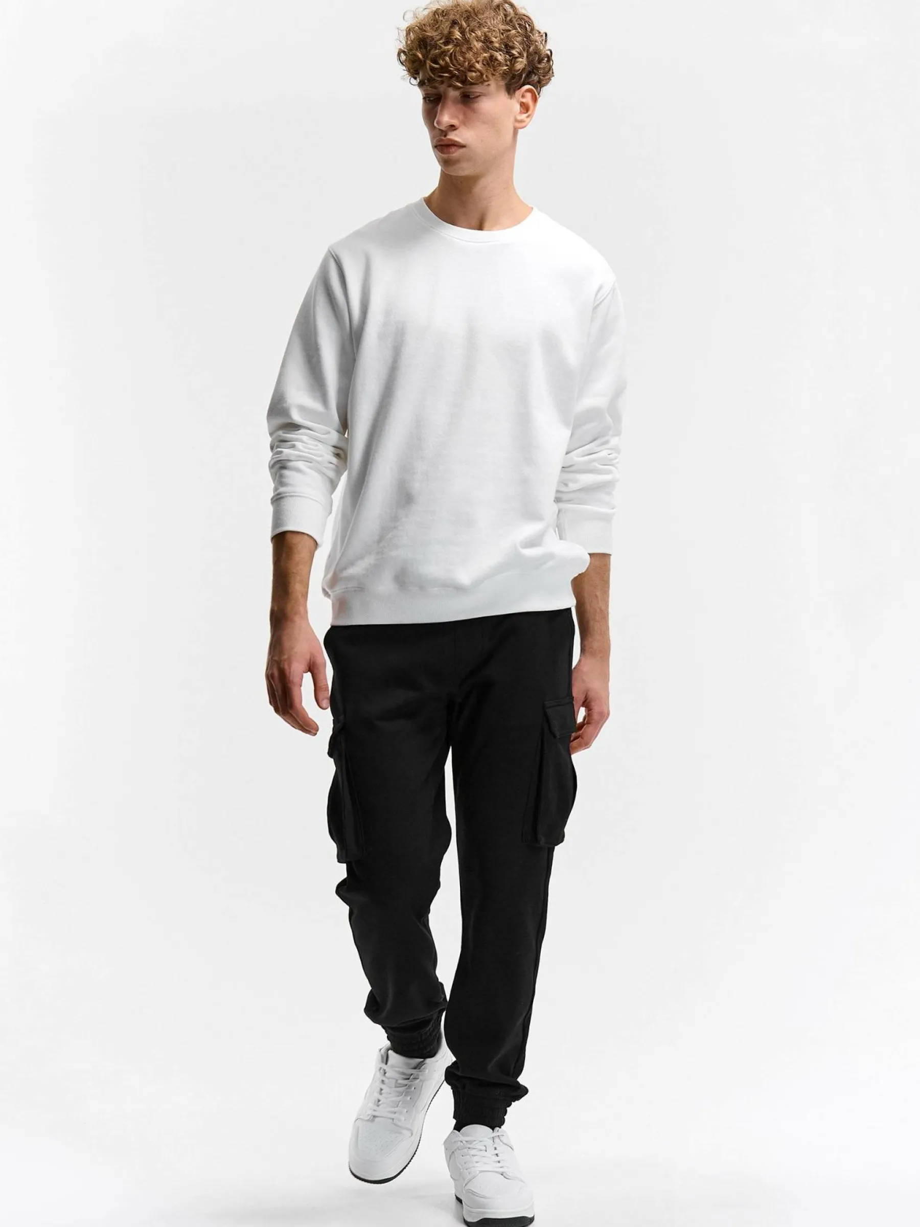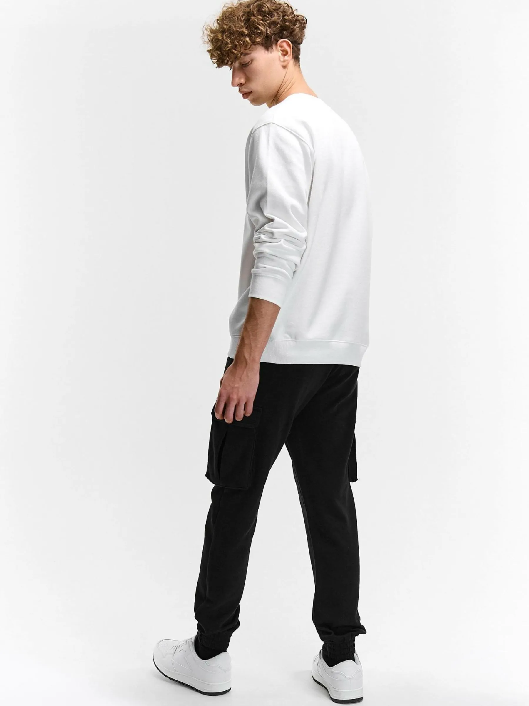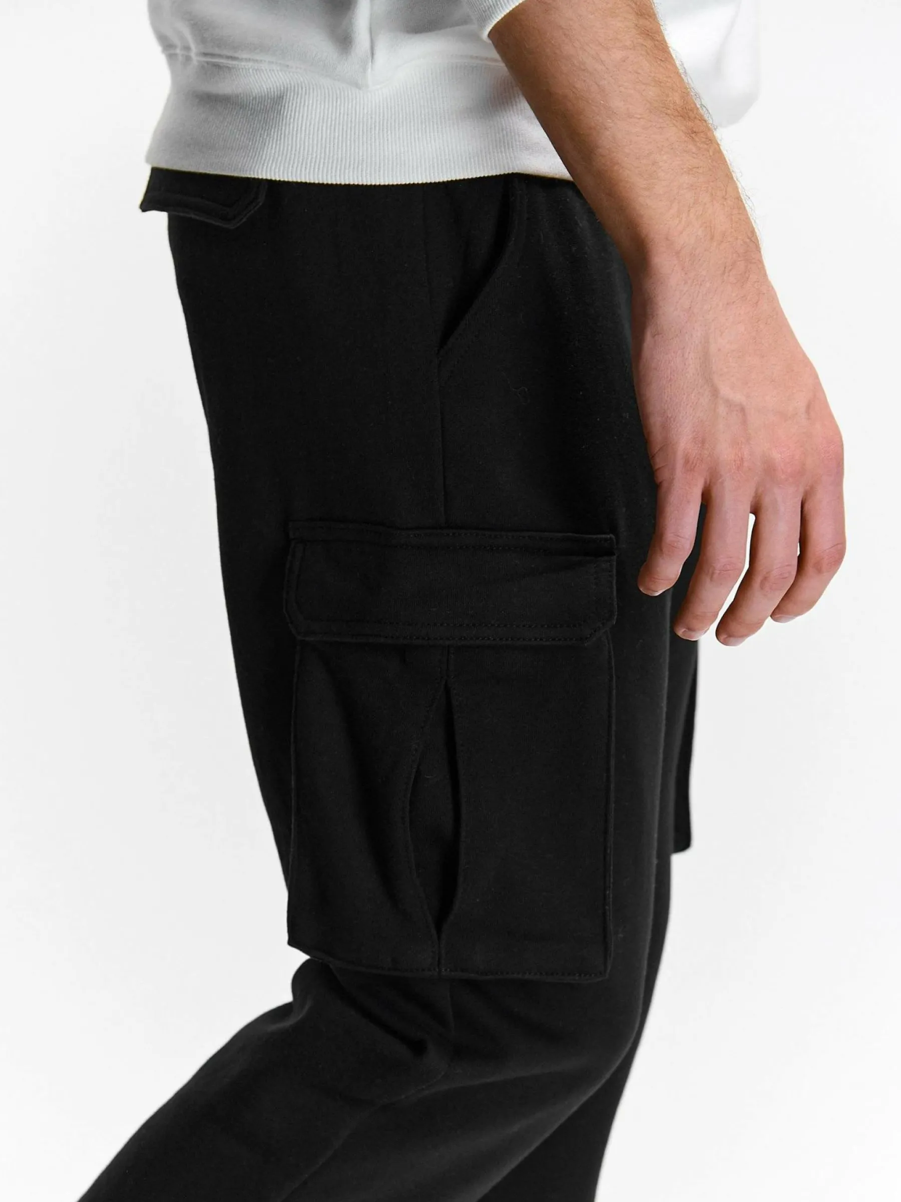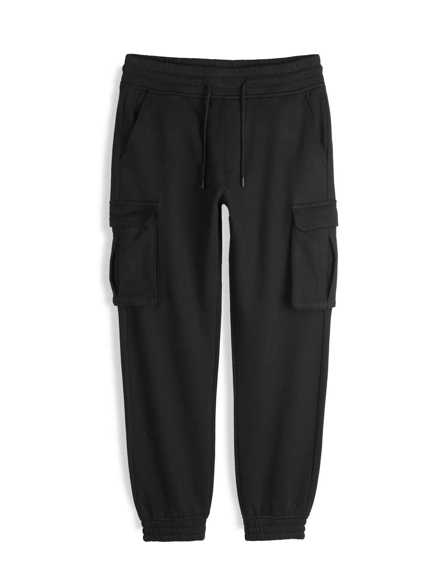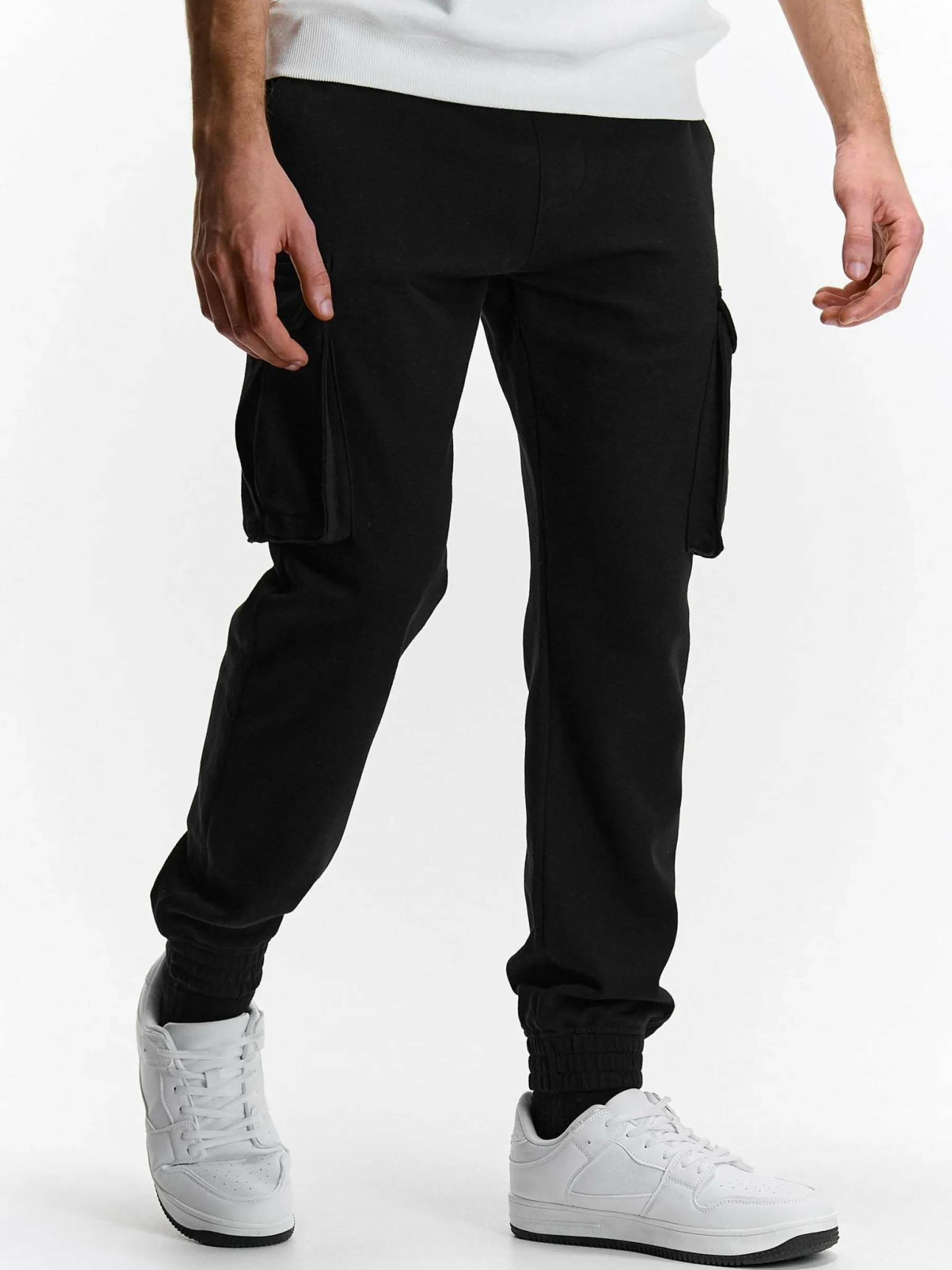 Kolor: czarnyKrój: cargo, joggerTyp: spodnie dresoweDługość: dlugiePattern style: pojedynczy kolorDetal: ze sznurowa…